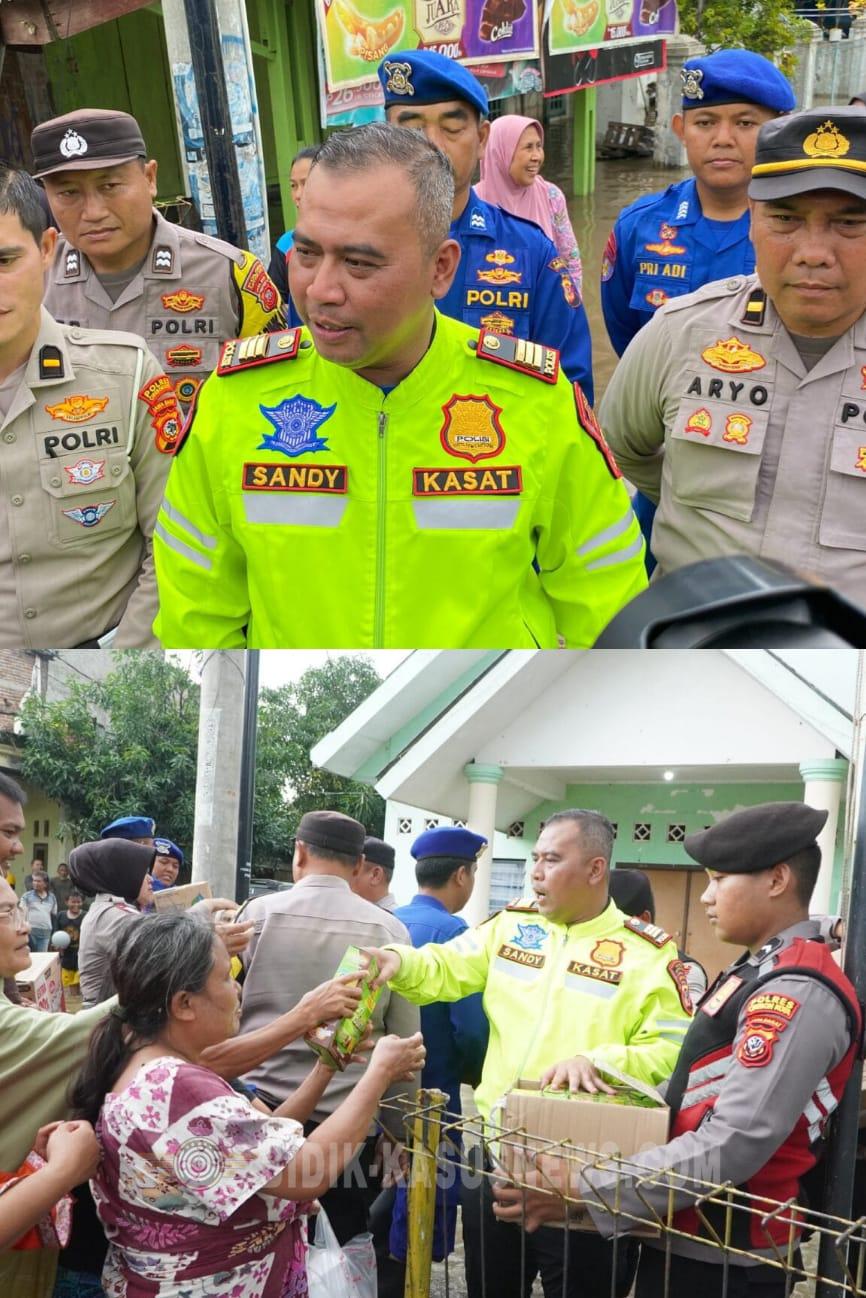 CIREBON KOTA Bidik-kasusnews.com,.Ratusan warga terdampak banjir di Kecamatan Gunungjati, Kabupaten Cirebon, mendapatkan titik terang di tengah kepungan air. Pada Sabtu (7/2/2026), jajaran Polres Cirebon Kota turun langsung menyalurkan bantuan makanan di Perumahan Villa Intan, Desa Klayan, sebagai bentuk kepedulian terhadap warga yang aktivitasnya lumpuh total. Atensi Langsung Kapolres Penyaluran bantuan ini merupakan atensi khusus dari Kapolres Cirebon Kota, AKBP Eko Iskandar, S.H., S.I.K., M.Si. Melalui Kasat Lantas AKP Ridwan Maulana, S.H., M.H., C.PHR, pihak kepolisian menyasar warga yang paling terdampak genangan air dan mengalami kesulitan memenuhi kebutuhan dasar. Begitu petugas tiba di halaman Balai Pertemuan Kampung (Baperkam), warga yang sudah menunggu sejak pagi segera berkumpul. Petugas membagikan paket bantuan berupa. Snack/Makanan Ringan,Mi Instan Air Mineral. Bantuan ini dinilai sangat krusial mengingat banyak dapur rumah tangga warga yang terendam air sehingga tidak dapat digunakan untuk memasak. Suara warga di tengah genangan Kondisi banjir yang merendam permukiman membuat warga, terutama anak-anak dan lansia, sangat bergantung pada makanan instan. Eka, salah satu warga Perumahan Villa Intan 3, mengaku sangat terbantu dengan aksi cepat Polres Cirebon Kota. ”Bantuan ini sangat membantu di tengah keterbatasan kami. Banjir yang berulang ini benar-benar mematikan aktivitas ekonomi keluarga,” ujar Eka. Ia juga berharap adanya bantuan lanjutan berupa masakan siap saji, vitamin, serta obat-obatan untuk menjaga kesehatan warga selama genangan belum surut sepenuhnya. Komitmen Polri hadir untuk masyarakat.Menanggapi harapan warga, AKP Ridwan Maulana menegaskan bahwa Polri akan terus memantau situasi. Desa Klayan, khususnya Villa Intan, menjadi prioritas karena banyaknya jumlah rumah yang terdampak. ”Kami terus melakukan pemetaan wilayah dan menyiapkan tambahan logistik sesuai kebutuhan warga, mulai dari makanan siap saji hingga pakaian,” jelas AKP Ridwan. Sementara itu, Kasi Humas Polres Cirebon Kota, AKP M. Aris Hermanto, mengimbau warga untuk tetap waspada terhadap potensi banjir susulan. Warga diminta segera melapor kepada pihak berwenang jika membutuhkan bantuan darurat atau evakuasi lebih lanjut. (Asep.R)