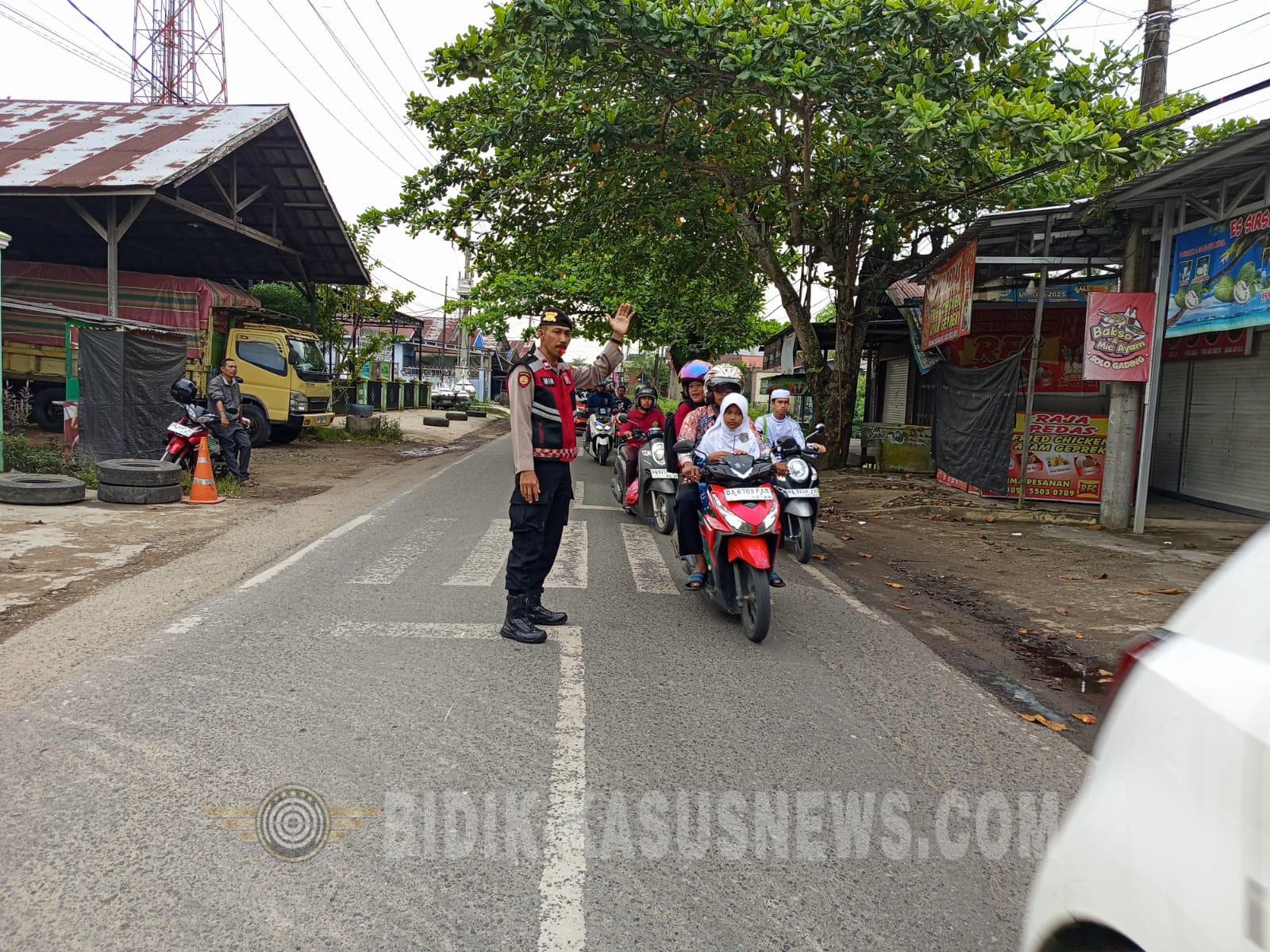 BANJANG, Bidik-kasusnews.com – Polsek Banjang, Polres Hulu Sungai Utara (HSU), kembali menggelar patroli dan pengaturan lalu lintas pada Jumat (13/2/2026) mulai pukul 07.00 Wita. Kegiatan ini difokuskan di kawasan sekolah sebagai langkah preventif mencegah tawuran pelajar, balap liar, serta aksi kejahatan jalanan (street crime). Patroli dipimpin Kanit Samapta bersama tiga personel, yakni AIPTU Soeyatmin, SH, AIPTU Noryadi, dan BRIPKA Junaidi. Dengan menggunakan kendaraan patroli roda dua (R2), petugas menyasar Sekolah Ukhuwah, Sekolah Iyuns, serta MIN 28 Kalintamui yang menjadi titik aktivitas padat pada jam masuk sekolah. Kapolsek Banjang menjelaskan, kegiatan ini merupakan bagian dari upaya menjaga situasi keamanan dan ketertiban masyarakat (sitkamtibmas) agar tetap aman dan kondusif, khususnya di wilayah hukum Polres HSU. “Selain melakukan pengaturan arus lalu lintas untuk mencegah kemacetan dan kecelakaan, personel juga memberikan imbauan kamtibmas kepada para pelajar dan masyarakat agar menjauhi tindakan yang melanggar hukum,” ujarnya. Dalam pelaksanaan di lapangan, anggota membantu penyeberangan siswa, mengingatkan pengendara untuk mematuhi aturan lalu lintas, serta memantau potensi gangguan keamanan di sekitar lingkungan pendidikan. Hasil kegiatan menunjukkan situasi tetap aman dan terkendali tanpa adanya kejadian menonjol. Kehadiran polisi di tengah masyarakat diharapkan dapat memberikan rasa aman sekaligus membangun kedisiplinan berlalu lintas sejak dini. Polsek Banjang menegaskan bahwa patroli rutin akan terus dilakukan sebagai langkah preventif guna menekan angka pelanggaran dan tindak kriminalitas, sejalan dengan komitmen Polres Hulu Sungai Utara dalam mewujudkan pelayanan kepolisian yang prediktif, responsibel, dan transparan berkeadilan (Presisi). (Agus)