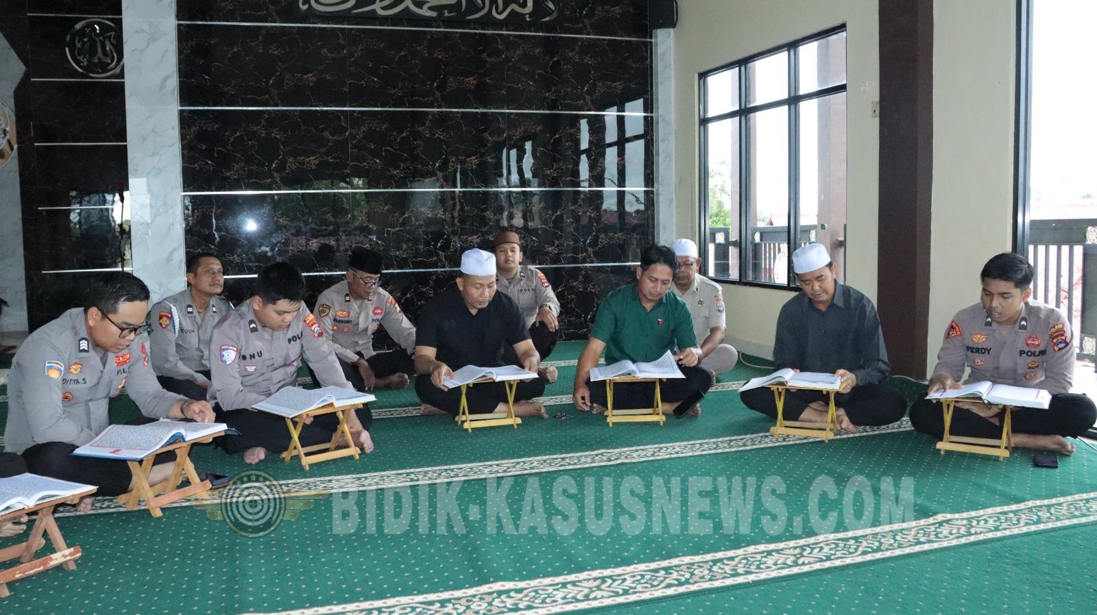HSU | BIDIK-KASUSNEWS.COM – Dalam rangka meningkatkan keimanan dan ketakwaan personel selama bulan suci Ramadan 1447 Hijriah, jajaran Polres Hulu Sungai Utara mengikuti kegiatan tadarus Al-Qur’an secara virtual yang terhubung langsung dengan Mabes Polri. Kegiatan ini merupakan bagian dari program Pembinaan Rohani dan Mental (Binrohtal) Polri yang dilaksanakan secara serentak di seluruh Indonesia. Kegiatan tadarus dipimpin oleh PS Kasubbag Binkar Bag SDM Polres Hulu Sungai Utara, Iptu Warsono, dan diikuti personel di lingkungan Mapolres. Program tersebut berlangsung setiap hari sepanjang Ramadan melalui Zoom Meeting yang dipusatkan dari Bagbinreligi Rowatpers SSDM Polri. Mewakili Kapolres Hulu Sungai Utara AKBP Agus Nuryanto, AKP Misransyah menyampaikan bahwa kegiatan ini menjadi sarana pembinaan spiritual bagi anggota di tengah padatnya tugas pelayanan kepada masyarakat. “Selama bulan suci Ramadan, kegiatan tadarus dilaksanakan rutin setiap hari sebagai bagian dari pembinaan rohani agar personel tetap menjaga keseimbangan antara tugas kedinasan dan keimanan,” ujarnya. Dalam pelaksanaannya, personel Polri mengikuti pembacaan Al-Qur’an secara bergiliran per juz yang dipandu langsung oleh tim dari Mabes Polri. Kegiatan ini diikuti secara serentak oleh jajaran Polda dan Polres di seluruh Indonesia. Di Polres Hulu Sungai Utara, suasana tadarus berlangsung khidmat di masjid Mapolres. Para personel tampak menyimak serta mengikuti lantunan ayat suci Al-Qur’an bersama-sama, menciptakan suasana religius yang memperkuat nilai kebersamaan dan spiritualitas selama Ramadan. Melalui program Binrohtal ini, diharapkan seluruh personel Polri tidak hanya profesional dalam menjalankan tugas, tetapi juga memiliki landasan moral dan spiritual yang kuat dalam memberikan pelayanan terbaik kepada masyarakat. (Agus)