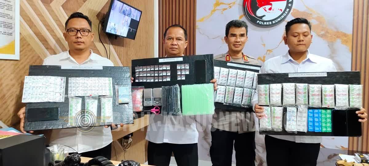 KUNINGAN,Bidik-kasusnews.com,.Satuan Reserse Narkoba Polres Kuningan kembali mengungkap peredaran narkotika di wilayah Kabupaten Kuningan. Sepanjang Februari 2026, aparat berhasil mengungkap 4 kasus penyalahgunaan narkoba dengan menangkap 5 orang tersangka dari sejumlah lokasi berbeda. . Kasat Resnarkoba Polres Kuningan, AKP Jojo Sutarjo, mengatakan pengungkapan tersebut merupakan hasil pengembangan dari 4 laporan polisi yang diterima selama Februari 2026. Kasus yang diungkap meliputi peredaran narkotika jenis sabu, psikotropika, hingga obat keras terbatas. . “Selama Februari 2026 kami berhasil mengungkap 4 kasus dengan 5 tersangka. Kasusnya terdiri dari satu kasus narkotika jenis sabu, satu kasus psikotropika, serta 2 kasus peredaran obat keras terbatas,” ujar Jojo dalam konferensi pers, Senin (9/3/2026). . Kelima tersangka yang diamankan yakni T.S (31) warga Kecamatan Ciwaru, Y.S.T (32) dan A.D.P (32) warga Kelurahan Cipari Kecamatan Cigugur, R.S (31) warga Kabupaten Cianjur, serta D.G (28) warga Kelurahan Purwawinangun Kecamatan Kuningan. . Dari tangan para tersangka, polisi menyita berbagai barang bukti narkoba dan obat-obatan terlarang. Barang bukti tersebut di antaranya 37 paket sabu dengan berat total 7,4 gram, 260 butir psikotropika berbagai jenis, serta 2.811 butir obat keras terbatas seperti tramadol dan trihexyphenidyl. . Selain itu, petugas juga mengamankan sejumlah barang pendukung seperti timbangan digital, plastik klip, telepon genggam, serta beberapa unit kendaraan yang digunakan para tersangka dalam menjalankan aksinya. . Jojo menjelaskan, modus yang digunakan para pelaku beragam. Sebagian menggunakan sistem “tempel” dengan memanfaatkan peta digital untuk menunjukkan lokasi penyimpanan narkoba, sementara sebagian lainnya melakukan transaksi secara langsung atau cash on delivery (COD).. . Salah satu kasus menonjol terjadi di Desa Ciwaru, Kecamatan Ciwaru, pada 22 Februari 2026 sekitar pukul 05.00 WIB. Polisi menangkap tersangka T.S di pinggir jalan desa setempat. Saat dilakukan pemeriksaan terhadap ponselnya, petugas menemukan peta lokasi penyimpanan sabu yang telah ditebar di beberapa titik. . “Dari pengembangan peta tersebut, petugas menemukan 37 paket sabu yang disimpan dalam sedotan plastik. Seluruh barang bukti itu diakui milik tersangka,” jelasnya. . Sementara itu, dua tersangka lain yakni Y.S.T dan A.D.P ditangkap di wilayah Kelurahan Cipari Kecamatan Cigugur dengan barang bukti ribuan pil tramadol serta ratusan butir psikotropika seperti alprazolam, merlopam, prohiper, dan camlet. . Kasus lain melibatkan tersangka R.S yang ditangkap di depan sebuah apotek di Jalan Siliwangi dengan barang bukti 1.280 butir tramadol. Sedangkan tersangka D.G diamankan di rumahnya di Kelurahan Purwawinangun dengan ratusan pil tramadol dan trihexyphenidyl serta uang hasil penjualan. . Polisi menduga sebagian barang terlarang tersebut diperoleh para tersangka dari jaringan luar daerah, seperti Bogor, Jakarta, hingga Bekasi. Hingga kini penyidik masih melakukan pengembangan untuk mengungkap pemasok utama. . Atas perbuatannya, para tersangka dijerat dengan sejumlah pasal berbeda sesuai jenis pelanggaran. Untuk kasus narkotika jenis sabu, tersangka dikenakan Pasal 114 ayat (1) jo Pasal 112 ayat (1) Undang-Undang Nomor 35 Tahun 2009 tentang Narkotika dengan ancaman minimal empat tahun penjara. . Sedangkan pelaku psikotropika dijerat Pasal 62 Undang-Undang Nomor 5 Tahun 1997 tentang Psikotropika dengan ancaman maksimal lima tahun penjara. Adapun kasus peredaran obat keras terbatas dijerat Pasal 435 dan/atau 436 Undang-Undang Nomor 17 Tahun 2023 tentang Kesehatan dengan ancaman hukuman maksimal 12 tahun penjara. . Polres Kuningan menegaskan akan terus memperketat pengawasan serta menindak tegas pelaku peredaran narkoba yang merusak generasi muda di daerah tersebut. (Asep Rusliman)