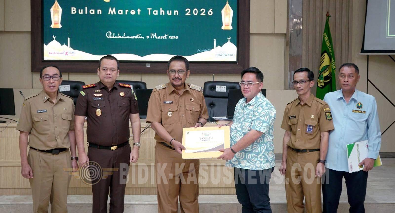SUKABUMI-BIDIK-KASUSNEWS.COM – Bupati Sukabumi Asep Japar meminta seluruh camat di wilayahnya meningkatkan kesiapsiagaan menjelang Hari Raya Idulfitri 1447 Hijriah, terutama pada periode H-7 hingga H+7 Lebaran. Hal tersebut disampaikan Bupati saat memimpin Rapat Dinas Bulan Maret yang digelar di Aula Sekretariat Daerah Kabupaten Sukabumi, Senin (9/3/2026). Rapat yang dipandu Sekretaris Daerah Kabupaten Sukabumi Ade Suryaman itu dihadiri para kepala perangkat daerah, asisten daerah, staf ahli, kepala bagian, serta camat se-Kabupaten Sukabumi. Dalam arahannya, Bupati menegaskan bahwa pemerintah kecamatan harus memastikan pelayanan kepada masyarakat tetap berjalan meski memasuki masa libur Lebaran. Namun demikian, ia memberikan kebijakan khusus bagi camat yang memiliki keluarga di luar daerah agar tetap dapat pulang kampung dengan pengaturan teknis yang tidak mengganggu pelayanan publik. “Saya berikan rekomendasi. Tolong BKPSDM menyiapkan rekomendasi bagi camat yang ingin pulang ke kampung halaman,” ujar Bupati. Menurutnya, cukup banyak pejabat di lingkungan Pemkab Sukabumi yang berasal dari luar daerah, sehingga perlu pengaturan yang baik agar pelayanan kepada masyarakat tetap optimal. “Banyak teman-teman dari luar daerah, seperti Medan atau daerah lain di Jawa. Diatur saja teknisnya, barangkali ada yang merencanakan mudik Lebaran,” katanya. Selain itu, Bupati juga meminta Dinas Ketahanan Pangan untuk terus memantau perkembangan harga bahan pokok di pasaran selama Ramadan hingga menjelang Idulfitri. Ia bahkan menyatakan siap turun langsung ke lapangan jika diperlukan untuk memastikan harga tetap terkendali. Dalam rapat tersebut turut dilaksanakan penandatanganan kerja sama antara Pemerintah Kabupaten Sukabumi dengan Kejaksaan Negeri Kabupaten Sukabumi terkait penyelenggaraan kegiatan pemerintah daerah di bidang perdata dan tata usaha negara. Pada kesempatan yang sama, Pemkab Sukabumi juga menerima penyerahan dividen secara simbolis dari Perumda Air Minum Tirta Jaya Mandiri dan Perumda Pesona Pariwisata Kabupaten Sukabumi, serta buku digitalisasi Sistem Informasi Pangan Kabupaten Sukabumi. Sejumlah penghargaan turut diserahkan, di antaranya penghargaan partisipasi program Sabilulungan untuk Harga Stabil Kabupaten Sukabumi serta penghargaan bagi desa dan kelurahan berkinerja terbaik dalam Anugerah Gapura Sri Baduga tingkat Jawa Barat. Rapat dinas tersebut juga diisi dengan paparan dari sejumlah instansi, mulai dari Kejaksaan Negeri Kabupaten Sukabumi, Dinas Perhubungan, Dinas Ketahanan Pangan hingga Dinas Pariwisata. (Dicky)