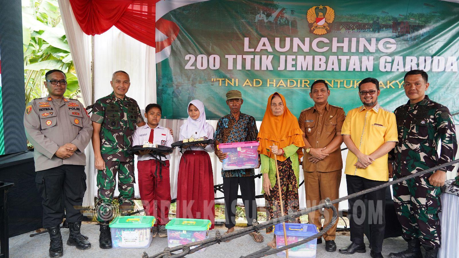 BIDIK-KASUSNEWS.COM Bekasi – Upaya meningkatkan konektivitas masyarakat terus dilakukan melalui pembangunan infrastruktur yang bermanfaat langsung bagi warga. Salah satunya melalui pembangunan Jembatan Gantung Manggala “Garuda” yang dilaksanakan di Kp. Bojong Cisaat RT 02/04, Desa Kertarahayu, Kecamatan Setu, Kabupaten Bekasi. Senin, (09/03/2026). Kegiatan video conference (vicon) launching pembangunan 218 titik Jembatan Gantung Garuda di seluruh Indonesia ini juga dilaksanakan di wilayah teritorial Kodam Jaya/Jayakarta Korem 051/Wkt, Kodim 0509/Kab. Bekasi, tepatnya di Jembatan Gantung Garuda Manggala Sungai Cikarang Dua, Kampung Bojong RT 02/RW 04, Desa Kertarahayu, Kecamatan Setu. Jembatan gantung yang melintasi Sungai Cikarang 2 ini memiliki panjang sekitar 80 meter dengan lebar 1,20 meter, dan menjadi jalur penghubung penting bagi masyarakat di wilayah Kecamatan Setu dan Serang Baru. Dengan diresmikannya Jembatan Gantung Manggala “Garuda”, diharapkan akses transportasi masyarakat semakin mudah, aman, serta mampu meningkatkan konektivitas antarwilayah sekaligus mendorong pertumbuhan ekonomi masyarakat di wilayah Kabupaten Bekasi. Keberadaan jembatan ini diharapkan dapat memangkas waktu tempuh warga, mempermudah akses pendidikan bagi anak sekolah, serta memperlancar distribusi hasil pertanian masyarakat. Sementara itu, dalam sambutannya Presiden Prabowo Subianto menegaskan bahwa pembangunan Jembatan Gantung Garuda merupakan program strategis yang dilaksanakan oleh TNI AD bersama masyarakat dan sejumlah pihak untuk menghubungkan wilayah-wilayah yang sebelumnya terisolasi. “Program ini bertujuan mempercepat konektivitas antar desa, mempermudah akses pendidikan, pertanian dan ekonomi masyarakat pedesaan,” kata Presiden. Presiden juga menyampaikan apresiasi kepada jajaran TNI, pemerintah daerah dan seluruh pihak yang terlibat dalam pembangunan jembatan tersebut. “Jika seluruh jembatan ini bisa terselesaikan tahun ini, berarti saudara-saudara telah memberikan yang terbaik bagi bangsa dan negara,” ujarnya. (Agus/Red) Sumber: Pendam Jaya