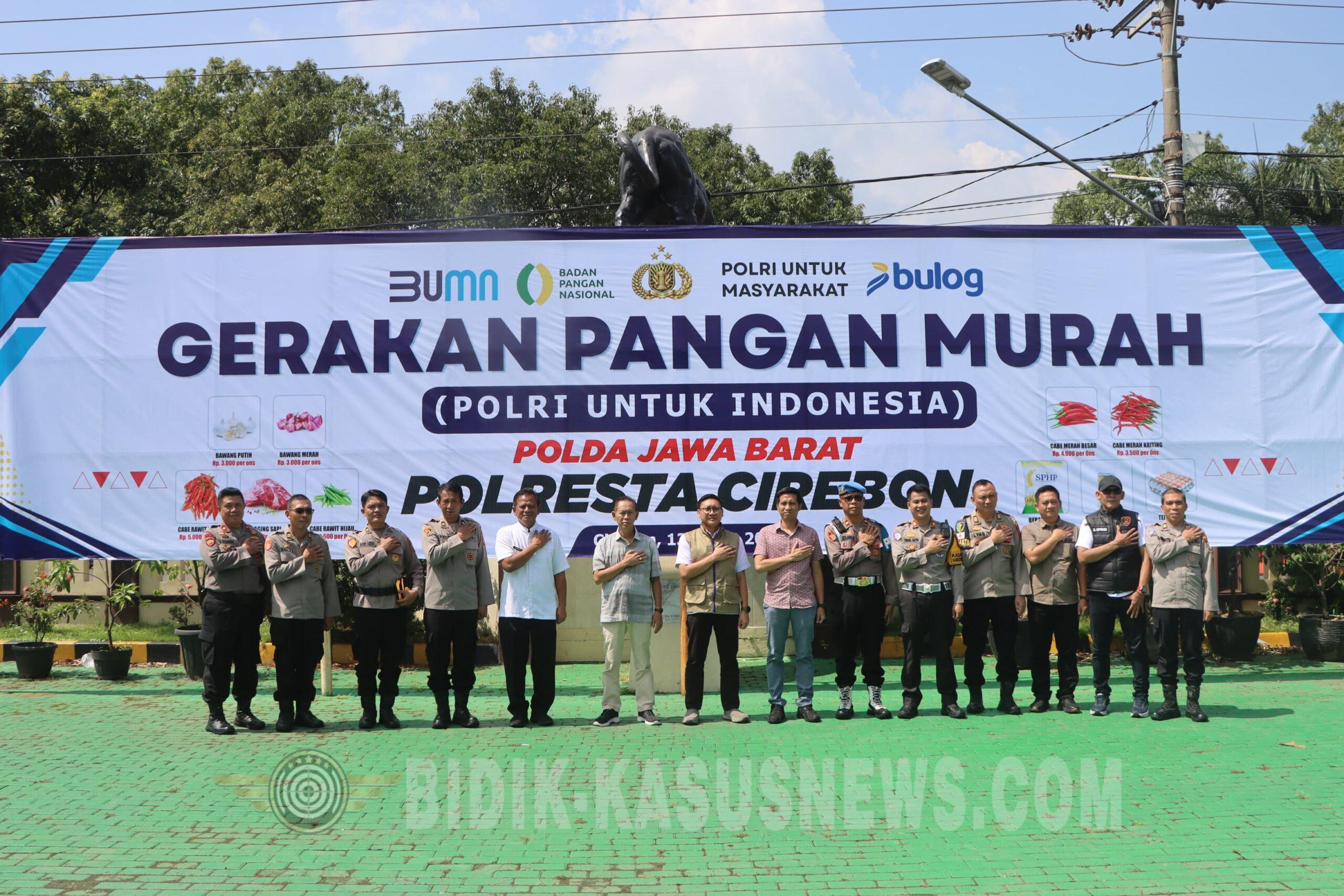 Cirebon Bidik-kasusnews.com,.Polresta Cirebon menggelar Gerakan Pangan Murah Polri Untuk Indonesia), Jumat (13/3/2026). Kegiatan tersebut bertempat di halaman Mapolresta Cirebon termasuk Jl.Raden Dewi Sartika No.1 Sumber Kab.Cirebon. Kegiatan dilaksanakan melalui sarana zoom meeting dipimpin Wakapolri KOMJEN POL Prof. Dr. DEDY PRASETYO, S.H., M.Hum., M.Si., M.M., dan diikuti oleh seluruh Polda/Polres/Ta/Tabes jajaran secara virtual di wilayah masing – masing. Dalam kegiatan tersebut dihadiri langsung Kapolresta Cirebon KOMBES POL IMARA UTAMA,S.H.,S.I.K.,M.H., didampingi Wakapolresta Cirebon AKBP EKO MUNARIANTO, S.I.K.,M.H., dan lainnya. Adapun Jenis Kepokmas dan harga dalam kegiatan Gerakan Pangan Murah Polresta Cirebon tersebut antara lain Beras SPHP Berat 5 kg Harga Rp. 58.000, Minyak Goreng Harga Rp.15.000/Liter, Cabai Merah besar Rp.4.000/ons, Cabai Rawit Merah Rp.5.000/ons, Cabai Rawit Hijau Rp.4.500/ons, Cabai Merah Kriting Rp.3.500/ons, Daging Sapi Harga Rp. 45.000 s.d Rp.125.000/kg, Telur Ayam Harga Rp. 28.500, Bawang Putih Harga Rp. 3.000/ons, dan Bawang Merah Rp. 3.000/ons. Adapun jumlah bahan pokok yang terdistribusi Telur 100 kg, Minyak kita 600 liter, Beras Sphp 8 Ton, Daging Sapi No.1 120 kg, Daging Sapi No. 2 60 Kg, Tulang Iga 50 Kg, Ati Sapi 18 Kg, Baso Kecil 37 Pcs, Baso Besar 37 Pcs, Cabe Rawit Merah 100 Kg, Cabe Merah Keriting 100 Kg, Bawang Merah 100 Kg, Bawang Putih 100 Kg, dan Dengan Total penerima manfaat 1567 orang. “Gerakan Pangan Murah merupakan wujud nyata kepedulian Polri terhadap kondisi ekonomi masyarakat, khususnya dalam menghadapi potensi kenaikan harga bahan pokok,” kata Kapolresta Cirebon KOMBES POL IMARA UTAMA,S.H.,S.I.K.,M.H. Ia mengatakan, Program itunhadir sebagai upaya membantu meringankan beban masyarakat, menjaga daya beli, serta mendukung stabilitas harga di pasaran. Selain itu, masyarakat juga diajak untuk memanfaatkan program ini secara positif guna memenuhi kebutuhan pokok dengan harga yang lebih terjangkau. “Melalui Gerakan Pangan Murah ini diharapkan mampu menjadi solusi konkret dalam menjaga stabilitas pasokan dan harga pangan, sekaligus memperkuat sinergi antara Polri, pemerintah daerah, dan masyarakat dalam menjaga ketahanan pangan di Kabupaten Cirebon,” pungkasnya. (Asep Rusliman)