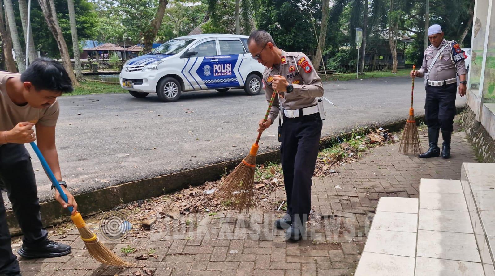 BIDIK-KASUSNEWS.COM Hulu Sungai Utara – Menyambut pelaksanaan Operasi Ketupat 2026 dan perayaan Idul Fitri, Satuan Lalu Lintas (Satlantas) Polres Hulu Sungai Utara (HSU) menggelar kegiatan bakti sosial dengan membersihkan tempat ibadah. Kegiatan tersebut dilaksanakan di Mushola Al Huda yang berada di Jalan Brigjen H. Hasan Basri, Kecamatan Amuntai Tengah, Kabupaten Hulu Sungai Utara, Jumat (13/3/2026) pagi. Kegiatan yang dimulai sekitar pukul 08.30 Wita itu dipimpin langsung oleh Kasat Lantas Polres HSU IPTU Tri Widodo Setiawan, S.Pd., bersama seluruh personel Satlantas Polres HSU. Dalam kegiatan bakti sosial tersebut, para personel kepolisian bersama-sama melakukan pembersihan di area mushola, mulai dari menyapu dan mengepel lantai, membersihkan halaman, merapikan perlengkapan ibadah, hingga memastikan lingkungan sekitar mushola tetap bersih dan nyaman digunakan oleh masyarakat. Kasat Lantas Polres HSU IPTU Tri Widodo Setiawan mengatakan bahwa kegiatan ini merupakan bagian dari rangkaian Operasi Ketupat 2026, sekaligus bentuk kepedulian Polri terhadap kebersihan dan kenyamanan tempat ibadah bagi masyarakat. “Kegiatan ini merupakan wujud kepedulian kami untuk menciptakan lingkungan tempat ibadah yang bersih dan nyaman, khususnya menjelang Idul Fitri. Kami berharap masyarakat dapat beribadah dengan tenang dan khusyuk,” ujarnya. Selain menjaga kebersihan tempat ibadah, kegiatan ini juga menjadi sarana untuk mempererat hubungan antara kepolisian dan masyarakat. Melalui kegiatan sosial seperti ini, diharapkan dapat menumbuhkan semangat kebersamaan serta memperkuat sinergi antara Polri dan warga. Satlantas Polres HSU juga menegaskan komitmennya untuk terus memberikan pelayanan terbaik kepada masyarakat, tidak hanya dalam menjaga keamanan dan ketertiban lalu lintas, tetapi juga melalui kegiatan sosial yang bermanfaat bagi lingkungan sekitar. Kegiatan bakti sosial tersebut berlangsung dengan tertib, aman, dan lancar serta mendapat apresiasi dari masyarakat setempat yang merasa terbantu dengan kehadiran personel kepolisian dalam menjaga kebersihan tempat ibadah. (Agus)
