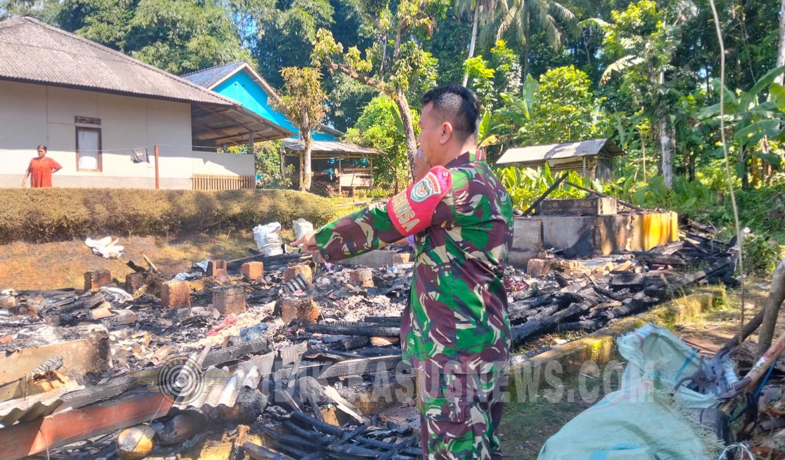 SUKABUMI-BIDIK-KASUSNEWS.COM – Peristiwa kebakaran menghanguskan satu unit rumah warga di wilayah Kecamatan Surade, Kabupaten Sukabumi, Selasa (17/3/2026) pagi. Insiden terjadi di Kampung Cimahi, RT 003 RW 004, Desa Citanglar, sekitar pukul 07.05 WIB. Bangunan semi permanen seluas kurang lebih 13 x 9 meter milik Idim (73) tidak dapat diselamatkan setelah api dengan cepat membesar dan merusak sebagian besar struktur rumah. Dugaan awal, kebakaran dipicu oleh gangguan instalasi listrik. Salah seorang warga, Ade Priatna, menuturkan bahwa api pertama kali terlihat di bagian atas rumah. Kepulan asap segera disusul kobaran api yang membesar, sehingga warga berinisiatif melakukan pemadaman menggunakan alat seadanya sambil meminta bantuan petugas. Petugas pemadam kebakaran dari Pos Surade tiba di lokasi dan langsung melakukan penanganan bersama unsur TNI-Polri serta masyarakat setempat. Setelah hampir satu jam berjibaku, api akhirnya berhasil dipadamkan sekitar pukul 08.00 WIB. Meski tidak menimbulkan korban jiwa maupun luka, kerugian akibat kejadian tersebut diperkirakan mencapai Rp100 juta. Seluruh bagian rumah mengalami kerusakan berat. Usai kejadian, tim gabungan dari Forkopimcam Surade, BPBD, P2BK, pihak PLN, serta pemerintah desa melakukan pendataan dan penanganan awal di lokasi. Korban saat ini diketahui mengungsi sementara ke rumah keluarga terdekat. Petugas juga mengingatkan masyarakat untuk rutin memeriksa kondisi instalasi listrik guna menghindari kejadian serupa. (Dicky)