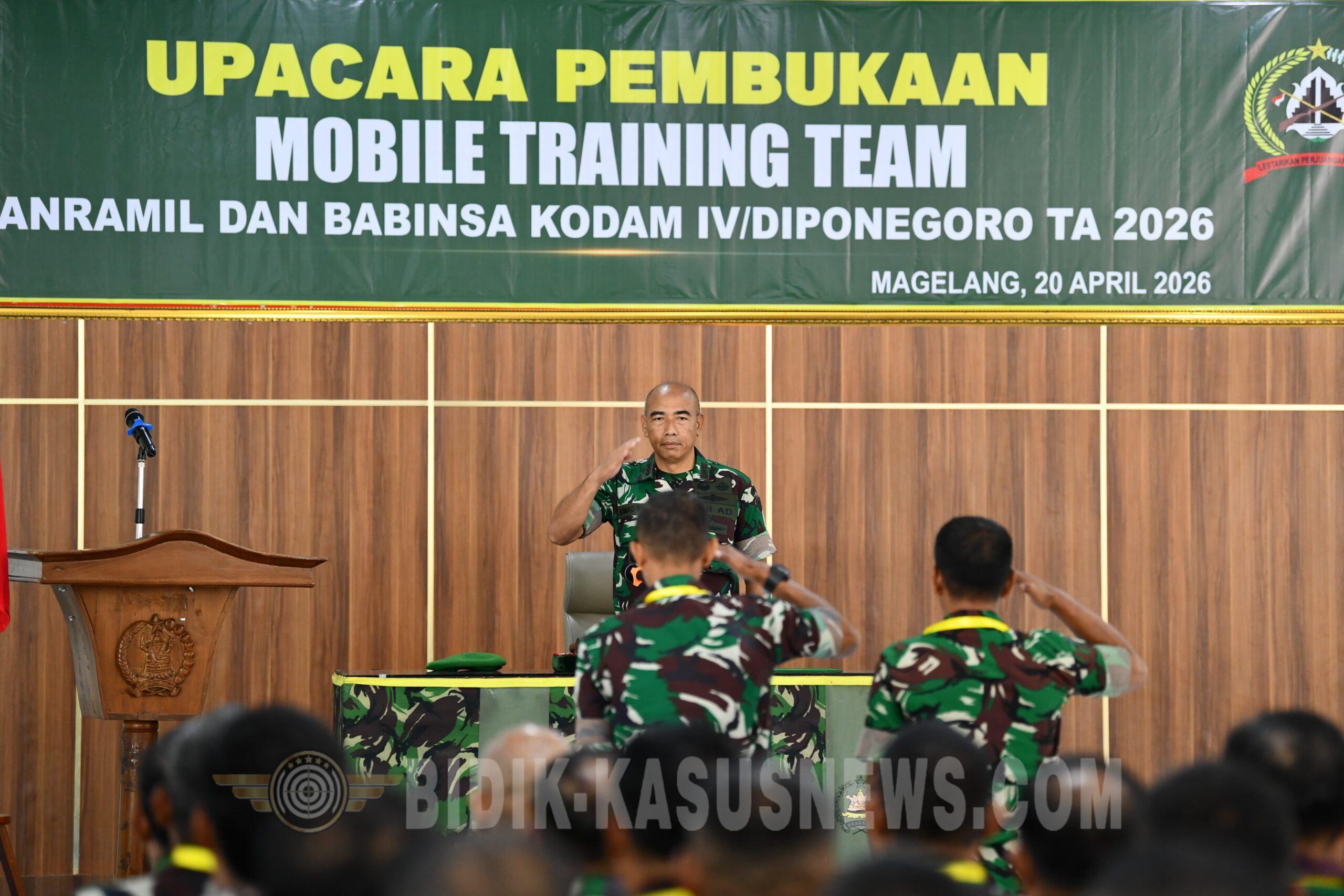 MAGELANG – Bidik-kasusnews.com– Pusat Teritorial Angkatan Darat (Pusterad) menggelar kegiatan Mobile Training Team (MTT) Tahun Anggaran 2026 yang di ikuti oleh 200 peserta, terdiri dari 50 Komandan Koramil (Danramil) dan 150 Bintara Pembina Desa (Babinsa) jajaran Kodam IV/ Diponegoro. Kegiatan ini berlangsung di Aula A. Yani Rindam IV/Diponegoro, Magelang, Jawa Tengah, Senin (20/4/2026). Dalam amanat Komandan Pusat Teritorial Angkatan Darat yang dibacakan oleh Kolonel Inf Ahmad Basuki, S.I.P., disampaikan bahwa pelaksanaan MTT berlangsung mulai 20 hingga 25 April 2026. Kegiatan ini bertujuan untuk membekali, memelihara, serta meningkatkan kualitas profesionalisme para Danramil dan Babinsa, khususnya bagi personel yang belum berkesempatan mengikuti pendidikan formal di Pusat Pendidikan Teritorial (Pusdikter). Melalui penyampaian materi yang up to date, kegiatan ini diharapkan mampu menyamakan visi, persepsi, dan tindakan para aparat kewilayahan sebagai ujung tombak organisasi dalam melaksanakan tugas pemberdayaan wilayah pertahanan darat di wilayah Kodam IV/Diponegoro. Danpusterad juga menekankan pentingnya memanfaatkan momentum pelatihan ini secara optimal dengan penuh kesungguhan dan dedikasi tinggi. Para peserta diharapkan dapat menyerap materi secara maksimal, aktif berdiskusi serta berbagi pengalaman guna memperkaya wawasan. Sebagai ujung tombak TNI AD, Danramil dan Babinsa dituntut untuk terus mempertajam kemampuan deteksi dini dan cegah dini terhadap berbagai potensi ancaman yang dapat menggangu persatuan bangsa. Selain itu, setiap pengetahuan yang diperoleh selama kegiatan diharapkan dapat diimplementasikan secara nyata di wilayah binaan masing-masing, dengan tetap berpedoman pada Sapta Marga, Sumpah Prajurit, dan 8 Wajib TNI, serta senantiasa menjaga kehormatan satuan dalam pengabdian kepada masyarakat. Kepada tim pengajar dan pemateri, agar memberikan pembekalan yang aplikatif dan relevan dengan tantangan di lapangan. Metode pembelajaran yang komunikatif dan interaktif diharapkan dapat mendorong transformasi pengetahuan secara efektif, sehingga mampu meningkatkan kualitas aparat komando kewilayahan kita menjadi lebih andal, adaptif dan semakin dicintai oleh rakyat. (Agus)