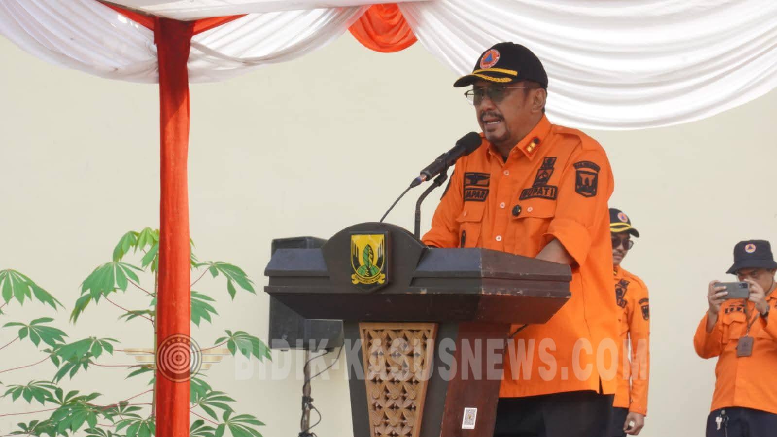 SUKABUMI-BIDIK-KASUSNEWS.COM – Bupati Sukabumi Asep Japar menegaskan bahwa keselamatan merupakan nilai tertinggi yang harus dijaga bersama. Hal tersebut disampaikannya saat menjadi pembina apel Hari Kesiapsiagaan Bencana 2026 di Kantor BPBD Kabupaten Sukabumi, Kamis (23/4/2026). Dalam amanatnya, Bupati mengajak seluruh elemen masyarakat untuk menjadikan kesiapsiagaan sebagai budaya dalam kehidupan sehari-hari. Menurutnya, penguatan sinergi lintas sektor serta pemanfaatan teknologi secara bijak sangat penting dalam menyebarkan informasi kebencanaan yang akurat. “Kami percaya investasi pada kesiapsiagaan jauh lebih murah dibandingkan biaya pemulihan pascabencana,” ujarnya. Pemerintah Kabupaten Sukabumi, lanjutnya, terus berupaya memperkuat sistem penanggulangan bencana melalui berbagai program. Di dalamnya ada pengembangan desa tangguh bencana (Destana), penguatan Tim Reaksi Cepat (TRC), pemasangan early warning system (EWS), serta pelaksanaan simulasi kebencanaan secara berkala. “Keselamatan jiwa adalah harga tertinggi yang harus kita jaga. Kesiapsiagaan merupakan tugas dan tanggung jawab bersama,” tegasnya. Pada kesempatan tersebut, Bupati juga mengingatkan bahwa Kabupaten Sukabumi merupakan wilayah dengan potensi bencana yang cukup tinggi. Kondisi ini menuntut seluruh pihak untuk selalu siap dan tangguh dalam menghadapi berbagai kemungkinan bencana. “Di balik potensi kekayaan alamnya yang luar biasa, wilayah ini juga menyimpan ancaman bencana,” ungkapnya. Bupati pun menyampaikan apresiasi kepada seluruh pihak, termasuk forum kebencanaan dan relawan, yang selama ini berkontribusi dalam upaya kesiapsiagaan di Kabupaten Sukabumi. “Mari kita terus jaga semangat kebersamaan dalam meningkatkan kesiapsiagaan,” ajaknya. Sementara itu, Kepala Pelaksana BPBD Kabupaten Sukabumi Eki Radiana Rizki menambahkan bahwa pelaksanaan HKB bertujuan untuk meningkatkan kesadaran serta kapasitas masyarakat dalam menghadapi bencana. “Melalui kegiatan ini, kami juga memastikan seluruh peralatan kesiapsiagaan bencana dapat berfungsi dengan baik,” pungkasnya. Dalam rangkaian kegiatan tersebut, Bupati Sukabumi turut menyerahkan penghargaan kepada sejumlah instansi, relawan, dan komunitas yang dinilai berkontribusi aktif dalam upaya penanggulangan bencana di wilayahnya. (Dicky)