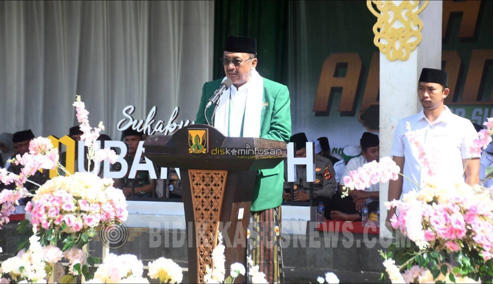 SUKABUMI-BIDIK-KASUSNEWS.COM – Puncak peringatan Hari Lahir 1 Abad Nahdlatul Ulama (NU) Kabupaten Sukabumi berlangsung khidmat dan meriah di Alun-alun Palabuhanratu, Rabu (4/2/2026). Ribuan warga dan kader NU dari berbagai tingkatan memadati lokasi acara dengan penuh kekhusyukan. Peringatan satu abad NU mengusung tema Mengawal Indonesia Merdeka Menuju Peradaban Mulia untuk Sukabumi Mubarakah. Kegiatan ini menjadi ajang konsolidasi warga NU mulai dari tingkat ranting desa dan kelurahan hingga pengurus kecamatan se-Kabupaten Sukabumi. Sejumlah tokoh nasional dan daerah hadir dalam kegiatan tersebut, di antaranya anggota Komisi VII DPR RI, Bupati dan Wakil Bupati Sukabumi, Sekretaris Daerah, unsur Forkopimda dan Forkopimcam, perwakilan instansi vertikal, para kiai, serta tokoh agama. Ketua PCNU Kabupaten Sukabumi K.H. E.S. Mubarok menegaskan, peringatan satu abad NU menjadi momentum strategis memperkuat sinergi ulama dan umaro dalam mewujudkan Sukabumi yang mubarakah. Ia menekankan NU siap terus menjadi mitra pemerintah daerah dengan kekuatan lebih dari seribu kader aktif yang bergerak di berbagai sektor pembangunan. NU akan selalu berjalan bersama pemerintah yang berpihak pada kepentingan rakyat dan menjaga nilai kejujuran serta amanah. Ulama siap berada di garda depan mendukung kemajuan Sukabumi, ujarnya. Dalam sambutannya, K.H. E.S. Mubarok juga memaparkan konsep Sukabumi Mubarakah yang bertumpu pada lima pilar utama, yakni ibadah, amanah, mahabbah, harokah, dan jamaah atau kebersamaan. Sementara itu, Bupati Sukabumi H Asep Japar mengajak seluruh kader NU untuk terus berperan aktif dalam mendukung program pembangunan daerah, khususnya di bidang pendidikan, pemberdayaan ekonomi umat, dan penguatan sosial kemasyarakatan. Menurutnya, NU memiliki peran penting dalam menjaga persatuan umat dan stabilitas daerah. Peringatan satu abad ini diharapkan menjadi ruang refleksi sekaligus penguat komitmen bersama membangun Sukabumi yang harmonis dan kondusif. Rangkaian acara puncak Harlah 1 Abad NU Kabupaten Sukabumi diisi dengan tabligh akbar dan tausiyah Ustaz Roma Muda, penampilan kreasi santri IPPNU, serta penyerahan bantuan simbolis kepada panti jompo dan anak yatim. (Dicky)