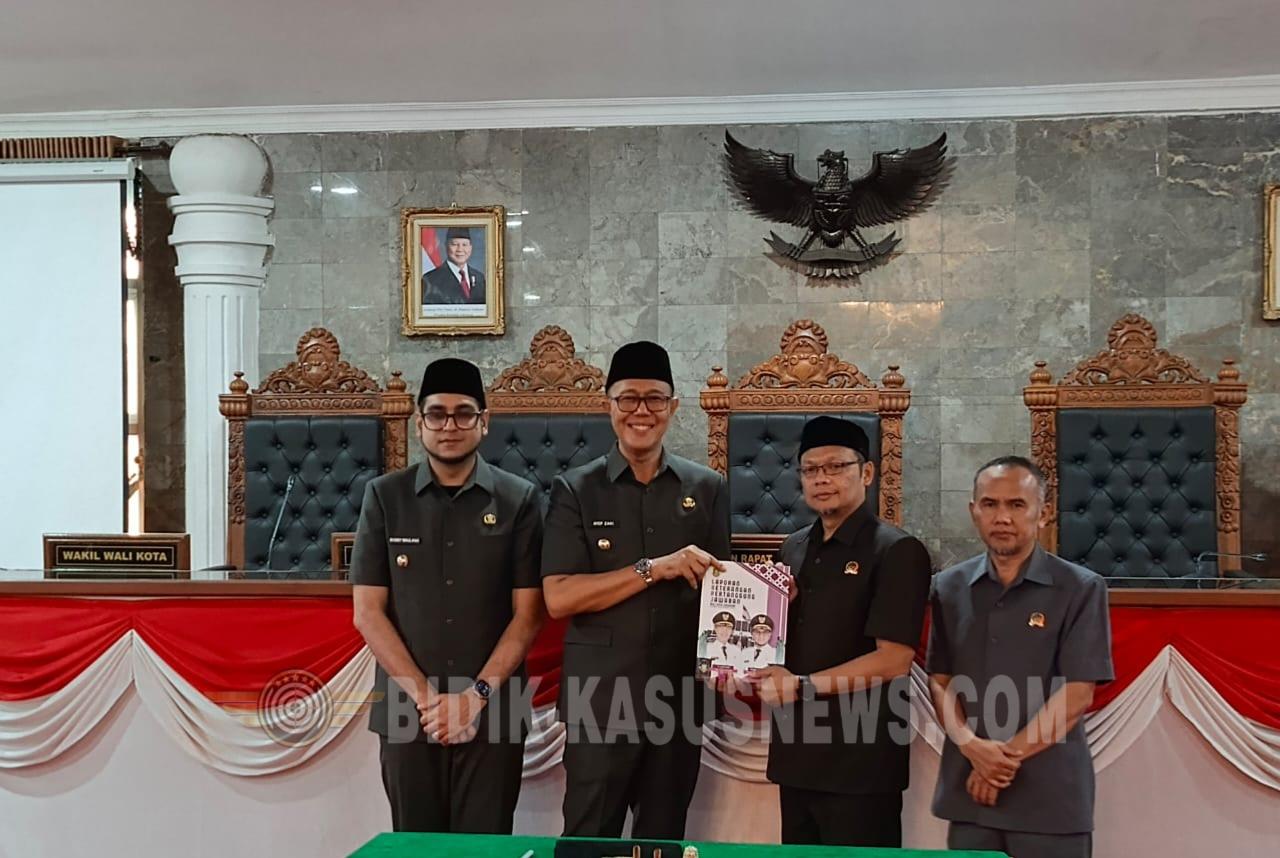 SUKABUMI-BIDIK-KASUSNEWS.COM – DPRD Kota Sukabumi menggelar rapat paripurna dengan membahas empat agenda strategis daerah, Sabtu (14/3/2026) di Ruang Rapat Paripurna DPRD Kota Sukabumi, Jalan Ir. H. Juanda, Kecamatan Cikole. Rapat dipimpin Ketua DPRD Kota Sukabumi Wawan Juanda dan dihadiri sekitar 120 peserta dari unsur pemerintah daerah, anggota DPRD, aparat penegak hukum, serta para kepala perangkat daerah. Turut hadir Wali Kota Sukabumi Ayep Zaki dan Wakil Wali Kota Bobby Maulana. Dalam rapat tersebut, DPRD Kota Sukabumi menyetujui secara definitif Rancangan Peraturan Daerah (Raperda) tentang Penyelenggaraan Peternakan dan Kesehatan Hewan. Selain itu, paripurna juga membahas tiga agenda lainnya yakni penyampaian Laporan Keterangan Pertanggungjawaban (LKPJ) Wali Kota Tahun Anggaran 2025, penjelasan rencana perubahan status PD Waluya, serta penjelasan DPRD terkait Raperda Perlindungan Guru dan Tenaga Kependidikan. Ketua DPRD Kota Sukabumi Wawan Juanda menjelaskan bahwa dari empat agenda yang dibahas, satu di antaranya merupakan persetujuan Raperda, sementara tiga agenda lainnya berupa penyampaian dan penjelasan. “Hari ini ada empat agenda paripurna. Untuk LKPJ kita menargetkan pembahasannya bisa tuntas pada akhir Maret. Targetnya laporan tersebut dapat diparipurnakan pada 31 Maret,” ujarnya. Ia menambahkan, kondisi fiskal daerah tahun ini mengalami tekanan akibat kebijakan efisiensi anggaran yang mencapai sekitar Rp159 miliar. Meski demikian, pihaknya optimistis laporan pertanggungjawaban pemerintah daerah tetap dapat memperoleh penilaian baik dari Kementerian Dalam Negeri. Sementara itu, Ketua Panitia Khusus Raperda Penyelenggaraan Peternakan dan Kesehatan Hewan Inggu Sudeni menyampaikan bahwa pembahasan raperda telah dilakukan secara komprehensif melalui rapat internal, rapat kerja bersama perangkat daerah, hingga konsultasi dengan berbagai pemangku kepentingan. Raperda tersebut disusun untuk menghadirkan pengaturan yang lebih komprehensif terkait penyelenggaraan peternakan di Kota Sukabumi. Regulasi ini juga bertujuan menjamin kesehatan hewan, melindungi masyarakat dari potensi penyakit hewan, serta meningkatkan kesejahteraan hewan. Panitia khusus juga merekomendasikan penguatan peran pemerintah daerah dalam pencegahan dan pengendalian penyakit hewan, pengawasan usaha peternakan, serta penyusunan aturan teknis melalui peraturan wali kota. Dalam kesempatan yang sama, Wali Kota Sukabumi Ayep Zaki menyampaikan Laporan Keterangan Pertanggungjawaban (LKPJ) Tahun Anggaran 2025 sebagai bentuk akuntabilitas pelaksanaan program dan kegiatan pemerintah daerah selama satu tahun anggaran. Ia menjelaskan bahwa tema pembangunan Kota Sukabumi pada tahun 2025 adalah Menguatkan Pembangunan Kota yang Inklusif dan Berkelanjutan dengan lima prioritas utama, yakni peningkatan Pendapatan Asli Daerah (PAD), peningkatan kesejahteraan masyarakat, penciptaan lapangan kerja, penataan kota, serta penguatan nilai dan inklusivitas pembangunan. Dari sisi keuangan daerah, pendapatan daerah tahun anggaran 2025 ditargetkan sebesar Rp1,316 triliun dan terealisasi Rp1,322 triliun atau mencapai 100,45 persen. Sementara belanja daerah yang dianggarkan sebesar Rp1,365 triliun terealisasi Rp1,325 triliun atau sekitar 97,07 persen. Selain itu, Wali Kota juga menjelaskan rencana perubahan status PD Waluya menjadi PT Waluya (Perseroda). Perubahan tersebut bertujuan untuk meningkatkan kinerja Badan Usaha Milik Daerah sekaligus memperkuat kontribusinya terhadap Pendapatan Asli Daerah. Perseroda nantinya akan mengembangkan sejumlah bidang usaha utama seperti Pedagang Besar Farmasi dan Alat Kesehatan, pengelolaan apotek dan optik, serta usaha dagang dan jasa lain yang berkaitan dengan sektor kesehatan. Pada kesempatan tersebut, DPRD Kota Sukabumi juga menyampaikan penjelasan terhadap Raperda tentang Perlindungan Guru dan Tenaga Kependidikan. Raperda ini disusun sebagai upaya memberikan perlindungan hukum dan rasa aman bagi para tenaga pendidik dalam menjalankan tugas profesionalnya. Melalui regulasi tersebut diharapkan guru dan tenaga kependidikan di Kota Sukabumi mendapatkan kepastian perlindungan serta dukungan dalam menjalankan peran pentingnya dalam meningkatkan kualitas pendidikan. (Usep)