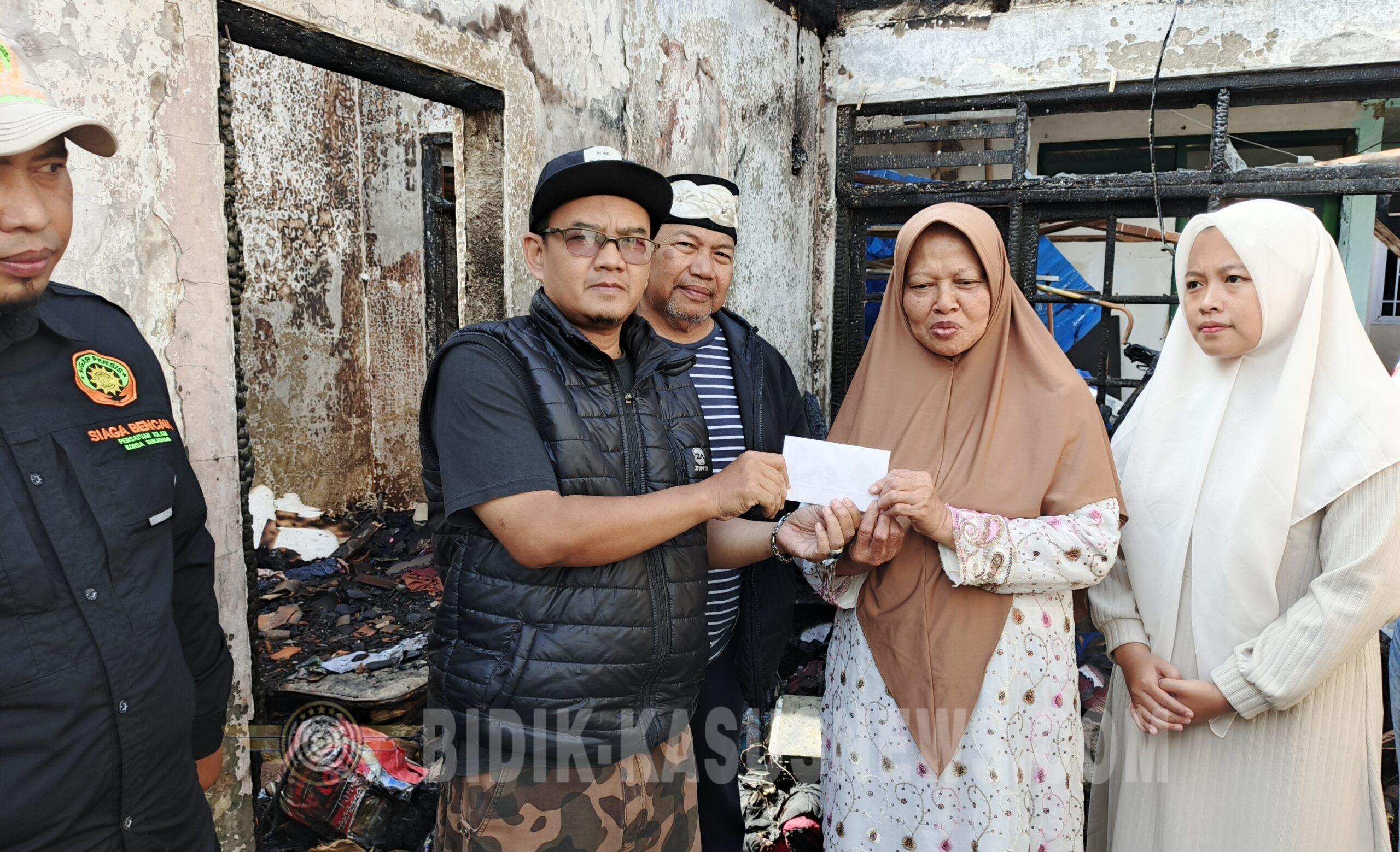 SUKABUMI-BIDIK-KASUSNEWS.COM – Kepala Perwakilan Wilayah (Kaperwil) Jawa Barat Usep Mulyana menyerahkan bantuan yang berasal dari donasi jajaran Redaksi dan wartawan. Usep mengatakan, bantuan tersebut diterima langsung oleh korban Atih Atikah warga Kampung Tegalwangi RT 04 RW 02 Kelurahan Kecamatan Warudoyong Kota Sukabumi, Minggu (1/3/2026). Dia menambahkan, bantuan tersebut sebagai bentuk rasa empatik dari media online BIDIK-KASUSNEWS.COM kepada korban yang baru saja mengalami cobaan di pagi hari kemarin. “Saya sampaikan dukacita mendalam atas musibah yang dialami oleh bu Atih. Semoga beliau diberikan kekuatan dan ketabahan menerima cobaan ini,” kata Usep. Dia juga berharap kepada semua pihak yang mengetahui informasi ini untuk segera mengulurkan bantuan baik dalam bentuk materi, tenaga dan pikiran untuk membantu meringankan beban yang dipikul korban. “Alhamdulillah, sehari setelah kejadian, bantuan datang silih berganti baik dari pemerintah setempat yang diinstruksikan langsung oleh pak wali lewat dinas terkait,” ujarnya. Sementara itu, Atih, mengungkapkan rasa syukur terhadap Allah SWT dan menyatakan terimakasih yang tak terhingga kepada semua pihak termasuk pemerintah, para relawan dan donatur. “Saya mengucapkan banyak terimakasih kepada semua pihak yang memberikan perhatian dan bantuan untuk membangun kembali rumah yang hancur karena kebakaran,” pungkasnya. (Dicky)