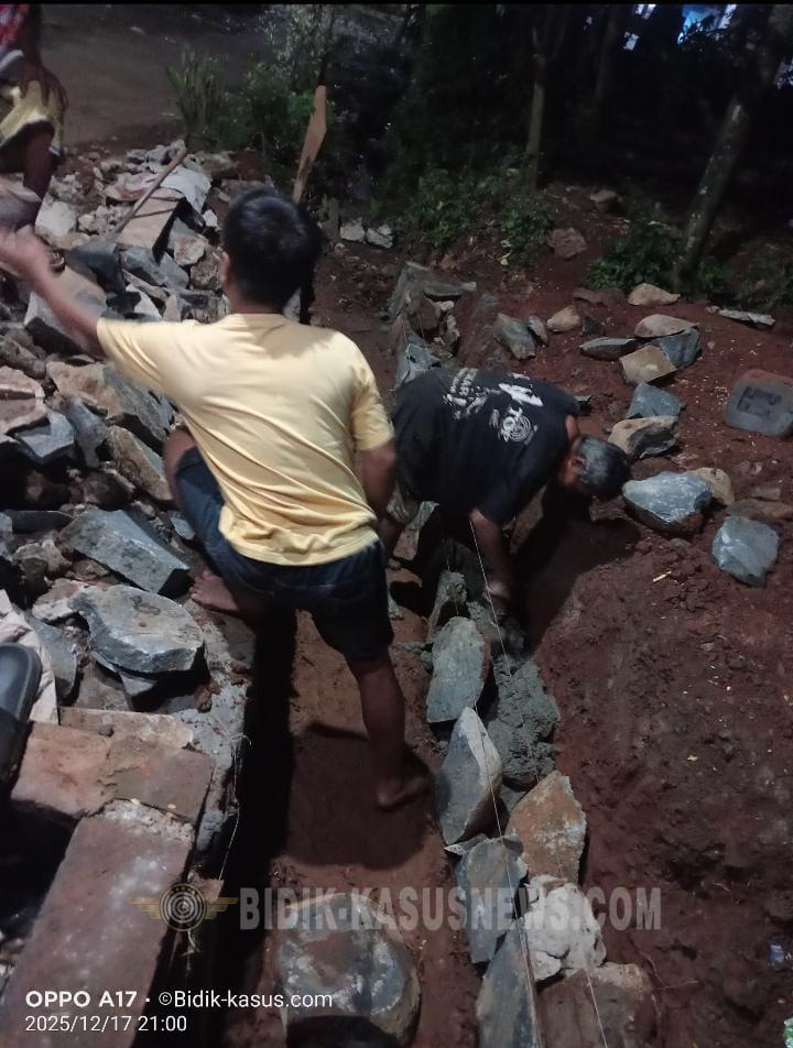 JATENG:Bidik-kasusnews.com Jepara – Semangat gotong royong kembali ditunjukkan oleh warga Desa Guyangan RT 01 RW 04 melalui kegiatan pembangunan talut yang dilaksanakan secara swakelola pada Rabu, 17 Desember 2025. Pembangunan talut tersebut sepenuhnya menggunakan dana hasil iuran masyarakat tanpa melibatkan anggaran Dana Desa. Talut yang dibangun ini bertujuan untuk memperkuat tebing serta mencegah terjadinya longsor, terutama saat musim hujan tiba. Seluruh proses pembangunan dilakukan secara mandiri oleh warga setempat, mulai dari perencanaan, pengadaan material, hingga pengerjaan di lapangan. Warga RT 01 RW 04 Desa Guyangan menyampaikan bahwa kegiatan ini merupakan hasil kesepakatan bersama warga demi kepentingan lingkungan dan keselamatan bersama. “Pembangunan talut ini murni dari iuran masyarakat. Kami sepakat untuk bergotong royong karena ini menyangkut kepentingan bersama,” ujarnya. Antusiasme warga terlihat jelas selama kegiatan berlangsung. Warga saling bahu-membahu, baik dalam pekerjaan fisik maupun dukungan logistik. Hal ini menunjukkan kuatnya rasa kebersamaan dan kepedulian sosial di lingkungan RT 01 RW 04. Selain memperkuat infrastruktur lingkungan, pembangunan talut swakelola ini juga menjadi bukti bahwa partisipasi aktif masyarakat mampu menghasilkan pembangunan yang bermanfaat tanpa harus selalu bergantung pada anggaran pemerintah. Diharapkan, talut yang telah dibangun dapat memberikan manfaat jangka panjang bagi warga serta menjadi contoh positif bagi lingkungan lain dalam mengedepankan semangat swadaya dan gotong royong.