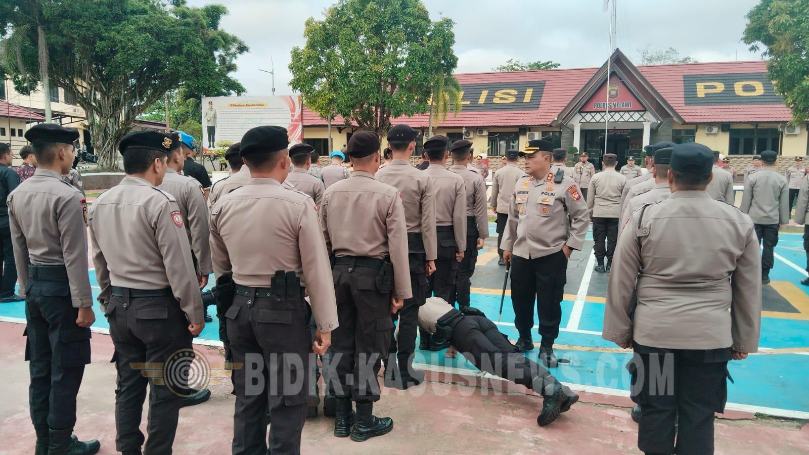 Bidik-kasusnews.com,Melawi Kalimantan Barat Polres Melawi Polda Kalbar –Pelaksanaan apel pagi di Mapolres Melawi, Jumat (27/2/2026), diwarnai dengan pengecekan langsung oleh Kapolres Melawi, Harris Batara Simbolon, S.I.K., S.H., M.Tr.Opsla. Pemeriksaan dilakukan untuk memastikan kedisiplinan dan kesiapan personel dalam menjalankan tugas pelayanan kepada masyarakat. Apel pagi tersebut dipimpin oleh Wakapolres Melawi, Aang Permana, S.I.P., S.H., M.A.P. Dalam arahannya, ia menekankan pentingnya menjaga disiplin, kekompakan, serta profesionalisme dalam setiap pelaksanaan tugas. Sambil mendengarkan arahan apel, Kapolres Melawi berkeliling ke setiap barisan personel. Didampingi anggota Provos, ia melakukan pengecekan langsung terhadap kerapian dan kebersihan pakaian dinas, kelengkapan atribut, hingga sikap tampang masing-masing anggota. Pengecekan dilakukan secara detail di barisan masing-masing personel. Kapolres memastikan setiap anggota tampil rapi sesuai ketentuan, sebagai bentuk tanggung jawab dan wujud kesiapan dalam memberikan pelayanan prima kepada masyarakat. Tak hanya memeriksa barisan saat apel, Kapolres juga melanjutkan pengecekan ke sejumlah ruang pelayanan. Ia meninjau ruang penjagaan, ruang Pamapta, serta beberapa ruang pelayanan lainnya guna memastikan kebersihan, kerapian, dan kesiapan sarana pendukung operasional. Langkah tersebut merupakan bagian dari pengawasan internal sekaligus upaya meningkatkan kualitas pelayanan publik di lingkungan Polres Melawi. Kapolres menegaskan bahwa lingkungan kerja yang bersih dan tertata rapi akan berdampak pada kenyamanan masyarakat yang datang untuk mendapatkan pelayanan. “Disiplin dimulai dari hal kecil, mulai dari penampilan pribadi hingga kesiapan ruang pelayanan. Semua harus dalam kondisi siap,” tegasnya. Dengan pengecekan rutin ini, diharapkan seluruh personel Polres Melawi semakin meningkatkan kedisiplinan, menjaga citra institusi, serta memberikan pelayanan yang profesional, humanis, dan responsif kepada masyarakat. Wartawan Si Juli