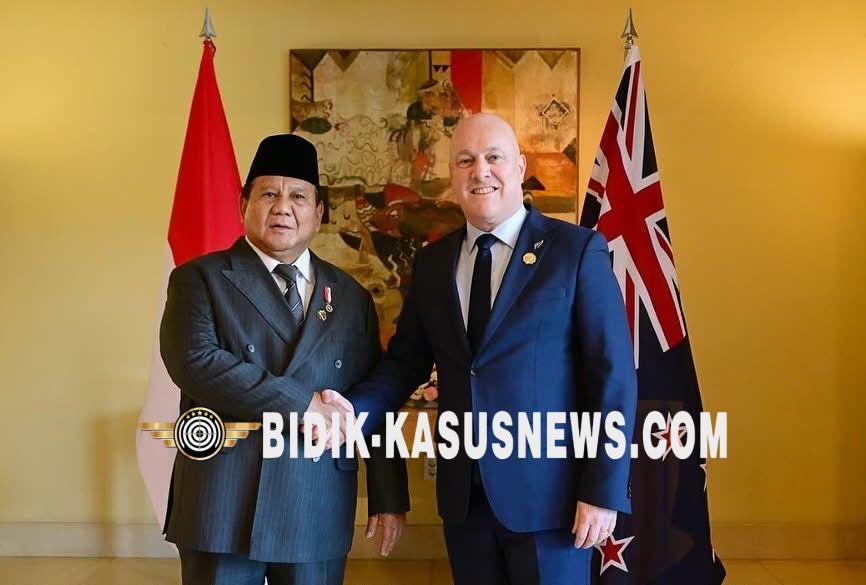 Bidik-kasusnews.com,Jakarta Presiden RI Prabowo Subianto mengadakan pertemuan bilateral dengan PM Selandia Baru Christopher Luxon di Ruang Agenas, Hotel Lahan Select Gyeongju, Jumat (31/10/2025). Pertemuan berlangsung di sela-sela rangkaian KTT APEC 2025 yang digelar di Gyeongju, Republik Korea. Kedua pemimpin membahas upaya memperkuat kemitraan komprehensif yang telah terjalin antara Indonesia dan Selandia Baru sejak tahun 2018. Presiden Prabowo menegaskan komitmen kedua negara untuk terus memperkuat kerja sama dalam kerangka kemitraan komprehensif yang selama ini terjalin erat. Dalam kesempatan tersebut, PM Luxon juga menegaskan komitmen untuk memperkuat hubungan perdagangan antara kedua negara. PM Luxon juga mengapresiasi dukungan Indonesia terhadap peningkatan kemitraan strategis komprehensif ASEAN dan Selandia Baru, serta berbagai kerja sama regional lainnya. Dalam kesempatan terpisah usai pertemuan, Presiden Prabowo menekankan pentingnya pertukaran pengalaman dan penguatan kolaborasi di sektor pendidikan, pertanian, serta peningkatan kapasitas sumber daya manusia Indonesia. Kedua pemimpin juga menyoroti pentingnya memperluas akses pasar dan mendorong peningkatan nilai perdagangan yang pada tahun 2024 mencapai USD1,91 miliar. Sumber: Istana Presiden RI Wartawan Basori