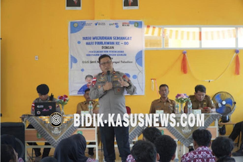 Bidik-kasusnews.com,Sintang Kalimantan Barat Dalam rangka memperingati Hari Pahlawan Tahun 2025, Komandan Batalyon C Pelopor Satbrimob Polda Kalimantan Barat Kompol Mujiono, S.H., M.H. memberikan pembekalan kepada para pelajar SMK Negeri 1 Sungai Tebelian, Kabupaten Sintang. Selasa-11-Nov-2025 Mengusung tema “Pencegahan dan Penanganan Kekerasan di Lingkungan Sekolah”, sebagai bentuk kepedulian Brimob terhadap generasi muda agar terhindar dari perilaku menyimpang dan tindak kekerasan, baik fisik maupun verbal, di lingkungan pendidikan. Dalam penyampaiannya, Danyon C Pelopor menjelaskan pentingnya menumbuhkan rasa saling menghargai, empati, dan kebersamaan antar siswa. Kekerasan dalam bentuk apapun, termasuk perundungan (bullying), dapat merusak karakter, menurunkan semangat belajar, serta menciptakan lingkungan sekolah yang tidak sehat. “Semangat kepahlawanan di masa kini bukan lagi mengangkat senjata, tetapi bagaimana kita bisa menjadi pribadi yang berani berbuat benar, melindungi teman, dan menolak segala bentuk kekerasan,” ujar Kompol Mujiono dalam arahannya Kegiatan ini juga diisi dengan sesi tanya jawab interaktif seputar penerimaan Polri dan tahapan seleksi tes. Para siswa menunjukkan antusiasme tinggi dengan mengajukan berbagai pertanyaan mengenai motivasi, persiapan fisik, serta nilai-nilai integritas yang harus dimiliki seorang calon anggota Polri. Melalui kegiatan ini, diharapkan para pelajar dapat meneladani nilai-nilai perjuangan para pahlawan dengan menanamkan disiplin, tanggung jawab, serta semangat kebersamaan di lingkungan sekolah. Pihak sekolah menyampaikan apresiasi dan rasa terima kasih kepada Batalyon C Pelopor Satbrimob Polda Kalbar atas kegiatan pembinaan ini. Sinergi antara aparat kepolisian dan dunia pendidikan diharapkan terus terjalin guna menciptakan lingkungan belajar yang aman, nyaman, dan bebas dari kekerasan. Wartawan Si Juli