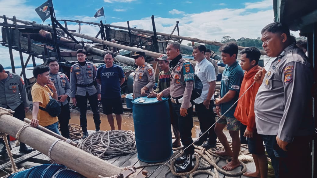 Bidik-kasusnews.com,Sekadau Kalimantan Barat Menindaklanjuti adanya aktivitas pertambangan emas tanpa izin (PETI) di wilayah Sungai Kapuas, jajaran Polres Sekadau bergerak cepat melakukan pengecekan langsung di Dusun Sungai Putat, Desa Sungai Ringin, Kecamatan Sekadau Hilir Kabupaten Sekadau Kalbar. Rabu (01/10/2025), Pukul 13.00 Wib Kegiatan yang melibatkan personel Satuan Samapta Polres Sekadau bersama Polsek Sekadau Hilir, dipimpin langsung oleh Kapolsek Sekadau Hilir AKP Burhan Nuddin dengan kekuatan 20 personel. Dari hasil pengecekan, petugas menemukan 18 unit rakit tambang. Sebanyak 7 rakit berada di tepian sungai dalam kondisi tidak beroperasi, sedangkan 11 rakit lainnya masih melakukan aktivitas penambangan. Menyikapi hal tersebut, aparat di lapangan memberikan imbauan tegas secara persuasif agar seluruh kegiatan dihentikan dan rakit segera ditarik meninggalkan area sungai. Kapolres Sekadau AKBP Donny Molino Manoppo melalui Kasi Humas IPTU Triyono menegaskan bahwa penanganan PETI menjadi fokus perhatian serius kepolisian. “Polres Sekadau tidak tinggal diam. Setiap temuan langsung ditindaklanjuti, baik melalui langkah preventif, persuasif, maupun represif sesuai ketentuan hukum. Upaya ini kami lakukan secara berkelanjutan,” tegas IPTU Triyono. Ia menambahkan, Polres Sekadau juga terus mendorong partisipasi masyarakat untuk menjaga lingkungan dengan tidak terlibat dalam aktivitas pertambangan tanpa izin. “Polres Sekadau akan terus mengambil langkah tegas, transparan, dan proporsional dalam penanganan PETI. Upaya ini sekaligus untuk menjaga keamanan, ketertiban, dan kelestarian lingkungan di wilayah Kabupaten Sekadau,” tutupnya. Wartawan Asrori