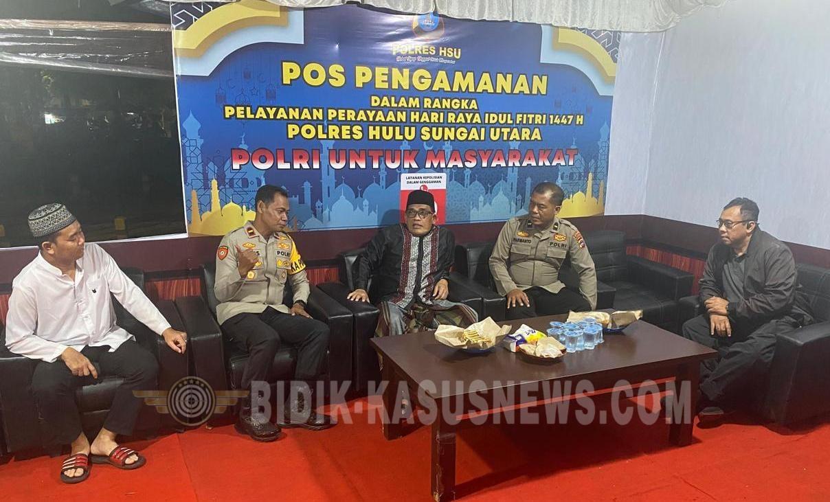 BIDIK-KASUSNEWS.COM Hulu Sungai Utara – Bupati Hulu Sungai Utara (HSU) melakukan kunjungan ke Pos Pengamanan Operasi Ketupat Intan 2026 yang berada di kawasan Taman Junjung Buih, Sabtu malam (14/3/2026). Kunjungan tersebut dilakukan untuk memastikan kesiapan personel dalam mengamankan arus mudik Lebaran di wilayah Kabupaten Hulu Sungai Utara. Kegiatan yang berlangsung sekitar pukul 23.30 hingga 00.10 WITA itu disambut oleh petugas Pos Pengamanan dari Polres Hulu Sungai Utara yang sedang melaksanakan tugas pengamanan dan pemantauan arus lalu lintas. Dalam kunjungan tersebut, Bupati HSU melakukan pengecekan langsung terhadap situasi arus mudik serta kesiapan personel yang bertugas di Pos Pengamanan Taman Junjung Buih. Ia juga memberikan apresiasi kepada petugas yang tetap siaga menjalankan tugas demi menjaga keamanan dan kenyamanan masyarakat selama momentum mudik Lebaran. Berdasarkan hasil pemantauan di lapangan, situasi di sekitar Pos Pengamanan terpantau aman dan kondusif. Arus lalu lintas juga terpantau lancar tanpa adanya gangguan yang berarti. Kunjungan ini menjadi bagian dari upaya pemerintah daerah bersama aparat kepolisian untuk memastikan seluruh rangkaian pengamanan dalam Operasi Ketupat Intan 2026 berjalan optimal, sehingga masyarakat dapat melaksanakan perjalanan mudik dengan rasa aman dan nyaman. Polres Hulu Sungai Utara terus mengintensifkan pengamanan serta pelayanan kepada masyarakat selama periode arus mudik dan balik Lebaran melalui sejumlah pos pengamanan yang telah didirikan di titik-titik strategis. (Agus)