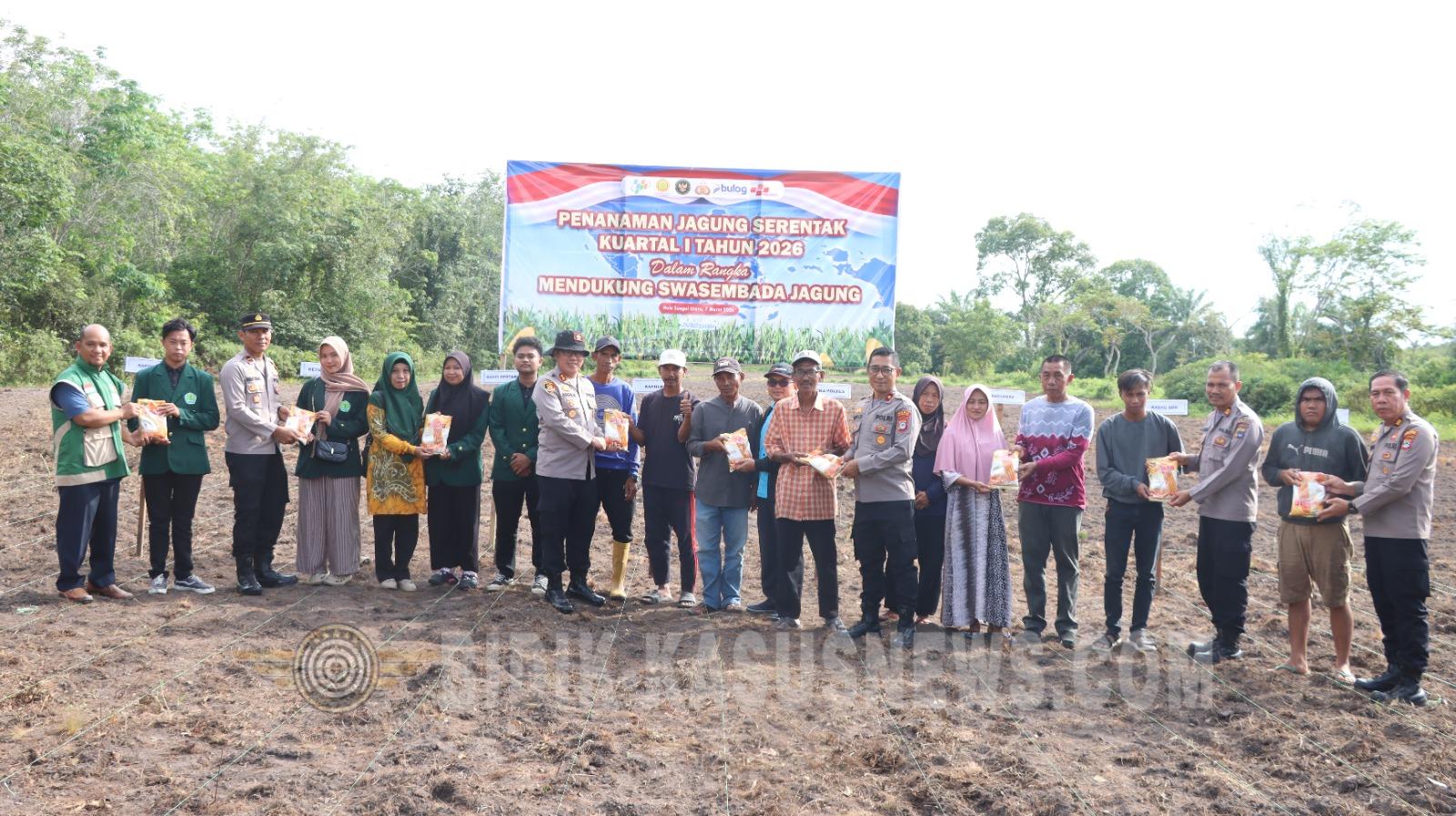 BIDIK-KASUSNEWS.COM Hulu Sungai Utara – Dalam upaya mendukung program ketahanan pangan nasional, jajaran Polres Hulu Sungai Utara menggelar kegiatan penanaman jagung serentak Kuartal I Tahun 2026 yang dilaksanakan melalui sambungan Zoom bersama Kepolisian Negara Republik Indonesia, Sabtu (7/3/2026). Kegiatan tersebut berlangsung mulai pukul 15.00 WITA di Lapangan Golf Desa Tayur, Kecamatan Amuntai Utara, Kabupaten Hulu Sungai Utara. Acara ini dihadiri langsung oleh Kapolres Hulu Sungai Utara AKBP Agus Nuryanto bersama Wakapolres Hulu Sungai Utara, para Pejabat Utama Polres HSU, jajaran Kapolsek, perwakilan Dinas Pertanian Kabupaten HSU melalui Kepala Bidang Ketahanan Pangan, Kepala Desa Tayur, mahasiswa dari STIPER Amuntai, serta kelompok tani Desa Tayur. Kegiatan diawali dengan pembukaan dan doa bersama, dilanjutkan dengan sambutan dari perwakilan Dinas Pertanian Kabupaten HSU yang menegaskan pentingnya sinergi antara aparat, pemerintah daerah, dan petani dalam memperkuat sektor pertanian. Kapolres HSU dalam sambutannya menyampaikan bahwa program penanaman jagung serentak merupakan bagian dari inisiatif Polri dalam membantu meningkatkan produksi pangan nasional sekaligus mendukung kesejahteraan petani. Dalam kesempatan tersebut, Kapolres juga menyerahkan secara simbolis bantuan bibit jagung kepada perwakilan kelompok tani Desa Tayur sebelum dilanjutkan dengan kegiatan penanaman jagung bersama di lahan yang telah disiapkan. Setelah prosesi penanaman, seluruh peserta kemudian mengikuti kegiatan Zoom Meeting yang diselenggarakan oleh Mabes Polri sebagai bagian dari pelaksanaan program penanaman jagung serentak secara nasional. Program ini bertujuan untuk meningkatkan produksi jagung di daerah, menjaga stabilitas harga komoditas pangan, serta memberikan manfaat ekonomi bagi petani dan masyarakat sekitar. Selama kegiatan berlangsung, situasi berjalan dengan aman, tertib, dan lancar. Melalui kegiatan ini, diharapkan sinergi antara kepolisian, pemerintah daerah, serta masyarakat dapat terus terjalin dalam mendukung pembangunan sektor pertanian dan ketahanan pangan di daerah. (Agus)