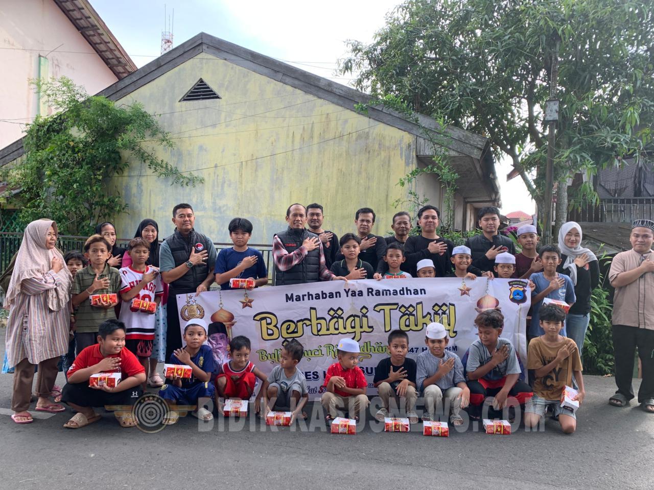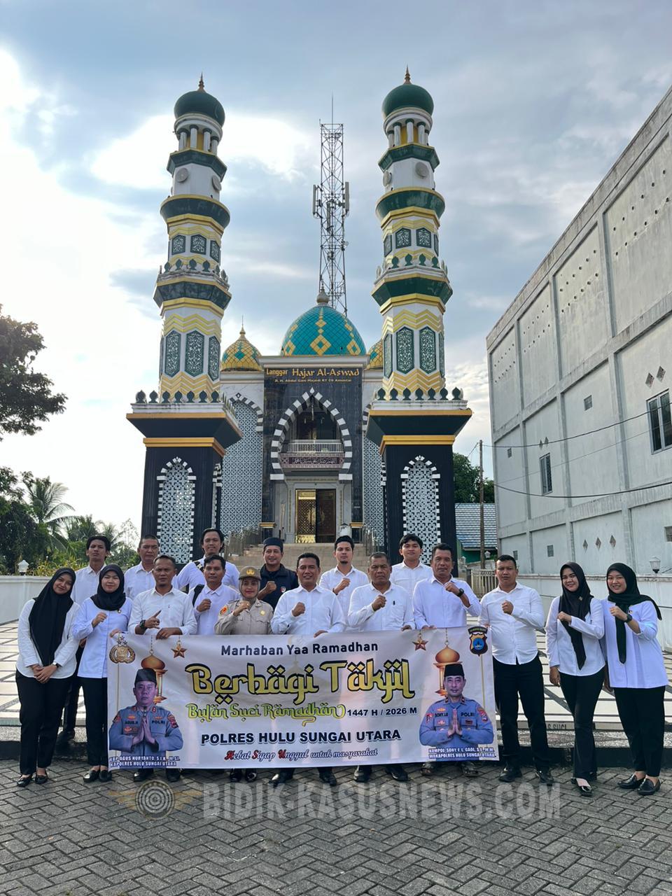 HSU | BIDIK-KASUSNEWS.COM – Dalam rangka menyemarakkan bulan suci Ramadan 1447 Hijriah, Satuan Reserse Kriminal (Sat Reskrim) Polres Hulu Sungai Utara menggelar kegiatan berbagi takjil kepada masyarakat, Senin (1/3/2026) sore. Kegiatan tersebut berlangsung di Jalan Tembus Paliwara, tepatnya di depan Mushola Hajar Aswat, Kabupaten Hulu Sungai Utara (HSU). Kegiatan yang dimulai sekitar pukul 16.45 Wita hingga 17.15 Wita itu dipimpin langsung oleh Kasat Reskrim Polres HSU dan diikuti seluruh personel Sat Reskrim. Sebanyak 100 bungkus takjil dibagikan kepada para pengguna jalan yang melintas, baik pengendara roda dua, roda empat, maupun masyarakat sekitar. Kasat Reskrim Polres HSU menyampaikan bahwa kegiatan ini merupakan bentuk kepedulian dan kebersamaan jajaran kepolisian dengan masyarakat, khususnya di bulan Ramadan yang penuh berkah. Menurutnya, momentum berbagi ini tidak hanya sebatas memberikan makanan untuk berbuka puasa, tetapi juga mempererat hubungan antara Polri dan warga. “Ramadan adalah bulan yang mengajarkan nilai empati dan solidaritas. Melalui kegiatan ini, kami ingin hadir lebih dekat dengan masyarakat serta menumbuhkan semangat saling berbagi,” ujarnya di sela kegiatan. Para pengendara dan warga yang menerima takjil tampak antusias dan menyambut positif kegiatan tersebut. Pembagian dilakukan dengan tetap memperhatikan kelancaran arus lalu lintas di kawasan Jalan Tembus Paliwara. Kegiatan sosial ini menjadi bagian dari komitmen Polres HSU untuk terus membangun kedekatan humanis dengan masyarakat. Selain menjalankan tugas penegakan hukum, jajaran kepolisian juga berupaya aktif dalam kegiatan sosial kemasyarakatan sebagai wujud pelayanan dan pengabdian kepada publik. Dengan adanya kegiatan berbagi takjil ini, diharapkan semangat kebersamaan dan kepedulian sosial di tengah masyarakat Kabupaten Hulu Sungai Utara semakin tumbuh selama bulan Ramadan dan seterusnya. (Agus)