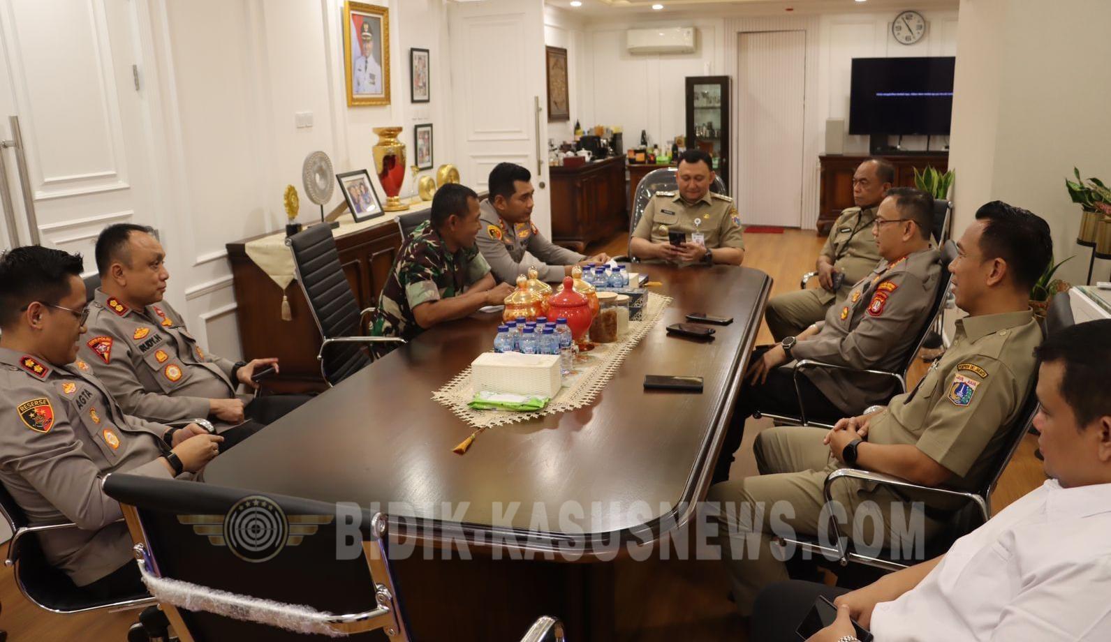 Jakarta Utara, Bidik-kasusnews.com – Forum Koordinasi Pimpinan Kota (Forkopimko) Jakarta Utara menggelar Rapat Koordinasi Kewilayahan pada Senin (2/3/2026) di Ruang Fatahillah Lantai 2 Gedung Blok P Kantor Walikota Jakarta Utara. Kegiatan ini bertujuan untuk mengevaluasi perkembangan situasi keamanan dan ketertiban masyarakat (kamtibmas) selama 10 hari pelaksanaan ibadah Ramadhan, sekaligus memperkuat sinergi lintas sektor dalam menjaga stabilitas wilayah. Rapat dihadiri oleh Walikota Jakarta Utara Hendra Hidayat, Kapolres Metro Jakarta Utara Kombes Pol. Erick Frendriz, S.I.K., M.Si., Kapolres Pelabuhan Tanjung Priok AKBP Aris Wibowo, S.I.K., M.H., perwakilan Dandim 0502 Jakarta Utara Mayor Yohanes, Kepala Seksi Intelijen Kejaksaan Negeri Jakarta Utara Sudi Haryansyah, S.H., M.H., Kepala Satpol PP Jakarta Utara Roby, para Camat, Kapolsek se-Jakarta Utara, serta Dewan Kota Jakarta Utara. Dalam pemaparannya, masing-masing wilayah menyampaikan perkembangan situasi terkini. Kecamatan Cilincing melaporkan telah menyediakan perangkat handy talky (HT) di setiap kelurahan, RW, dan RT guna mempercepat respons terhadap potensi gangguan keamanan. Meski kemacetan masih kerap terjadi, penggunaan kembang api nihil, dan insiden tawuran tercatat satu kali tanpa eskalasi lebih lanjut. Kecamatan Tanjung Priok menyampaikan telah mendirikan pos keamanan Ramadhan di sejumlah titik rawan serta mengantisipasi kegiatan masyarakat seperti pawai buka bersama yang mulai marak. Sementara itu, Kecamatan Penjaringan melaporkan pembangunan pos pantau yang dimanfaatkan masyarakat serta keberhasilan aparat bersama warga dalam mencegah aksi tawuran. Kapolsek Kalibaru AKP Arga Arianda Siregar, S.T.K., S.I.K., M.H., menjelaskan pihaknya telah membentuk Pos Pantau di Plaza Kalibaru guna mengantisipasi potensi pencegahan tawuran laut seperti yang pernah terjadi tahun 2020. Selain itu, patroli gabungan bersama masyarakat rutin dilaksanakan, termasuk kegiatan positif seperti lomba lari selepas salat tarawih untuk mempererat kebersamaan. Kapolsek Kawasan Sunda Kelapa AKP Hitler Napitupulu menambahkan bahwa pihaknya telah menjalin komunikasi intensif dengan tokoh masyarakat di Muara Angke serta melaksanakan patroli bersama warga usai tarawih dan sahur, dengan situasi kamtibmas yang tetap aman dan kondusif. Hal serupa disampaikan Kapolsek Kawasan Muara Baru AKP Kurniawan, S.H., yang telah mendirikan pos pantau di area Pelabuhan Muara Baru untuk mengantisipasi potensi gangguan keamanan. Dalam arahannya, Kapolres Metro Jakarta Utara Kombes Pol. Erick Frendriz menekankan pentingnya kewaspadaan terhadap potensi gangguan keamanan, termasuk dampak dinamika global yang berpotensi memicu ancaman terorisme. Ia juga mengingatkan seluruh jajaran untuk mengantisipasi gesekan antar ormas selama Ramadhan, potensi gangguan dari kegiatan perlombaan maupun aktivitas masyarakat berskala besar, serta terus melibatkan masyarakat dalam menjaga keamanan lingkungan. Sementara itu, Kapolres Pelabuhan Tanjung Priok AKBP Aris Wibowo menginstruksikan agar polsek yang berbatasan wilayah meningkatkan koordinasi dan pengawasan, khususnya dalam mengantisipasi kemacetan akibat aktivitas bongkar muat di Pelabuhan Tanjung Priok menjelang dan pasca Hari Raya Idul Fitri. Rapat ditutup dengan buka puasa bersama dan ramah tamah. Secara umum, situasi keamanan dan ketertiban di wilayah Jakarta Utara selama 10 hari Ramadhan terpantau aman dan kondusif, berkat sinergi antara unsur Forkopimko, aparat keamanan, dan partisipasi aktif masyarakat. (Agus)