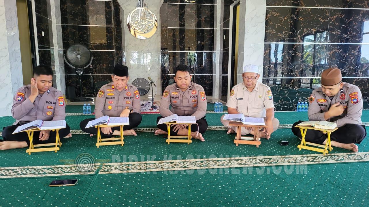 HSU | BIDIK-KASUSNEWS.COM – Dalam rangka meningkatkan keimanan serta pembinaan mental personel selama bulan suci Ramadhan, jajaran Polres Hulu Sungai Utara mengikuti kegiatan tadarus Al-Qur’an secara virtual bersama Mabes Polri, Jumat pagi (20/2/2026). Kegiatan yang merupakan bagian dari program rutin Pembinaan Rohani dan Mental (Binrohtal) Polri tersebut diikuti secara serentak oleh personel kepolisian dari berbagai wilayah di Indonesia melalui sambungan Zoom Meeting. Program ini digelar secara intensif, khususnya selama Ramadhan, guna memperkuat spiritualitas sekaligus membentuk karakter anggota Polri yang beriman dan bertakwa. Pelaksanaan tadarus dipimpin oleh Bagbinreligi Ro Watpers SSDM Polri dan dipusatkan dari Divhumas Polri. Dalam kegiatan tersebut, para peserta membaca Al-Qur’an secara berjamaah dengan target khatam sebagai bagian dari gerakan One Day One Khatam. Kegiatan tadarus Al-Qur’an ini umumnya dilaksanakan rutin setiap Senin dan Jumat pagi selama bulan Ramadhan. Selain sebagai ibadah bersama, kegiatan tersebut juga menjadi sarana refleksi spiritual agar setiap personel mampu menjalankan tugas pelayanan kepada masyarakat dengan sikap humanis, berakhlak, dan penuh tanggung jawab. Melalui program Binrohtal ini, Polri berupaya membangun fondasi moral dan spiritual yang kuat di lingkungan internal. Harapannya, nilai-nilai Al-Qur’an tidak hanya dibaca, tetapi juga diimplementasikan dalam pelaksanaan tugas sehari-hari, sehingga pelayanan kepada masyarakat semakin profesional dan berintegritas. Kegiatan berlangsung dengan khidmat dan lancar, serta menjadi momentum mempererat kebersamaan sekaligus meningkatkan kualitas rohani personel Polri di seluruh Indonesia. (Agus)