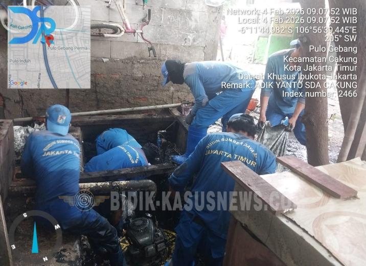 JAKARTA TIMUR, Bidik-kasusnews.com– Banjir yang kerap melanda Gang Damai, Kelurahan Pulo Gebang, Kecamatan Cakung, Jakarta Timur, kembali menjadi perhatian serius. Menyikapi kondisi tersebut, petugas Pasukan Biru Sumber Daya Air (SDA) Kecamatan Cakung bersama tokoh masyarakat dan warga setempat menggelar aksi gotong royong membersihkan saluran air, Kamis pagi (4/1/2026). Pembersihan difokuskan pada gorong-gorong dan saluran air yang selama ini tersumbat oleh endapan lumpur dan tumpukan sampah, yang menjadi penyebab utama meluapnya air saat hujan deras berlangsung lama. Dalam kegiatan tersebut, petugas terlihat mengangkut lumpur dan sampah dari dalam saluran air, kemudian dimasukkan ke dalam karung untuk selanjutnya dibuang ke tempat pembuangan limbah yang telah disiapkan Pemerintah Kota Administrasi Jakarta Timur. Langkah ini dilakukan sebagai upaya mitigasi dini guna mencegah terulangnya banjir parah seperti yang pernah terjadi sebelumnya. Diketahui, banjir di kawasan ini sempat merendam ratusan rumah warga hingga ketinggian lebih dari satu meter dan membutuhkan waktu lama untuk surut. Tokoh masyarakat setempat, Darizal, menyambut positif respons cepat yang dilakukan Pasukan Biru dari Kecamatan Cakung bersama pihak Kelurahan Pulo Gebang. “Kami sangat mengapresiasi gerak cepat petugas dan keterlibatan warga. Ini bentuk kepedulian nyata terhadap lingkungan dan keselamatan warga,” ujar Darizal. Ia berharap kegiatan serupa dapat dilakukan secara rutin, terutama di wilayah-wilayah lain yang rawan banjir saat musim hujan. Warga juga berharap Pemerintah Provinsi DKI Jakarta dan Wali Kota Jakarta Timur terus meningkatkan perhatian terhadap perawatan saluran air sebagai langkah jangka panjang pengendalian banjir. Gotong royong antara pemerintah dan masyarakat ini diharapkan mampu memperlancar aliran air serta mengurangi risiko banjir, khususnya di kawasan padat penduduk seperti Gang Damai, Pulo Gebang. (Heri)