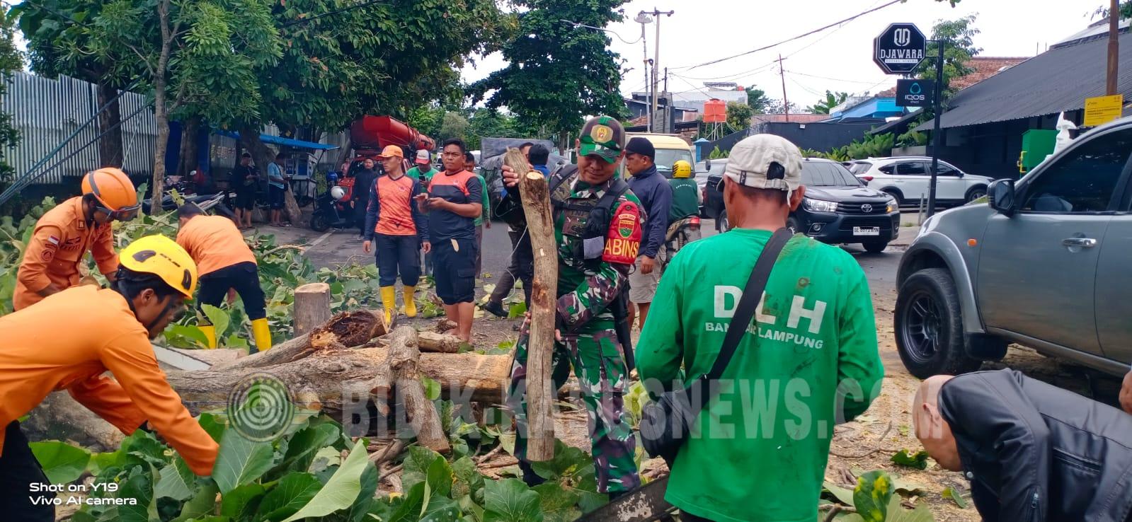 Bandar Lampung, Bidik-kasusnews.com – Respons cepat ditunjukkan Babinsa Koramil 410-02/Teluk Betung Selatan (TBS), Sertu Toto Susilo, dalam menangani insiden pohon tumbang yang terjadi di Jalan Gatot Subroto, Kelurahan Bumi Raya, Kecamatan Bumi Waras, Senin (2/2/2026) siang. Peristiwa tersebut terjadi sekitar pukul 12.30 WIB, dipicu oleh angin kencang yang melanda wilayah setempat. Sebatang pohon besar roboh dan menimpa sebuah mobil minibus Mitsubishi Xpander bernomor polisi BE 1791 AAA yang dikemudikan Ridho Pratama (30), warga Kelurahan Sepang Jaya, Kecamatan Labuhan Ratu. Beruntung, dalam kejadian ini tidak terdapat korban jiwa. Pengemudi dilaporkan selamat, sementara kendaraan mengalami kerusakan ringan berupa penyok pada bagian kap depan. Mengetahui kejadian tersebut, Sertu Toto Susilo yang berada di lokasi segera mengambil langkah cepat dengan bertindak sebagai koordinator lapangan. Ia langsung berkoordinasi dengan Lurah Bumi Raya guna memastikan penanganan berjalan terarah, sekaligus menghubungi BPBD Kota Bandar Lampung untuk meminta bantuan teknis pembersihan. Kehadiran Babinsa di lokasi mampu mengendalikan situasi dan mencegah kepanikan warga. Saat tim BPBD tiba, Sertu Toto Susilo bersama personel Babinsa lainnya serta Linmas Kelurahan Bumi Raya turut membantu proses evakuasi dan pembersihan pohon tumbang yang sempat menghalangi badan jalan. “Respons cepat dan koordinasi yang dilakukan Babinsa sangat membantu. Situasi dapat segera dikendalikan sehingga tidak menimbulkan dampak yang lebih luas,” ujar sumber dari Kodim 0410/KBL, seraya mengapresiasi kinerja Babinsa di lapangan. Proses pembersihan berjalan aman, tertib, dan lancar, serta arus lalu lintas kembali normal setelah pohon berhasil dievakuasi. Insiden ini sekaligus menjadi pengingat bagi masyarakat untuk meningkatkan kewaspadaan terhadap cuaca ekstrem. Kejadian tersebut menegaskan peran strategis Babinsa sebagai ujung tombak TNI di wilayah, tidak hanya dalam pembinaan teritorial, tetapi juga sebagai garda terdepan dalam penanganan darurat dan perlindungan masyarakat. (Agus)