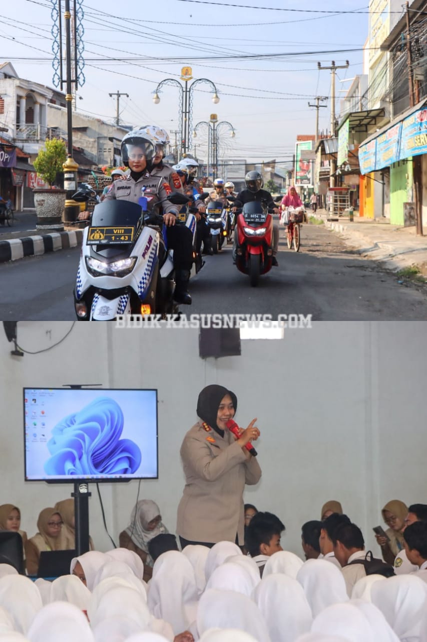 CIREBON | Bidik-kasusnews.com,.Polresta Cirebon bersama Forum Komunikasi Pimpinan Daerah (Forkopimda) Kabupaten Cirebon terus memperkuat sinergi dalam menjaga keamanan serta membangun karakter generasi muda. Hal ini diwujudkan melalui kegiatan Patroli Kamtibmas dan Police Goes to School yang digelar di wilayah hukum Polresta Cirebon, Kabupaten Cirebon, pada Selasa (23/9/2025). Kegiatan ini dipusatkan di SMK Al Musyawirin Weru, Jl. Pengayoman No.33, Weru Kidul, Kecamatan Weru, Kabupaten Cirebon, dan dihadiri langsung oleh jajaran Forkopimda, kepala sekolah, guru, serta ratusan siswa-siswi. Rangkaian kegiatan diawali dengan Patroli Kamtibmas menggunakan kendaraan roda dua. Rute yang ditempuh dimulai dari Asrama Polisi Kaliwadas – Sumber – Watubelah – Weru – hingga tiba di SMK Al Musyawirin. Dalam patroli ini, selain menyapa warga, Kapolresta Cirebon bersama Pejabat Utama Polresta Cirebon juga membagikan paket sembako kepada masyarakat. Kehangatan interaksi ditunjukkan dengan imbauan langsung kepada para pengendara agar lebih disiplin di jalan raya. Kapolresta Cirebon Kombes Pol Sumarni menegaskan pentingnya keselamatan berkendara. “Berkendara itu bukan hanya tentang cepat sampai, tapi bagaimana kita bisa selamat. Patuhi rambu, gunakan helm, jangan melawan arus. Dengan disiplin, kita bisa menyelamatkan diri sendiri sekaligus orang lain,” tutur Kapolresta Cirebon. Setibanya di sekolah, kegiatan dilanjutkan dengan program Police Goes to School Polresta Cirebon bersama Forkopimda Kabupaten Cirebon. Acara berlangsung meriah dan penuh antusiasme dari para siswa. Dalam sambutannya, Kapolresta Cirebon menekankan bahwa pelajar adalah calon pemimpin bangsa harus mampu menghadapi tantangan besar yang dihadapi generasi muda di era digital. “Kemajuan teknologi bisa membawa manfaat besar, tapi juga bisa merusak jika tidak digunakan bijak. Jangan sampai media sosial menguasai hidup kalian. Gunakan waktu untuk belajar, membantu orang tua, dan mengejar cita-cita. Ingat, doa restu orang tua adalah jalan kesuksesan,” ucapnya lantang, disambut tepuk tangan para siswa. Ia juga mengingatkan khusus kepada pelajar putri agar menjaga kehormatan diri dari rayuan di media sosial. “Jangan mudah percaya pada orang asing di dunia maya. Banyak kasus penipuan dan pelecehan berawal dari sana. Hati-hati, kalian adalah generasi penerus yang harus dijaga,” tegasnya. Ketua DPRD Kabupaten Cirebon, Dr. Sophi Zulfia, hadir memberikan teladan. Ia berbagi kisah perjalanan hidupnya hingga menjadi perempuan pertama yang memimpin DPRD Kabupaten Cirebon. “Saya ingin kalian percaya diri. Tidak ada yang tidak mungkin jika kita tekun belajar dan berusaha. Kalian bisa lebih hebat dari saya,” ungkapnya diikuti tepuk tangan meriah para siswa. Sementara itu, Ketua PN Sumber St. Iko Sudjatmiko menekankan pentingnya menjauhi pelanggaran hukum. “Ingat, sekali saja kalian melanggar hukum, kesempatan kalian bisa hilang. Maka, jadilah generasi yang bermanfaat bagi orang lain,” pesannya. Perwakilan Kejaksaan Negeri, Jaksa Muda Santoso, juga menambahkan pesan singkat namun tegas: “Hindari narkoba, jauhi tawuran. Jangan sampai masa depan kalian hancur hanya karena hal-hal yang tidak berguna.” Kadisdik Kabupaten Cirebon, H. Ronianto, berpesan agar siswa menanamkan rasa hormat kepada guru. “Guru adalah orang tua kedua kalian. Mereka yang mendidik, membimbing, dan menuntun kalian agar sukses. Jangan sekali-kali menyepelekan peran guru. Hormati guru, maka ilmu kalian akan berkah,” ucapnya. Dandim 0620/Kabupaten Cirebon, Letkol Inf. Mukhammad Yusron, menekankan arti penting cinta tanah air. “Anak-anak, ingatlah, negara ini membutuhkan kalian. Kalian adalah aset bangsa. Jangan rusak diri dengan pergaulan bebas atau kebiasaan buruk. Milikilah visi, milikilah mimpi, karena Indonesia menunggu kontribusi kalian,” katanya dengan suara lantang. Selain motivasi dari para pimpinan, personel Polresta Cirebon dari berbagai satuan fungsi seperti Satuan Binmas, Satuan Lalu Lintas, Satuan Samapta, Satuan Reskrim dan Satuan Narkoba turut memberikan edukasi langsung kepada siswa. Materi yang disampaikan mencakup: – Pentingnya disiplin berlalu lintas, – Bahaya penyalahgunaan narkoba, – Pencegahan bullying dan kenakalan remaja, – Kejahatan siber dan etika digital, – Waspada hoaks, ujaran kebencian, dan radikalisme, – Bela negara dan kesadaran hukum, – Pencegahan kekerasan seksual dan pelecehan, – Dorongan untuk aktif dalam kegiatan positif serta pengembangan diri. Suasana semakin hidup ketika siswa-siswi diberikan kesempatan berdialog langsung dengan para pejabat Forkopimda. Banyak pertanyaan kritis diajukan, mulai dari bahaya narkoba, peluang karier di kepolisian, hingga cara membagi waktu belajar dengan aktivitas lain. Program Police Goes to School yang digelar di SMK Al Musyawirin ini bukanlah kegiatan terakhir. Kapolresta Cirebon menegaskan bahwa program serupa akan terus berlanjut ke sekolah-sekolah lain di wilayah hukum Polresta Cirebon, termasuk melalui 27 Polsek jajaran. “Kami ingin menciptakan lingkungan pendidikan yang aman, tertib, dan kondusif. Dengan dukungan Forkopimda, guru, dan orang tua, insyaAllah generasi muda Cirebon akan tumbuh menjadi generasi yang unggul, berkarakter, dan siap memimpin bangsa,” pungkas Kapolresta Cirebon. (Asep Rusliman)