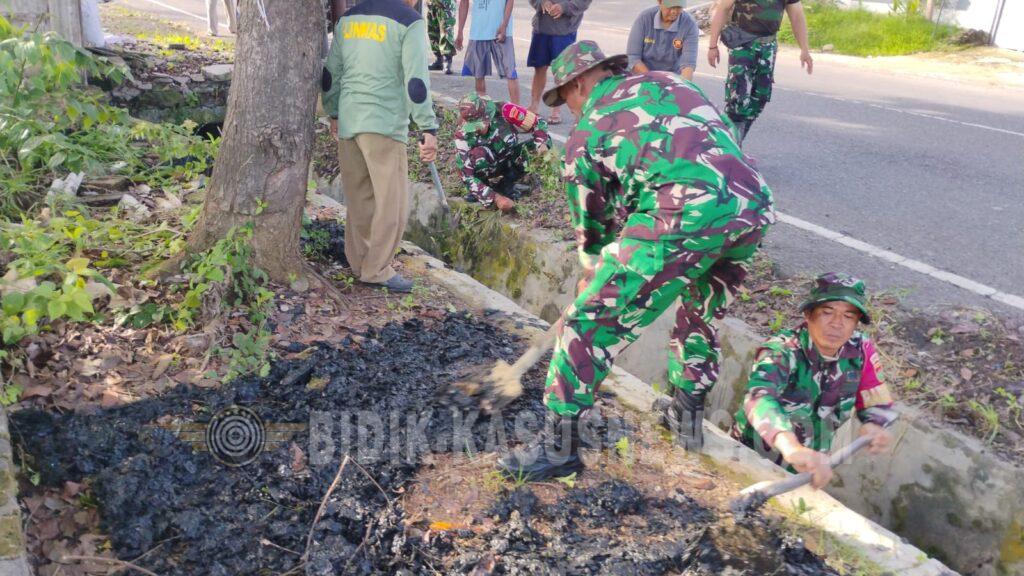 Kegiatan yang dimulai sejak pukul 08.00 WIB hingga sekitar pukul 11.30 WIB ini merupakan bagian dari program pembinaan teritorial Babinsa dalam rangka menjaga kebersihan lingkungan sekaligus mengantisipasi potensi banjir di musim penghujan yang kerap melanda wilayah tersebut pada akhir dan awal tahun.