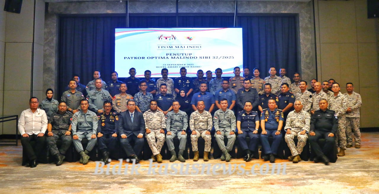 Johor Bahru, Bidik-kasusnews.com – Badan Keamanan Laut Republik Indonesia (Bakamla RI) bersama Agensi Penguatkuasaan Maritim Malaysia (APMM) resmi menutup pelaksanaan Patroli Terkoordinasi (Patkor) Optima Malindo ke-32 Tahun 2025 di Johor Bahru, Rabu (24/9/2025).