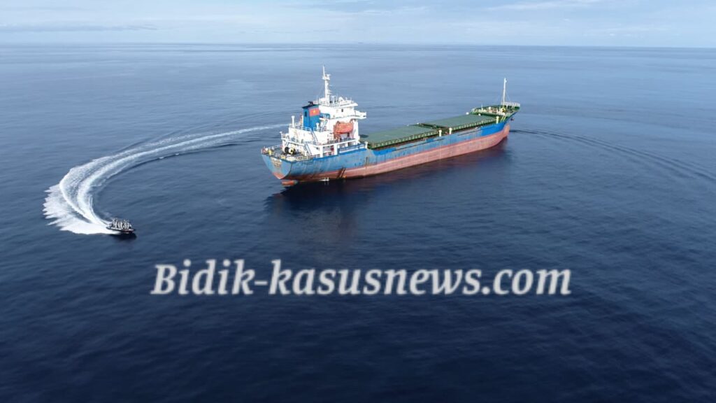 Selat Malaka | Bidik-kasusnews.com – Unsur patroli Bakamla RI, KN Pulau Dana-323 yang dikomandani oleh Letkol Bakamla Umar Dhani, melaksanakan pemeriksaan terhadap kapal asing MV Truong An 05 berbendera Vietnam saat sedang lego jangkar di perairan Indonesia, kemarin.