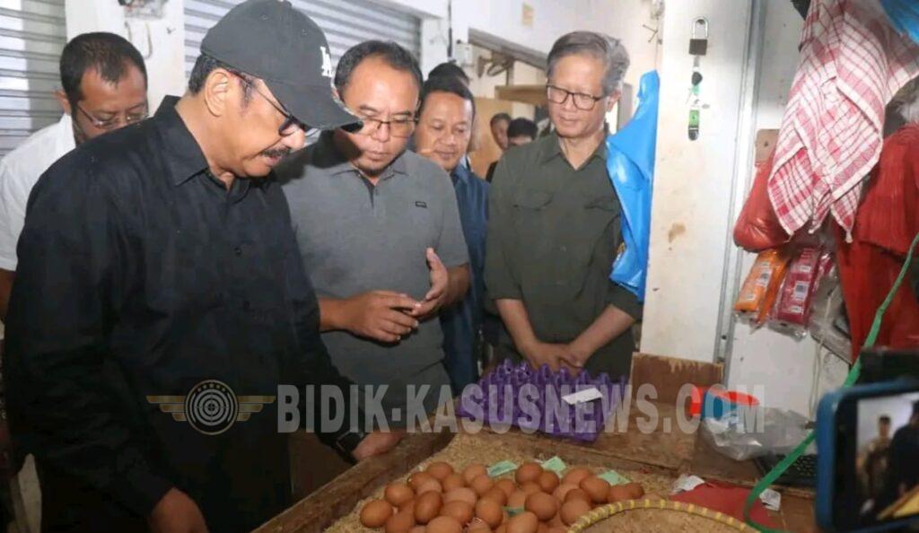 Bupati Sukabumi H. Asep Japar turun langsung meninjau ketersediaan dan harga pangan di Pasar Cibadak, Sabtu, 20 Desember 2025.