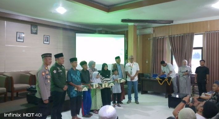 Selain layanan donor darah gratis, dalam kegiatan tersebut juga diberikan santunan kepada anak-anak yatim yang secara simbolis diserahkan oleh Kabag TU RSUD Jampangkulon H. Ramdan Nugraha.