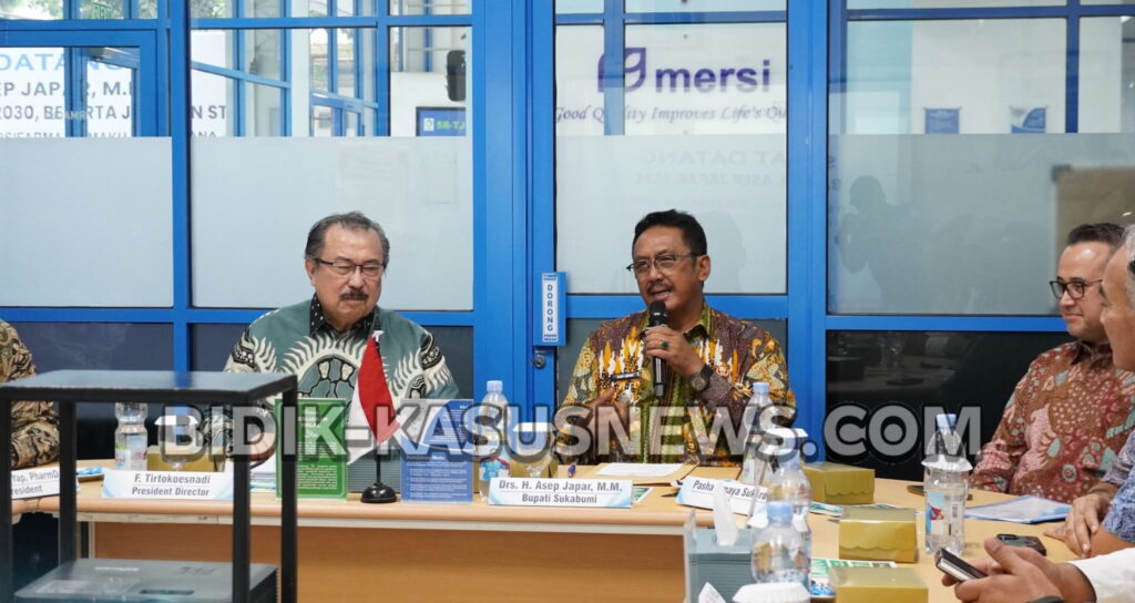 SUKABUMI-BIDIK-KASUSNEWS.COM- Bupati Sukabumi H. Asep Japar mengunjungi PT Mersifarma Tirmaku Mercusana di Kecamatan Cikembar, Selasa (23/9/2025). Kunjungan ini menjadi ajang silaturahmi sekaligus diskusi tentang dunia usaha dan penyerapan tenaga kerja di Kabupaten Sukabumi.