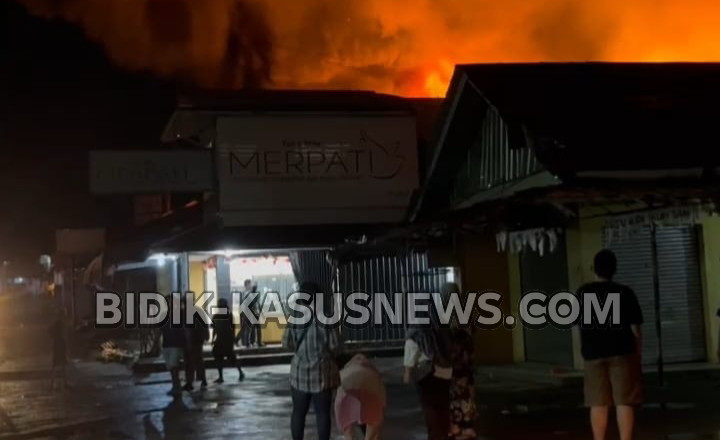 SUKABUMI-BIDIK-KASUSNEWS.COM- Pasar Surade, Kelurahan/Kecamatan Surade, Kabupaten Sukabumi, pada Rabu (17/9/2025) sekira pukul 01.00 WIB alami kebakaran hebat. Sedikitnya 15 kios terdampak. Saat peristiwa terjadi dan para pemiliknya berusaha menyelamatkan barang dagangannya. Akibat kebakaran tersebut pada pedangang ditaksir mengalami sekitar Rp 5 miliar. Satu unit gudang sembako Mandiri Jaya tidak luput dari musibah kebakaran tersebut. Peristiwa itu sempat menimbulkan kepanikan pemilik kios lainnya. Beruntung kobaran api tak merambat ke kios lainnya. Namun sedikitnya 15 kios terdampak, dan para pemiliknya berusaha menyelamatkan barang dagangannya. Empat unit mobil Damkar dari Pos I Palabuhanratu, Pos X Jampangkulon, Pos XI Surade, dan Pos XII Ciemas, yang tiba dilokasi kejadian sekitar pukul 01.15 WIB berhasil memadamkan api. Proses pemadaman berlangsung sekitar 4, 5 jam. Banyaknya material plastik dan barang mudah terbakar menyebabkan proses pendinginan berlangsung lama. Komandan Pos XI Damkar Surade, Widy Sukardi mengatakan, sekitar pukul 01.00 WIB titik api sudah membesar dari dalam gudang Sembako. Sementara penyebab kebakaran masih dalam penyelidikan. ” Kami belum bisa memastikan penyebabnya, ” ujar Widy kepada BIDIK-KASUSNEWS.COM. Dikonfirmasi di lokasi terjadi pemilik gedung sembako, H. Supardi ( 41 ) menuturkan, musibah terjadi pada pukul 20.30 WIB dirinya sempat datang ke gudang sembako untuk memastikan keamanan gudang sembako miliknya. ”Saya rutin setiap malam selalu memeriksa ke sini. Dan listrik di gudang ini setiap malampun selalu saya matikan sebelum pergi ke acara pengajian saya pun sempat datang kesini, ” ujarnya. (Dicky)