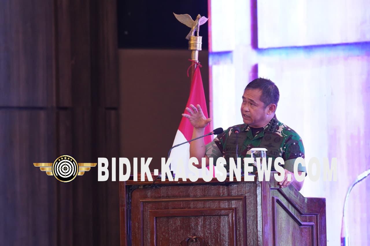 BANYUMAS, BIDIK-KASUSNEWS.COM — Kepala Staf Angkatan Darat (Kasad) Jenderal TNI Maruli Simanjuntak, M.Sc., menegaskan bahwa ketahanan bangsa tidak hanya bertumpu pada kekuatan fisik militer, tetapi juga pada kekuatan mental serta ideologi masyarakat sebagai benteng pertahanan nonfisik. Penegasan itu disampaikan saat menutup Apel Komandan Satuan Komando Kewilayahan (Dansatkowil) Terpusat Tahun 2025 di Kabupaten Banyumas, Jawa Tengah, Jumat (14/11/2025). Apel yang berlangsung selama dua hari, 13–14 November 2025, ini mengusung tema “Kesiapan Satuan Komando Kewilayahan Dalam Melaksanakan Pembinaan Teritorial Guna Mendukung Sishankamrata.” Sebanyak 446 pejabat Dansatkowil dari seluruh Indonesia hadir untuk memperdalam tugas pembinaan teritorial serta memperkuat sinergi pertahanan. Kasad Tekankan Pentingnya Kekuatan Nonfisik Dalam arahannya, Jenderal Maruli menyampaikan bahwa TNI AD harus terus memperkuat kultur organisasi melalui pemeliharaan dua aspek kekuatan: fisik dan nonfisik. Pembaruan pemikiran dan inovasi, kata dia, menjadi kebutuhan penting seiring perkembangan zaman yang semakin kompleks. “Kita perlu terus meng-update potensi pertahanan dengan mengikuti dinamika zaman. Diskusi rutin dan pemikiran terbuka akan melahirkan ide-ide baru yang relevan dengan tantangan yang kita hadapi,” ujarnya. Kasad juga menegaskan bahwa elemen nonfisik, seperti pembinaan kesadaran berbangsa dan bernegara, menjadi kunci dalam memperkuat ketahanan mental masyarakat. Melalui optimalisasi peran Dansatkowil, berbagai potensi ancaman terhadap ideologi bangsa dapat ditekan sejak dini. “Hayati dan jalankan tanggung jawab kita dengan sungguh-sungguh. Bekal ilmu dari Apel ini harus diterapkan di lapangan agar TNI AD semakin siap menjaga bangsa dan negara,” tegasnya. Materi Strategis dari Berbagai Tokoh Nasional Selama kegiatan, para Dansatkowil mendapatkan pemaparan dari berbagai pejabat dan tokoh nasional yang membahas isu strategis pertahanan, pembangunan wilayah, hingga pengelolaan sumber daya nasional. Di antaranya Gubernur Jawa Tengah, Kepala Staf Umum TNI mewakili Panglima TNI, Kepala BIN, Wamen ATR/BPN, Dirjen SDA Kementerian PUPR, Dirjen Perkebunan Kementan, Dirjen Lahan dan Irigasi Kementan, Danpusterad, serta pejabat utama Mabesad. Apel Dansatkowil 2025 ditutup dengan penegasan komitmen bersama untuk memperkuat pembinaan teritorial yang adaptif, modern, dan sesuai kebutuhan pertahanan negara. (Agus)