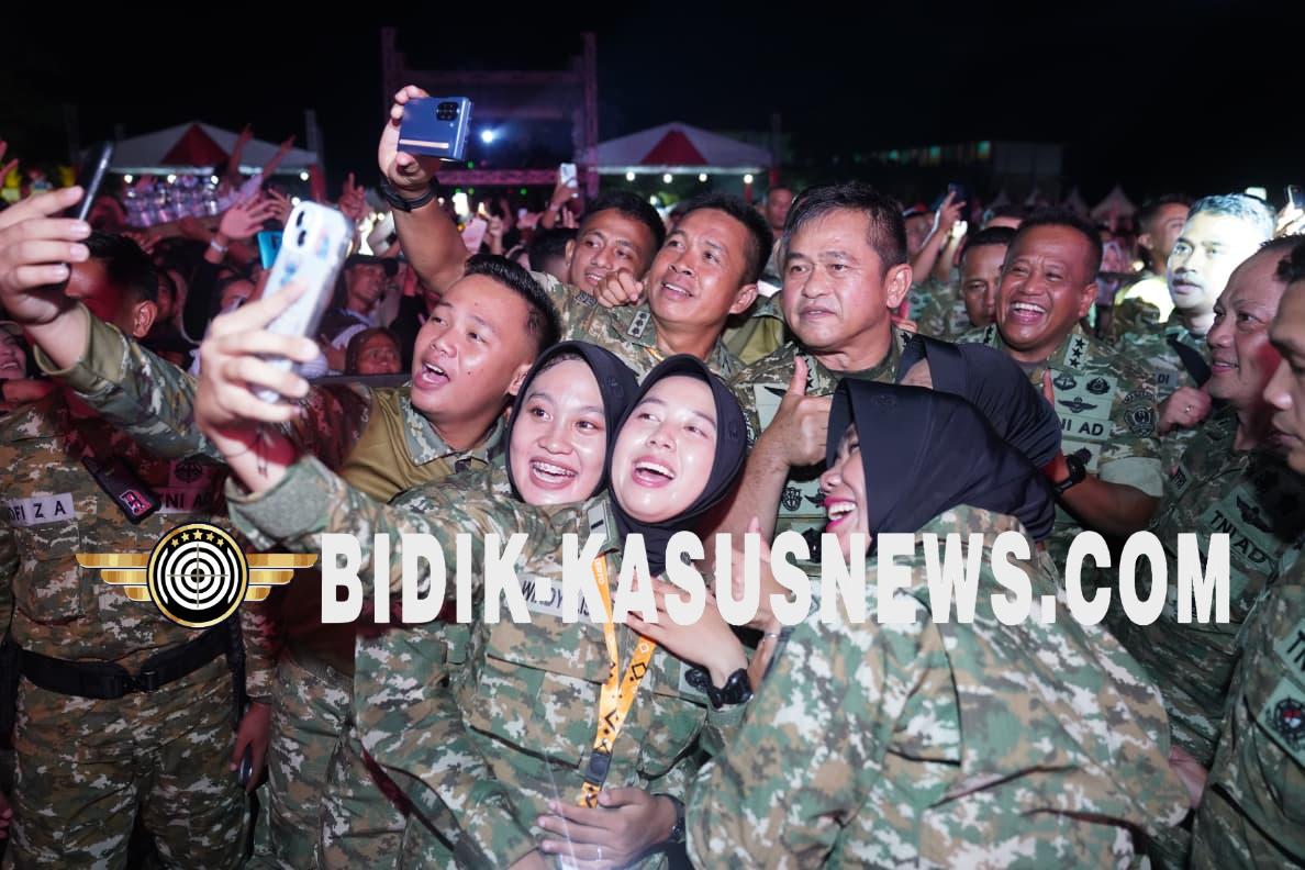 BANYUMAS, BIDIK-KASUSNEWS.COM — Setelah meresmikan Pompa Hidram di Kecamatan Rawalo, Kepala Staf Angkatan Darat (Kasad) Jenderal TNI Maruli Simanjuntak, M.Sc., menghadiri Pesta Rakyat yang digelar di wilayah tersebut, Kamis (13/11/2025). Kehadiran Kasad sekaligus menjadi momen kebersamaan antara TNI AD, masyarakat Banyumas, dan peserta Apel Komandan Satuan Komando Kewilayahan (Dansatkowil) Terpusat Tahun 2025. Banyumas Dipilih sebagai Lokasi Apel Dansatkowil 2025 Dalam sambutannya, Kasad menjelaskan bahwa Kabupaten Banyumas dipilih sebagai lokasi Apel Dansatkowil 2025 karena menjadi daerah pertama yang menjalankan program Manunggal Air, sebuah inisiatif penyediaan air bersih untuk masyarakat. Di wilayah ini, terdapat 73 titik sumber air yang telah dikembangkan dan dimanfaatkan secara langsung oleh warga. Tak hanya itu, Banyumas juga menjadi daerah prioritas untuk program pengairan persawahan dan pembangunan rumah tidak layak huni (RTLH). Menurut Kasad, keberhasilan sejumlah program tersebut membuat Banyumas layak dijadikan model atau contoh bagi daerah lain. “Kami di TNI AD akan terus menambah dan memperluas program di Banyumas bersama Gubernur Jawa Tengah. Kami berharap wilayah ini benar-benar menjadi percontohan nasional,” tegasnya. Ajak Pemuda Bangun Daerah Kasad juga mengajak pemuda dan pemudi Banyumas untuk turut berperan aktif membangun daerah. Ia meyakini bahwa berbagai program strategis yang sedang berjalan akan menunjukkan hasil nyata dalam dua hingga tiga tahun mendatang. “Bergembiralah malam ini untuk menyambut kegiatan yang padat besok. Nikmati kebersamaan dalam Pesta Rakyat, karena pembangunan Banyumas membutuhkan semangat kita bersama,” ujar Kasad. Pesta Rakyat Meriah, Warga Membludak Pesta Rakyat Rawalo berlangsung meriah dengan kehadiran Wakasad Letjen TNI Muhammad Saleh Mustafa, para pejabat TNI AD, serta hiburan dari artis Nella Kharisma dan NDX yang berhasil menyedot perhatian warga. Antusiasme masyarakat semakin terasa dengan hadirnya puluhan pelaku UMKM dari Kecamatan Rawalo yang turut meramaikan acara. Gelaran ini menjadi ruang silaturahmi sekaligus bentuk kedekatan TNI AD dengan masyarakat, sebelum rangkaian Apel Dansatkowil kembali berlanjut pada hari berikutnya. (Agus)