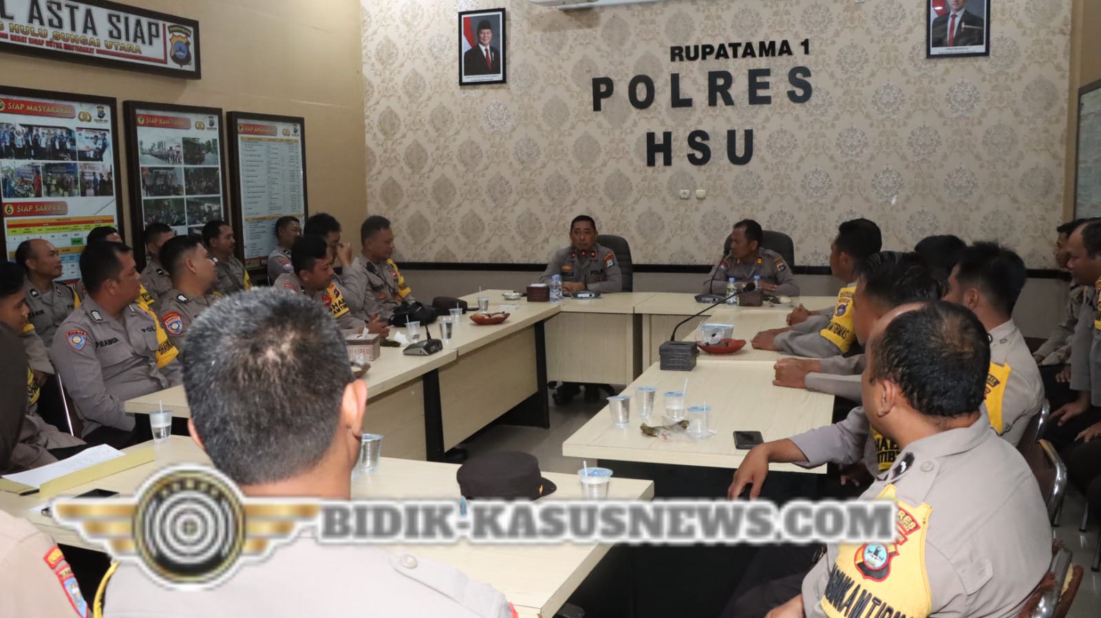 HSU, Bidik-kasusnews.com — Dalam upaya meningkatkan profesionalisme dan efektivitas pelaksanaan tugas di lapangan, Polres Hulu Sungai Utara (HSU) menggelar kegiatan Analisis dan Evaluasi (Anev) Kinerja Bhabinkamtibmas, yang berlangsung di Aula Rupatama 1 Polres HSU, Kamis (21/10/2025) pagi. Kegiatan dimulai pukul 09.30 Wita dan dipimpin langsung oleh Waka Polres HSU Kompol Sony Fratago Lumban Gaol, S.E., M.M., serta dihadiri oleh Kasat Binmas, Kanit Bhabinkamtibmas, dan seluruh personel Bhabinkamtibmas jajaran Polres HSU. Suasana kegiatan berlangsung tertib, interaktif, dan penuh semangat. Dalam arahannya, Kompol Sony menegaskan bahwa Bhabinkamtibmas memiliki peran strategis sebagai ujung tombak Polri di tengah masyarakat. “Bhabinkamtibmas adalah garda terdepan Polri yang langsung bersentuhan dengan warga. Profesionalisme, kemampuan komunikasi, dan kepekaan sosial menjadi kunci dalam melayani masyarakat dengan baik,” ujar Kompol Sony. Anev tersebut menjadi sarana untuk mengevaluasi capaian program kerja, menilai efektivitas pelaksanaan tugas di lapangan, serta menyusun langkah strategis ke depan. Dalam kegiatan ini, dibahas pula sejumlah inovasi dan pendekatan humanis yang dapat diterapkan untuk memelihara keamanan dan ketertiban masyarakat (Kamtibmas) di wilayah hukum Polres HSU. Sementara itu, Kasi Humas Polres HSU IPTU Asep Hudzainur, mewakili Kapolres HSU AKBP Agus Nuryanto, S.I.K., M.Si., menyampaikan bahwa kegiatan ini merupakan bagian dari komitmen Polres HSU dalam melakukan pembinaan dan pengawasan terhadap seluruh Bhabinkamtibmas. “Kapolres HSU menekankan agar seluruh personel terus berinovasi dan memperkuat pendekatan humanis kepada masyarakat. Bhabinkamtibmas harus hadir sebagai sahabat warga dan problem solver di setiap lingkungan binaannya,” ungkap IPTU Asep. Ia menambahkan, kegiatan Anev Kinerja Bhabinkamtibmas ini akan dilakukan secara berkala dan berkesinambungan guna memastikan peningkatan kualitas SDM Polri di lapangan. “Melalui forum seperti ini, diharapkan muncul semangat baru dalam menjaga situasi Kamtibmas yang aman, tertib, dan kondusif di Kabupaten Hulu Sungai Utara,” lanjutnya. Kegiatan Anev ditutup dengan sesi diskusi dan tanya jawab, yang diikuti antusias oleh seluruh peserta. Acara berjalan aman, tertib, dan lancar, menggambarkan semangat kebersamaan dan komitmen kuat jajaran Polres HSU dalam mewujudkan Polri yang Presisi, humanis, dan berorientasi pada pelayanan publik. ( Agus)