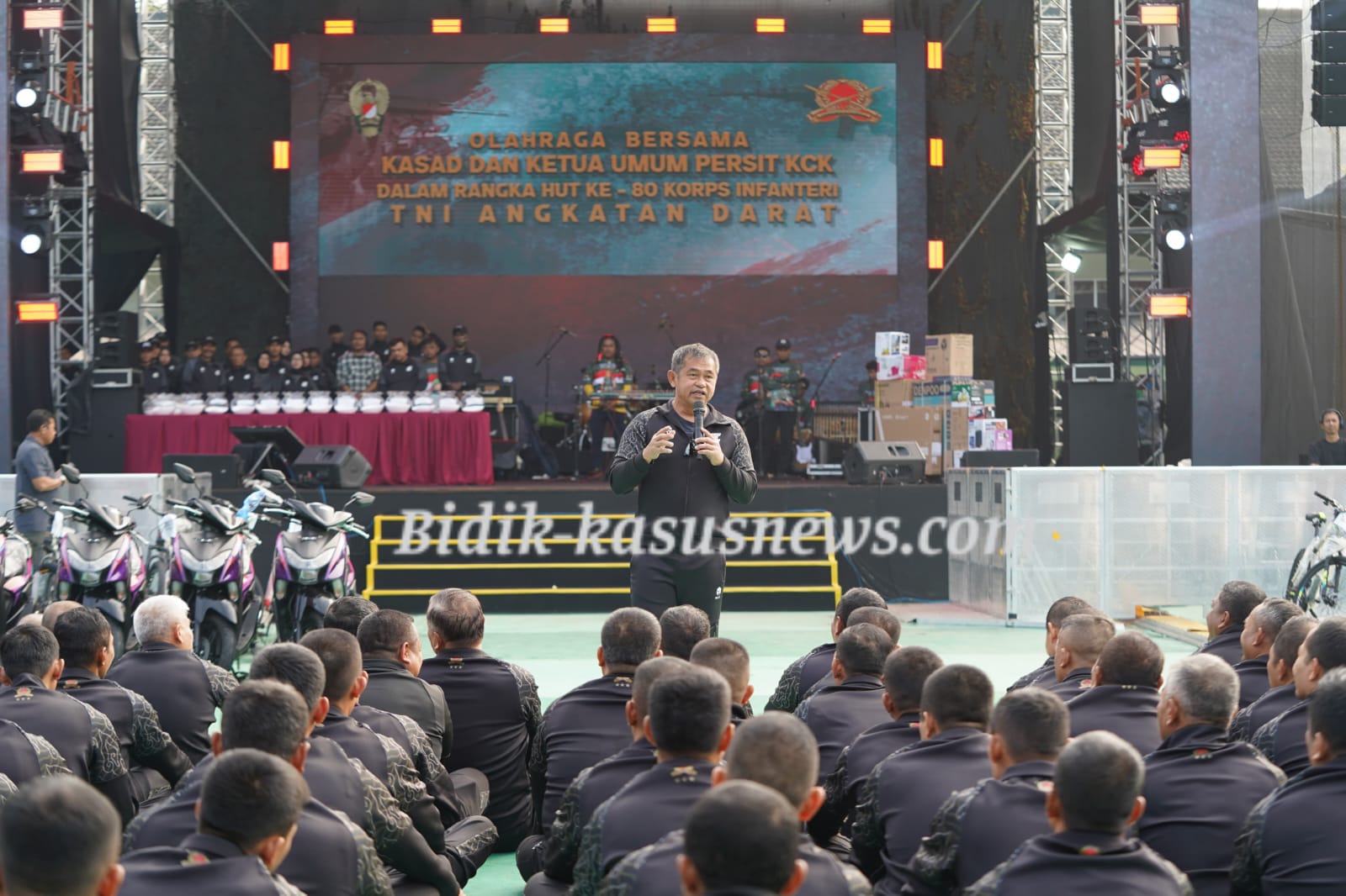 BANDUNG, BIDIK-KASUSNEWS.COM– Kepala Staf Angkatan Darat (Kasad) Jenderal TNI Maruli Simanjuntak, M.Sc., mengajak seluruh prajurit TNI Angkatan Darat untuk terus menjaga kekompakan dan solidaritas sebagai modal utama dalam membangun satuan yang tangguh dan meningkatkan kesejahteraan seluruh anggota. Ajakan tersebut disampaikan Kasad saat olahraga bersama prajurit, PNS, dan Persit Kartika Chandra Kirana dalam rangka peringatan HUT ke-80 Korps Infanteri di Markas Pussenif, Bandung, Jawa Barat, Jumat (10/10/2025). “Yang penting, tentara itu harus kompak. Kalau kita kompak, pasti bisa bersama-sama mengangkat derajat Angkatan Darat, khususnya Infanteri. Mulai dari peningkatan pendidikan, fasilitas, hingga kesejahteraan prajurit, semuanya akan lebih mudah dicapai,” ujar Kasad Jenderal Maruli di hadapan prajurit. Kasad juga menegaskan bahwa pimpinan TNI AD terus berkomitmen meningkatkan kesejahteraan prajurit melalui langkah-langkah nyata. Salah satunya, dengan merenovasi lebih dari 5.000 unit rumah dinas serta 400 Koramil di berbagai wilayah Indonesia. Selain itu, TNI AD juga mendorong prajurit untuk memiliki rumah pribadi melalui program Badan Pengelola Tabungan Wajib Perumahan (BP-TWP) yang menawarkan bunga rendah, kemudahan administrasi, dan fasilitas pembiayaan yang terjangkau. Menurut Jenderal Maruli, perhatian terhadap kesejahteraan prajurit merupakan tanggung jawab moral pimpinan, sekaligus bukti bahwa TNI AD tidak hanya fokus pada peningkatan kemampuan tempur, tetapi juga pada kualitas hidup anggota dan keluarganya. Dalam kesempatan yang sama, Kasad mengapresiasi olahraga bersama dan syukuran HUT ke-80 Korps Infanteri sebagai wujud kebersamaan dan pembinaan yang positif. Ia berharap momen ini mempererat hubungan antara pimpinan, prajurit, dan keluarga besar TNI AD. “Kegiatan seperti ini penting untuk menumbuhkan semangat juang, rasa bangga, dan solidaritas di antara kita. Karena kekuatan utama TNI AD ada pada kebersamaan dan semangat pengabdian,” tambahnya. Sebagai bagian dari peringatan HUT ke-80 Korps Infanteri, Pussenif juga menggelar berbagai kegiatan sosial, di antaranya khitanan massal untuk 1.000 anak, pembagian 2.000 paket sembako, serta panggung hiburan rakyat di Lapangan Pussenif pada Kamis malam (9/10/2025). Acara ini turut dihadiri oleh Kasad Jenderal TNI Maruli Simanjuntak, pejabat utama TNI AD, pemerintah daerah Jawa Barat, sesepuh TNI, serta masyarakat umum yang ikut merayakan semangat juang Infanteri dalam pengabdian kepada bangsa dan negara. ( Agus )