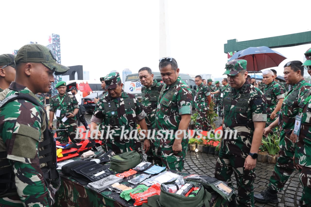Jakarta | Bidik-kasusnews.com – Pusat Teritorial Angkatan Darat (Pusterad) ikut memeriahkan gelaran TNI Fair 2025 dalam rangka menyambut Hari Ulang Tahun (HUT) ke-80 TNI, yang berlangsung di kawasan Monumen Nasional (Monas), Jakarta Pusat, Sabtu (20/9/2025). Komandan Pusterad Letjen TNI Mochamad Syafei Kasno bersama Pejabat Utama (PJU) Pusterad hadir langsung meninjau stan Pusterad sekaligus berkeliling ke stan satuan TNI lainnya. Kehadiran mereka disambut antusias pengunjung yang memadati area pameran sejak pagi. Stan Pusterad menampilkan beragam produk UMKM berupa aneka makanan dan minuman khas daerah, kerajinan tangan seperti tas ransel, hingga kain batik Cirebon. Tidak hanya itu, Pusterad juga memperkenalkan inovasi teknologi seperti mesin pembuat pupuk cair MPC-37, sepeda motor listrik berbagai tipe, serta rumah modular ramah lingkungan. Partisipasi ini menjadi bukti nyata peran Pusterad dalam mendukung pemberdayaan UMKM, menggali potensi daerah, serta menghadirkan teknologi inovatif yang sejalan dengan tema HUT ke-80 TNI: “TNI Prima – TNI Rakyat – Indonesia Maju.” Stan Pusterad pun menjadi salah satu tujuan favorit masyarakat. Banyak pengunjung terlihat antusias mencicipi produk kuliner UMKM, mencoba inovasi teknologi yang ditampilkan, sekaligus berinteraksi langsung dengan prajurit TNI AD. Dengan keikutsertaannya, Pusterad tidak hanya menegaskan kontribusinya dalam membangun kemanunggalan TNI dengan rakyat, tetapi juga menghadirkan ruang edukasi dan inspirasi bagi generasi muda tentang pentingnya kemandirian bangsa di bidang ekonomi, sosial, dan teknologi. ( Agus)