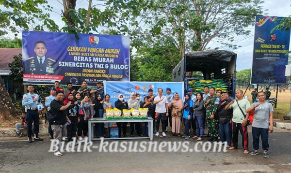 Makassar | Bidik-kasusnews.com – Lanud Sultan Hasanuddin bekerja sama dengan Perum Bulog menggelar Gerakan Pangan Murah di sela kegiatan Car Free Day (CFD) di Lapangan Angkasa Lanud Sultan Hasanuddin, Minggu (14/9/2025). Kegiatan ini disambut antusias warga yang hadir untuk berolahraga pagi sekaligus berbelanja kebutuhan pokok dengan harga terjangkau. Pada kesempatan tersebut, panitia menyediakan 3 ton beras SPHP Bulog yang dijual lebih murah dibanding harga pasaran. Beras tersebut langsung diserbu masyarakat yang ingin memanfaatkan momen untuk mengurangi beban pengeluaran rumah tangga di tengah dinamika harga pangan. Komandan Lanud Sultan Hasanuddin, Marsma TNI Arifaini Nur Dwiyanto, M.Han., menegaskan bahwa kegiatan ini merupakan bentuk kepedulian TNI Angkatan Udara dalam mendukung program pemerintah menjaga stabilitas pangan sekaligus memperkuat daya beli masyarakat. “Kami ingin Car Free Day tidak hanya menjadi sarana olahraga bersama, tetapi juga memberi manfaat nyata. Melalui Gerakan Pangan Murah ini, masyarakat bisa mendapatkan beras dengan harga lebih terjangkau sehingga ikut membantu menekan gejolak harga,” ujar Danlanud. Masyarakat menyambut positif kegiatan tersebut. Selain bisa menikmati suasana CFD, warga juga merasa terbantu dengan adanya akses pangan murah yang bisa langsung mereka bawa pulang. Gerakan Pangan Murah ini menjadi bukti nyata sinergi TNI AU dan Bulog dalam menghadirkan manfaat langsung bagi masyarakat sekaligus mempererat kedekatan TNI dengan warga sekitar. ( Agus)
