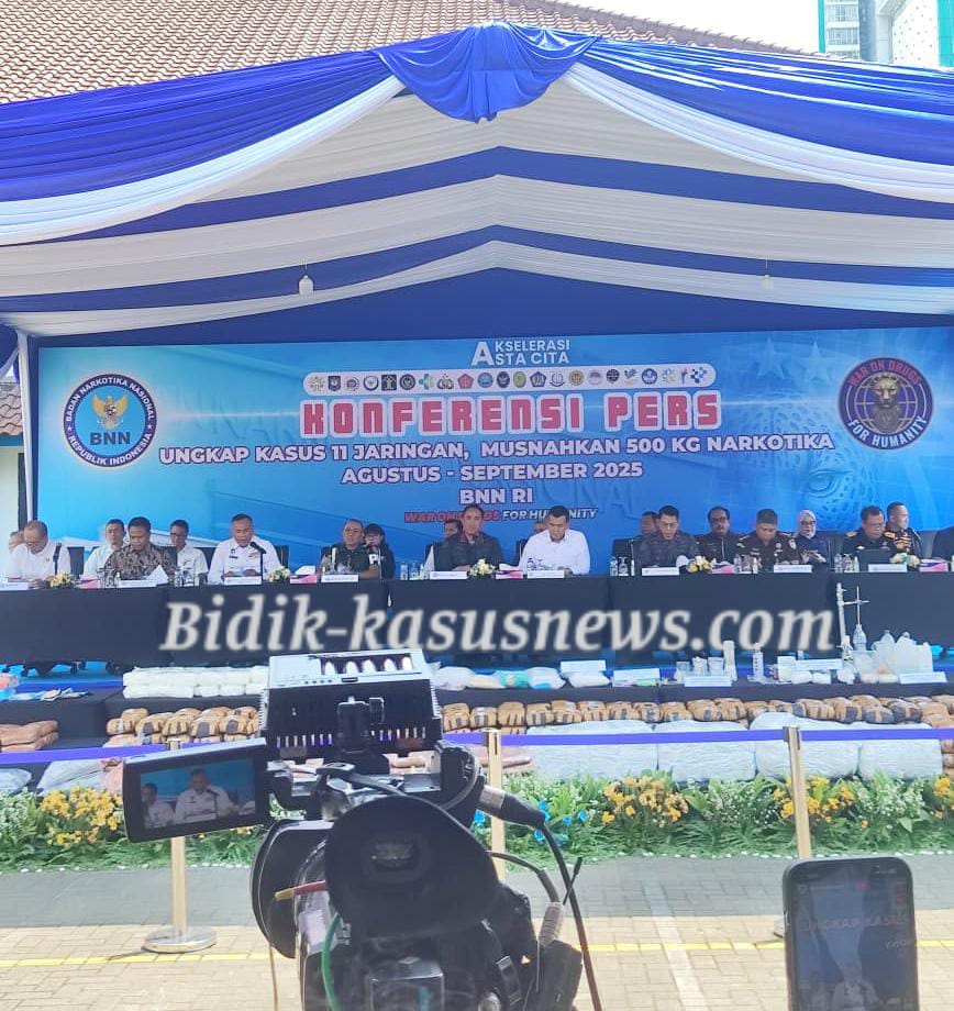 Jakarta | Bidik-kasusnews.com – Badan Narkotika Nasional (BNN) RI mencetak gebrakan besar dalam perang melawan narkoba. Hanya dalam kurun waktu 18 hari sejak dipimpin Komjen Pol Suyudi Ario Seto, S.H., M.Si., BNN berhasil melumpuhkan 11 jaringan narkotika di berbagai daerah strategis Indonesia. Pengungkapan ini dilakukan melalui operasi terpadu BNN RI bersama BNN Provinsi dan stakeholder terkait. Dari hasil operasi, 53 tersangka berhasil diamankan, termasuk dua warga negara asing (WNA). Barang Bukti: 503 Kilogram Lebih Narkotika Dalam periode Agustus hingga September 2025, BNN mengamankan barang bukti narkotika dengan total 503.715,65 gram. Rinciannya antara lain: Sabu: 60.226,71 gram Sabu cair: 352 mililiter Ganja: 441.376,17 gram Ekstasi: 2.134 butir atau 791,77 gram Kokain: 1.321 gram Ganja sintetik: 80 ml Bahan kimia padat: 4.674,37 gram Bahan kimia cair: 5.483 ml Selain itu, BNN juga membongkar laboratorium rumahan (clandestine lab) sabu, serta menyita sejumlah vape mengandung narkotika. Kasus Tindak Pidana Pencucian Uang Tidak hanya memberantas narkoba, BNN juga mengungkap tindak pidana pencucian uang (TPPU) jaringan Sutarnedi dkk di Palembang, Sumatera Selatan. Dari bisnis haram ini, aset senilai lebih dari Rp52,7 miliar berhasil disita. Dampak: 1,1 Juta Jiwa Terselamatkan Menurut Komjen Pol Suyudi, langkah BNN telah menyelamatkan lebih dari 1,1 juta jiwa anak bangsa dari bahaya narkoba, sekaligus mencegah kerugian ekonomi negara hingga Rp130 miliar. “Angka ini bukan hanya sekadar barang bukti, melainkan cermin dari besarnya ancaman yang dihadapi bangsa. Perang melawan narkoba adalah perjuangan kolektif yang harus didukung seluruh elemen masyarakat,” tegasnya. Pemusnahan Barang Bukti Sebagai bukti transparansi, BNN melakukan pemusnahan barang bukti di Lapangan Parkir BNN, Jakarta, serta di PT Jasa Medivest, Cikarang. Barang bukti yang dimusnahkan antara lain: Sabu: 48.794,78 gram Ganja: 387.656,08 gram Ekstasi: 2.086 butir Kokain: 1.310,40 gram Bahan kimia prekursor: 4.638,65 gram dan 5.237 ml Kasus-kasus tersebut ditangani BNN RI bersama BNNP dari Sumatera Selatan, Kepri, Riau, Lampung, Jawa Barat, Jawa Timur, Bali, Kalimantan Tengah, Kalimantan Utara, hingga Sulawesi Selatan. Pendekatan Humanis: Rehabilitasi dan Desa Bersinar Selain pendekatan represif, BNN juga memperkuat program rehabilitasi bagi penyalahguna, serta mengembangkan Desa Bersinar (Bersih Narkoba) sebagai upaya pencegahan di tingkat masyarakat. “BNN akan tegas kepada sindikat, humanis kepada korban, dan transparan kepada publik. Mari bersama wujudkan Indonesia Bersinar – Bersih Narkoba,” pungkas Kepala BNN RI. ( Agus)