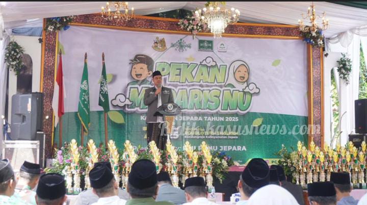 JATENG:Bidik-kasusnews.com Jepara – 7 September 2025 | Bupati Jepara H. Witiarso Utomo secara resmi membuka Pekan Madaris NU Tahun 2025 yang digelar oleh Rabithah Ma’ahid Islamiyah Nahdlatul Ulama (RMINU) PCNU Jepara di Madrasah Roudlotul Tholibin, Desa Bandungrejo, Kecamatan Kalinyamatan, Minggu (7/9/2025). Kegiatan ini diikuti oleh seluruh RMI NU MWCNU se-Kabupaten Jepara dan dihadiri jajaran Forkopimda, Sekretaris Daerah Ary Bachtiar, Kepala Kantor Kemenag Jepara H. Akhsan Muhyiddin, Rois Syuriah PCNU KH. Khayatun Abdullah Khadziq, Ketua Tanfidziyah PCNU Jepara Charis Rohman, serta Ketua PC RMI NU KH. Saifur Rijal Aqib. Pendidikan Jadi Kunci Jepara “MULUS” Dalam sambutannya, Bupati yang akrab disapa Mas Wiwit itu menegaskan pentingnya Pekan Madaris NU sebagai upaya meningkatkan kualitas sumber daya manusia di Jepara. > “Ajang ini menjadi semangat anak-anak dalam menempuh pendidikan, sehingga SDM di Jepara semakin meningkat. Lomba ini bisa menjadi langkah strategis untuk mewujudkan Jepara yang makmur, unggul, lestari, dan religius (MULUS),” ungkapnya. Mas Wiwit juga berpesan kepada para wali santri agar lebih memperhatikan pergaulan anak-anak, khususnya dari dampak negatif media sosial. Ia menilai penerapan enam hari sekolah merupakan langkah tepat untuk menekan penggunaan gawai yang berlebihan sekaligus meningkatkan konsentrasi belajar. RMI Jepara Jadi Contoh di Jateng Ketua PC RMI NU Jepara, KH. Saifur Rijal Aqib, menambahkan bahwa kegiatan ini bukan sekadar ajang lomba, melainkan upaya meningkatkan kualitas pendidikan madrasah di bawah naungan NU. > “RMI Kabupaten Jepara menjadi pilot project RMI se-Jawa Tengah. Dari sini, kami ingin melahirkan generasi yang unggul dalam ilmu pengetahuan sekaligus berkarakter religius,” jelasnya. Hadirnya jajaran pengurus PCNU Jepara, termasuk Rois Syuriah KH. Khayatun Abdullah Khadziq, menunjukkan komitmen NU dalam mendukung sinergi dengan pemerintah daerah untuk memperkuat pendidikan berbasis religius di Kabupaten Jepara. Menuju Tingkat Provinsi Sebagai tindak lanjut, Pekan Madaris NU tingkat Provinsi Jawa Tengah akan dilaksanakan pada 11–12 Oktober 2025. Kontingen terbaik dari Jepara akan dipersiapkan untuk membawa nama baik daerah di ajang yang lebih tinggi.(Wely-jateng) Sumber: Diskominfo jepara