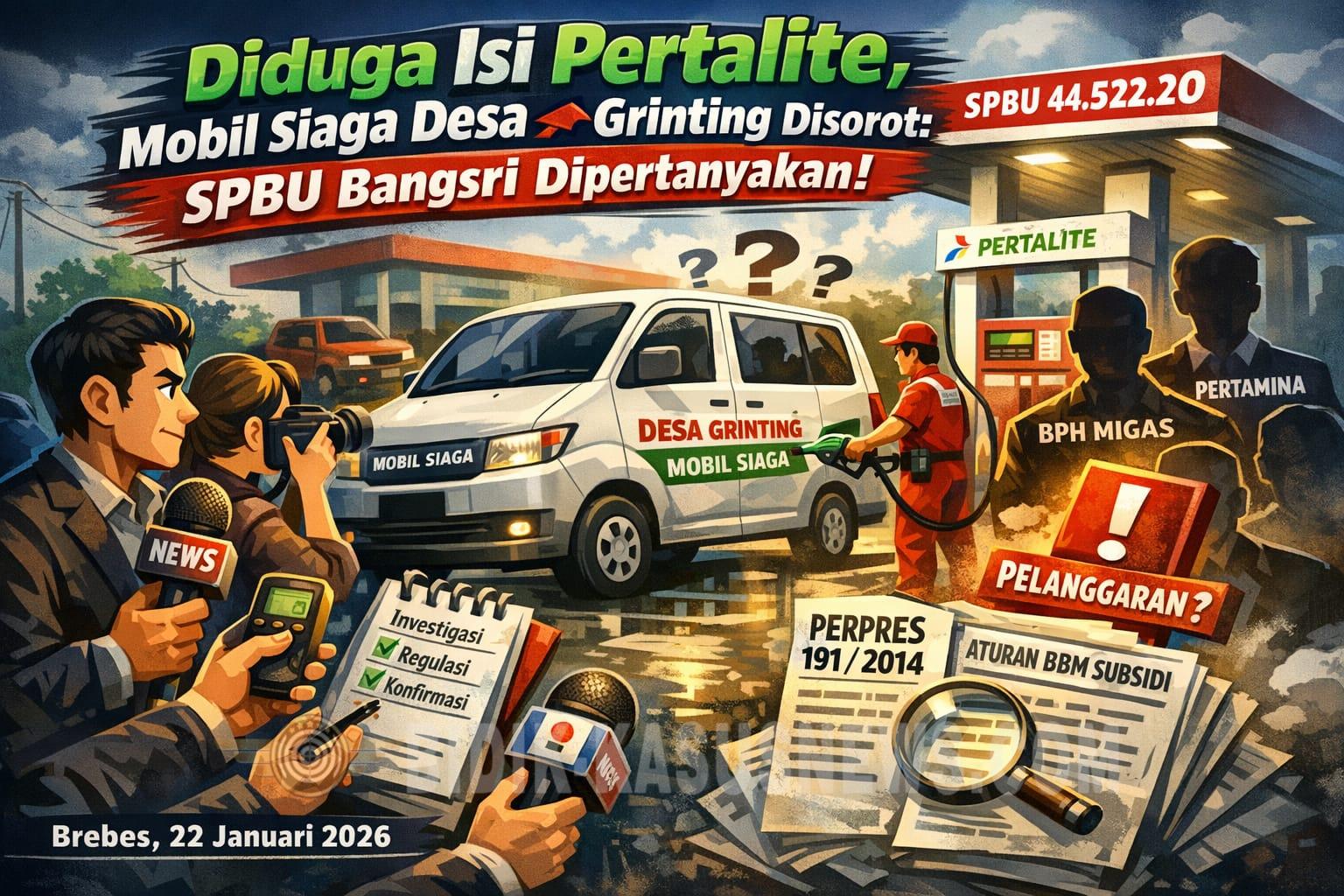 BREBES | BIDIK-KASUSNEWS.COM – Dugaan pengisian Bahan Bakar Minyak (BBM) bersubsidi jenis Pertalite oleh mobil siaga Desa Grinting, Kecamatan Bulakamba, Kabupaten Brebes, di SPBU 44.522.20 Bangsri–Bulakamba–Brebes, memicu perhatian publik dan menjadi bahan diskusi terkait ketepatan sasaran subsidi energi. Temuan tersebut diperoleh tim investigasi Media Bidik-Kasus saat melakukan pemantauan lapangan, Kamis (22/1/2026). Pihak media kemudian melakukan konfirmasi sebagai bagian dari tugas jurnalistik dan fungsi kontrol sosial terhadap penggunaan subsidi negara. Operator: Mobil Siaga untuk Layanan Warga, BBM Dibebankan ke Pengguna Saat dimintai keterangan, operator mobil siaga Desa Grinting menjelaskan bahwa kendaraan tersebut digunakan untuk kepentingan pelayanan masyarakat. Salah satunya, mengantar warga bernama Sunardi, RT 12 RW 02 Desa Grinting, menuju RS Permata Insani Brebes. Operator juga menyampaikan bahwa biaya operasional BBM mobil siaga desa tidak sepenuhnya ditanggung pemerintah desa, melainkan dibebankan kepada warga pengguna layanan. Menurutnya, kondisi ekonomi masyarakat yang sebagian besar tergolong tidak mampu menjadi alasan penggunaan BBM non-subsidi seperti Pertamax dinilai memberatkan. “Karena pertimbangan itu, selama ini mobil siaga desa menggunakan BBM jenis Pertalite,” ujar operator, seraya menegaskan penggunaan tersebut dilakukan semata untuk pelayanan sosial warga. Niat Baik Tak Menghapus Kewajiban Taat Aturan Meski alasan kemanusiaan menjadi latar penggunaan mobil siaga, persoalan tidak berhenti pada niat baik. Mobil siaga desa merupakan kendaraan operasional pemerintahan desa yang umumnya bersumber dari anggaran negara atau daerah dan berstatus aset pemerintah. Artinya, penggunaan kendaraan tersebut—termasuk jenis BBM yang digunakan—semestinya mengikuti aturan yang berlaku, bukan berdasarkan kebiasaan di lapangan. Regulasi Subsidi Tegas, SPBU Wajib Waspada Merujuk pada Peraturan Presiden Nomor 191 Tahun 2014, Permen ESDM Nomor 37 Tahun 2022, serta ketentuan pengawasan BPH Migas, BBM bersubsidi diperuntukkan bagi konsumen tertentu dengan kriteria yang jelas dan mekanisme pengawasan yang ketat. Dalam konteks ini, kendaraan operasional pemerintahan—termasuk kendaraan desa—tidak otomatis masuk kategori penerima BBM bersubsidi, kecuali terdapat kebijakan khusus yang sah, tertulis, dan terverifikasi. Sorotan juga mengarah pada pihak SPBU, karena secara prinsip penyaluran BBM bersubsidi menuntut kehati-hatian dan kepatuhan terhadap ketentuan penjualan, termasuk memastikan BBM subsidi tidak keluar dari sasaran yang ditetapkan negara. Titik Kritis: Status Mobil Siaga, Verifikasi SPBU, dan Potensi Normalisasi Praktik Peristiwa ini memunculkan beberapa pertanyaan yang patut dievaluasi, di antaranya: 1. Apakah mobil siaga desa memiliki dasar hukum yang jelas untuk menggunakan Pertalite? 2. Bagaimana mekanisme verifikasi dan pengawasan di SPBU 44.522.20 Bangsri terhadap kendaraan yang mengisi BBM subsidi? 3. Apakah praktik serupa sudah berlangsung lama dan menjadi kebiasaan yang dinormalisasi atas nama pelayanan sosial? Jika tidak ada kejelasan kebijakan, praktik semacam ini dikhawatirkan membuka ruang penyimpangan dan berpotensi menggeser hak masyarakat kecil yang menjadi sasaran utama subsidi energi. Media Buka Ruang Hak Jawab Pemberitaan ini merupakan bagian dari fungsi pers sebagaimana diatur dalam Undang-Undang Nomor 40 Tahun 1999 tentang Pers, yakni menjalankan kontrol sosial, pengawasan publik, serta mendorong transparansi dan akuntabilitas layanan pemerintahan. Media Bidik-Kasumnews.com menegaskan bahwa berita ini disusun berdasarkan itikad baik, Kode Etik Jurnalistik, dan asas keberimbangan, serta membuka ruang hak jawab dan klarifikasi lanjutan kepada: • Pemerintah Desa Grinting • Pengelola SPBU 44.522.20 Bangsri • Instansi terkait seperti Dinas PMD, Pertamina, dan BPH Migas Hingga berita ini diterbitkan, belum ada keterangan resmi dari pihak berwenang mengenai dasar hukum penggunaan Pertalite oleh mobil siaga desa serta mekanisme pengawasan yang diterapkan di lapangan. Publik berhak mengetahui. Negara wajib hadir memastikan subsidi tepat sasaran, bukan berjalan di luar aturan meski berbalut alasan kemanusiaan. (Amin)