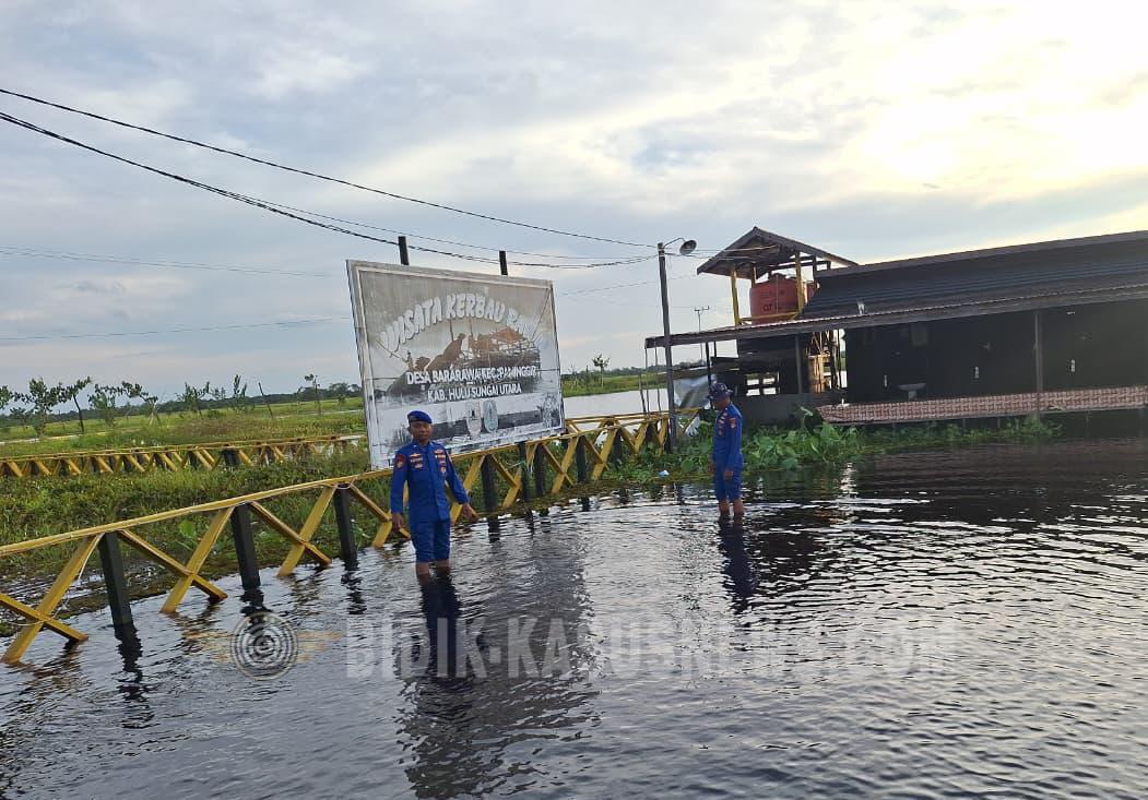 HSU | BIDIK-KASUSNEWS.COM – Satuan Polisi Air dan Udara (Satpolairud) Polres Hulu Sungai Utara (HSU) terus meningkatkan kewaspadaan dengan melaksanakan patroli dan pemantauan di kawasan wisata perairan. Salah satunya dilakukan di Tempat Wisata Desa Bararawa, Kecamatan Paminggir, pada Jumat (16/1/2026). Patroli yang dimulai sekitar pukul 14.00 WITA tersebut dipimpin oleh personel Satpolairud Polres HSU, yakni Bripda Yahya Aji P, Bripda Jurni, dan Bripda Andri Rocky. Kegiatan ini merupakan bagian dari upaya preventif kepolisian dalam menjaga keamanan dan ketertiban masyarakat (kamtibmas), khususnya di wilayah wisata perairan. Dalam pelaksanaannya, personel Satpolairud melakukan pemantauan langsung terhadap kondisi perairan serta aktivitas masyarakat dan pengunjung di sekitar lokasi wisata. Selain itu, petugas juga menyampaikan imbauan keselamatan kepada warga agar lebih berhati-hati saat beraktivitas di perairan, mengingat kondisi cuaca dan potensi risiko yang dapat terjadi sewaktu-waktu. Kasat Polairud Polres Hulu Sungai Utara menjelaskan bahwa patroli ini juga bertujuan untuk mengantisipasi kemungkinan terjadinya gangguan kamtibmas maupun kecelakaan air, terutama di tengah adanya genangan banjir di sebagian wilayah Desa Bararawa. “Dari hasil pemantauan di lapangan, memang terdapat genangan banjir di beberapa titik, namun secara umum situasi masih aman, terkendali, dan aktivitas masyarakat tetap berjalan normal. Tidak ditemukan kejadian menonjol selama kegiatan patroli berlangsung,” ujarnya. Kegiatan patroli berjalan dengan lancar dan kondusif hingga selesai. Satpolairud Polres HSU memastikan akan terus hadir di tengah masyarakat sebagai bentuk komitmen Polri dalam memberikan rasa aman, khususnya di kawasan perairan dan objek wisata. Selama kegiatan berlangsung, situasi terpantau aman dan terkendali, serta dokumentasi kegiatan telah dilaporkan sebagai bagian dari pertanggungjawaban pelaksanaan tugas. (Agus)