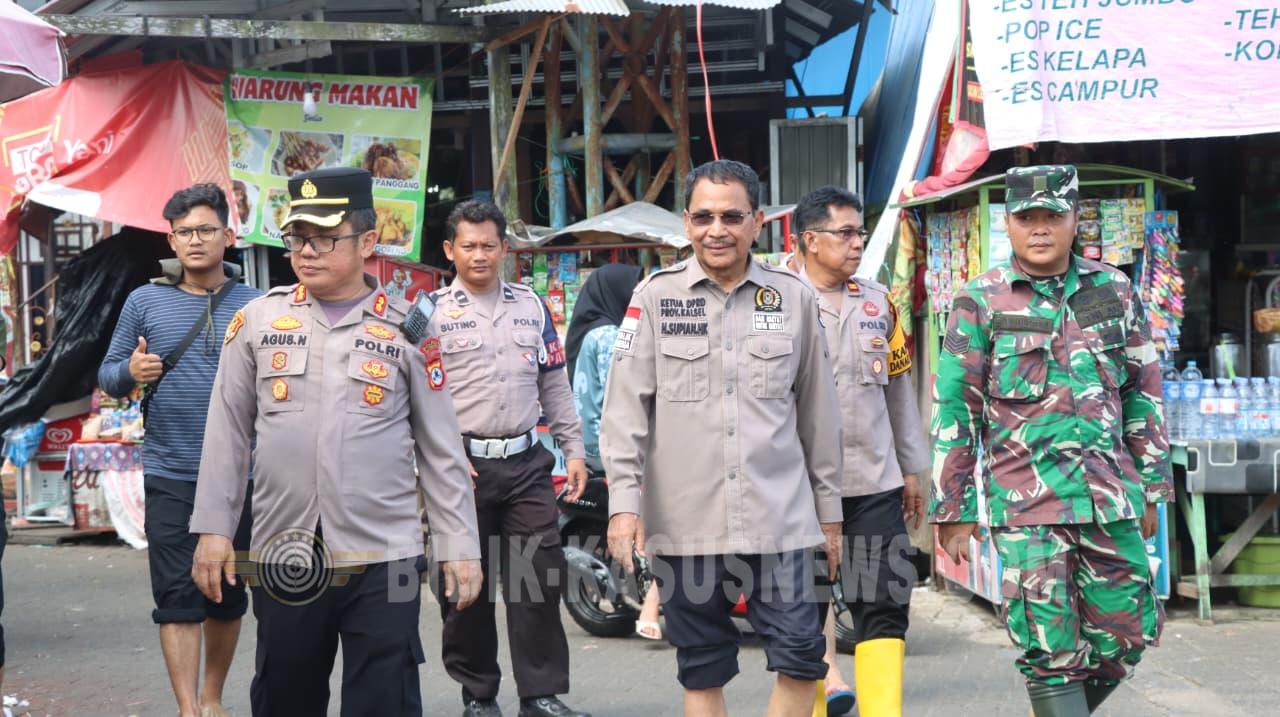 HSU | BIDIK-KASUSNEWS.COM — Ketua DPRD Provinsi Kalimantan Selatan, H. Supian HK, bersama Kapolres Hulu Sungai Utara AKBP Agus Nuryanto, S.I.K., M.Si., melakukan peninjauan langsung ke sejumlah wilayah terdampak banjir di Kabupaten Hulu Sungai Utara (HSU), Rabu (14/1/2026). Kegiatan yang berlangsung sejak pukul 13.00 hingga 15.30 WITA tersebut menjadi wujud kepedulian sekaligus komitmen bersama dalam memastikan kondisi keselamatan serta kesejahteraan masyarakat di tengah meningkatnya debit air sungai dalam beberapa waktu terakhir. Adapun lokasi yang dikunjungi meliputi Desa Rintisan, Kecamatan Danau Panggang, serta Desa Tampakang dan Desa Pal Batu, Kecamatan Paminggir. Di sejumlah titik tersebut, rombongan meninjau langsung kondisi permukiman warga, bantaran sungai, serta dampak genangan banjir yang merendam kawasan pemukiman. Turut mendampingi dalam kegiatan tersebut Kasat Polair Polres HSU IPTU Marwan, Kapolsek Danau Panggang IPTU Makmur, anggota Koramil 11 Danau Panggang, serta personel Sat Polair Polres HSU. Kehadiran unsur TNI dan Polri ini menunjukkan sinergi lintas sektor dalam upaya penanggulangan dan mitigasi bencana banjir di wilayah HSU. Selain melakukan pemantauan, jajaran kepolisian juga memberikan imbauan langsung kepada masyarakat, khususnya warga yang bermukim di bantaran sungai, agar tetap waspada terhadap potensi kenaikan debit air yang dapat terjadi sewaktu-waktu. Masyarakat diminta untuk mengutamakan keselamatan diri dan keluarga serta segera melapor apabila kondisi air menunjukkan tanda-tanda membahayakan. Petugas juga secara tegas mengingatkan orang tua agar melarang anak-anak bermain di sekitar sungai. Kondisi arus yang deras dinilai sangat berisiko dan berpotensi menimbulkan kecelakaan, seperti hanyut atau tenggelam, terutama bagi anak-anak. Kapolres Hulu Sungai Utara AKBP Agus Nuryanto, S.I.K., M.Si., melalui IPTU Asep Hudzainur, menyampaikan bahwa Polres HSU terus berkoordinasi dengan pemerintah desa dan instansi terkait guna memastikan informasi kondisi banjir dapat diterima masyarakat secara cepat dan akurat. “Kami juga memberikan perhatian khusus pada sektor pendidikan. Jika terdapat sekolah yang terdampak banjir, akan segera dikoordinasikan untuk pemindahan sementara agar proses belajar mengajar tetap berjalan,” ujar IPTU Asep menyampaikan keterangan Kapolres. Lebih lanjut, Polres HSU bersama TNI dan pemerintah daerah terus memperkuat koordinasi lintas sektor, baik dalam kesiapsiagaan personel, pemantauan kondisi lapangan secara berkelanjutan, maupun penanganan cepat apabila terjadi situasi darurat. IPTU Asep Hudzainur juga mengimbau masyarakat agar tetap tenang, tidak panik, serta mematuhi arahan petugas di lapangan. “Keselamatan masyarakat menjadi prioritas utama. Dengan sinergi antara pemerintah, Polri, TNI, dan masyarakat, diharapkan dampak banjir dapat diminimalkan dan situasi tetap aman serta kondusif,” tutupnya. Polres Hulu Sungai Utara menegaskan akan terus hadir di tengah masyarakat melalui pemantauan intensif dan langkah-langkah preventif sebagai bentuk komitmen Polri dalam melindungi, mengayomi, dan melayani masyarakat, khususnya dalam menghadapi bencana alam. (Agus)