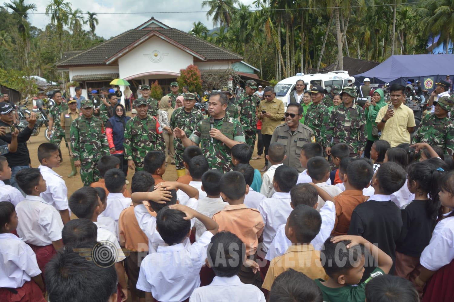 TAPANULI TENGAH, BIDIK-KASUSNEWS.COM – Kepala Staf Angkatan Darat (Kasad) Jenderal TNI Maruli Simanjuntak, M.Sc., menegaskan bahwa kerja keras menjadi satu-satunya pilihan dalam penanganan dan pemulihan pascabencana, tanpa larut dalam kesedihan yang justru akan menghambat kebangkitan masyarakat. Hal tersebut disampaikan Kasad saat meninjau langsung pengerjaan jembatan putus yang menghubungkan Kelurahan Hutanabolon dengan Sigiring-giring, Kecamatan Tukka, Kabupaten Tapanuli Tengah, Jumat (9/1/2026). “Kita tidak punya pilihan selain kerja keras. Kalau terlalu larut dalam kesedihan justru akan menambah beban. Lebih baik kita fokus pada apa yang bisa dilakukan hari ini. Kita dukung dan ajak masyarakat untuk bekerja agar harapan itu bisa tumbuh,” tegas Kasad. Kunjungan ini merupakan wujud komitmen TNI Angkatan Darat dalam mempercepat pemulihan infrastruktur vital pascabencana, khususnya akses transportasi yang sangat dibutuhkan masyarakat. Sehari sebelumnya, Kamis (8/1/2026), Kasad juga meresmikan jembatan Bailey di Kabupaten Bener Meriah, Provinsi Aceh. Dalam kunjungannya ke Tapanuli Tengah, Kasad didampingi Pangdam I/Bukit Barisan Mayjen TNI Hendy Antariksa, Danrem 023/Kawal Samudera Kolonel Inf Iwan Budiarso, Dandim 0211/Tapanuli Tengah Letkol Inf Bayu Hanuranto Wicaksono, serta Bupati Tapanuli Tengah Masinton Pasaribu. Jenderal TNI Maruli Simanjuntak menegaskan bahwa pembangunan jembatan-jembatan yang selama ini terabaikan akan menjadi prioritas, sejalan dengan perhatian Presiden RI terhadap persoalan jembatan putus yang menjadi hambatan utama mobilitas dan perekonomian masyarakat. Selain meninjau pembangunan jembatan, Kasad juga meninjau sejumlah fasilitas pendidikan terdampak bencana, yakni SDN 152981 A, SDN 152982 B, serta SD Darurat di Desa Hutanabolon. Pada kesempatan tersebut, Kasad menyerahkan bantuan perlengkapan sekolah berupa tas, buku tulis, alat tulis, dan kebutuhan pendukung belajar lainnya kepada para siswa. Kasad beserta rombongan turut mengunjungi posko pengungsian di Desa Hutanabolon untuk menyerahkan bantuan kepada warga korban banjir bandang dan tanah longsor. Dalam kesempatan itu, Kasad menekankan pentingnya penyediaan air bersih, khususnya bagi lingkungan sekolah. “Air bersih di sekolah harus tersedia. Ini menjadi kesempatan untuk menyusun perencanaan yang benar-benar baik. Jika data perencanaan kurang, hasilnya bisa berantakan. Siapkan semuanya secara matang, mulai dari jumlah jembatan hingga kebutuhan air bersih, agar daerah ini bisa bangkit menjadi wilayah yang baru,” ujarnya. Sementara itu, Bupati Tapanuli Tengah Masinton Pasaribu menyampaikan apresiasi dan terima kasih kepada Mabes TNI AD, khususnya kepada Kasad, atas perhatian dan bantuan nyata yang diberikan kepada masyarakat Tapteng. “Kami berterima kasih kepada Bapak Kasad yang telah membawa jembatan Armco ke daerah kami. Ini sangat membantu membuka kembali akses masyarakat,” ungkap Masinton. Kunjungan Kasad ini diharapkan menjadi dorongan nyata percepatan pemulihan infrastruktur di Tapanuli Tengah, sekaligus menumbuhkan optimisme bahwa wilayah terdampak bencana mampu bangkit lebih kuat, aman, dan berkelanjutan. (Agus)