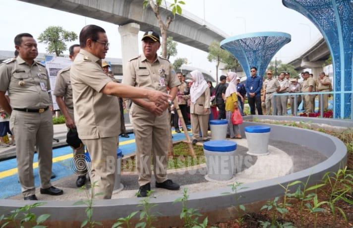 Jakarta Timur, Bidik-kasusnews.com – Wali Kota Administrasi Jakarta Timur, Munjirin, mendampingi Gubernur DKI Jakarta, Pramono Anung Wibowo, dalam kegiatan peninjauan Taman Gapura Muka Cakung yang berlokasi di Jalan Raya Bekasi, Kelurahan Cakung Barat, Kecamatan Cakung, Selasa (6/1/2026). Dalam kunjungan tersebut, Gubernur menyampaikan apresiasi atas pembangunan taman seluas sekitar 1.500 meter persegi yang berada di kawasan dengan arus lalu lintas padat. Kehadiran taman tersebut dinilai mampu menghadirkan ruang terbuka hijau yang representatif sekaligus nyaman bagi masyarakat sekitar. Peninjauan ini turut dihadiri Kepala Dinas Pertamanan dan Hutan Kota (Distamhut) DKI Jakarta Fajar Sauri serta Kepala Dinas Komunikasi, Informatika, dan Statistik (Kominfotik) DKI Jakarta Budi Awaluddin. Gubernur Pramono menyebut, taman yang dibangun oleh Dinas Pertamanan dan Hutan Kota DKI Jakarta berkolaborasi dengan Pemerintah Kota Administrasi Jakarta Timur tersebut telah tertata dengan baik dan siap dimanfaatkan warga. “Pagi ini saya senang melihat perkembangan taman ini. Saya sengaja melihat pohon tabebuya yang dulu saya tanam dan sekarang sudah tumbuh besar. Taman ini sudah dibuat dengan baik dan kini bisa dinikmati masyarakat. Inilah harapan kita bersama, menghadirkan ruang hijau publik di Jakarta,” ujar Pramono. Dalam kesempatan tersebut, Gubernur bersama Wali Kota Munjirin juga menerima berbagai masukan dari warga terkait kebutuhan fasilitas tambahan, mengingat lokasi taman berada di tepi jalan utama dengan intensitas lalu lintas yang cukup tinggi. Menindaklanjuti aspirasi tersebut, Pemerintah Provinsi DKI Jakarta berencana melengkapi taman dengan sejumlah fasilitas pendukung, seperti pelican crossing, penerangan, toilet umum, serta akses Wi-Fi gratis guna menunjang kenyamanan dan keamanan pengunjung. “Biasanya kalau bertemu langsung dengan masyarakat pasti ada aspirasi. Ada tiga permintaan utama, yakni Wi-Fi, toilet, dan penerangan. Insyaallah akan kami penuhi. Selain itu, akan dibuatkan pelican crossing agar masyarakat bisa menyeberang dengan aman,” tambahnya. Selain itu, Gubernur juga menegaskan rencana pemasangan kamera pengawas (CCTV) di area taman sebagai langkah peningkatan keamanan, terutama karena taman tersebut banyak dimanfaatkan anak-anak untuk bermain. “Saya juga mendapat informasi dari Kepala Dinas Kominfotik, nantinya di sini akan dipasang CCTV agar masyarakat merasa lebih aman dan nyaman,” imbuhnya. Sementara itu, Kartika, warga Kecamatan Cakung, mengaku bersyukur dengan hadirnya Taman Gapura Muka Cakung. Menurutnya, taman tersebut menjadi solusi ruang bermain dan rekreasi bagi warga di tengah padatnya permukiman. “Senang sekali, sekarang bisa mengajak anak bermain tanpa harus jauh dari rumah dan tetap bisa diawasi,” ujarnya. Heri Jkt