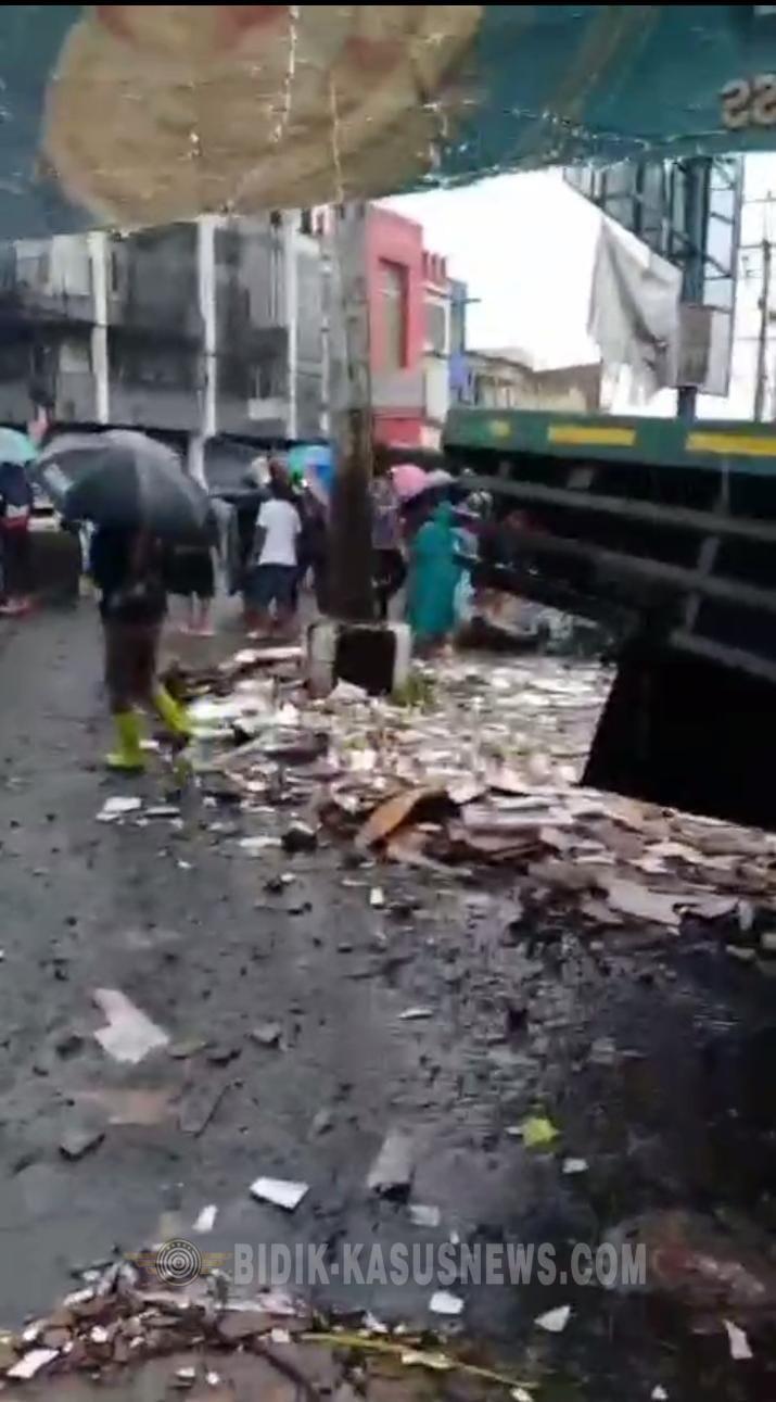 WONOSOBO | BIDIK-KASUSNEWS.COM – Kecelakaan lalu lintas melibatkan sebuah truk tronton bermuatan keramik terjadi di ruas Jalan Wonosobo–Kertek, tepatnya di Simpang Empat Kertek, Kelurahan/Kecamatan Kertek, Kabupaten Wonosobo, Sabtu (27/12/2025) pagi sekitar pukul 06.15 WIB. Peristiwa tersebut masuk dalam kategori kecelakaan lalu lintas sedang. Truk tronton bernomor polisi T-9167-PO yang dikemudikan M.A.K. (29), warga Kabupaten Bandung, diduga mengalami gangguan pada sistem pengereman saat melaju dari arah Parakan menuju Kota Wonosobo. Berdasarkan informasi di lapangan, kendaraan dengan muatan kurang lebih 38 ton keramik itu tidak dapat dikendalikan saat mendekati simpang empat. Truk kemudian menyerempet sepeda motor Honda Scoopy, menghantam tugu pembatas jalan di median, dan terus melaju hingga menabrak sepeda motor Yamaha Vega serta Honda Revo yang sedang terparkir di sisi jalan. Akibat kejadian tersebut, lima orang mengalami luka ringan dan langsung mendapatkan penanganan medis. Para korban masing-masing berinisial S (65), S (49), N.F. (41), S.S., dan A.S. (13). Tidak ada korban jiwa maupun luka berat dalam insiden ini. Kapolres Wonosobo AKBP M. Kasim Akbar Bantilan, S.I.K., M.M., membenarkan peristiwa tersebut dan memastikan bahwa jajaran kepolisian bergerak cepat melakukan penanganan di lokasi kejadian. “Petugas segera mendatangi TKP, melaksanakan olah tempat kejadian perkara, mengamankan barang bukti, serta melakukan pendataan terhadap korban dan saksi. Penyelidikan masih kami lakukan untuk memastikan penyebab pasti kecelakaan,” jelas AKBP Kasim. Ia menambahkan, truk tronton beserta sopir telah diamankan di Unit Laka Lantas Polres Wonosobo. Sementara itu, proses evakuasi kendaraan dan muatan keramik yang sempat berserakan di badan jalan dilakukan secara bertahap guna menghindari kemacetan. “Arus lalu lintas saat ini sudah kembali normal. Pengamanan dan pengaturan lalu lintas dilakukan oleh personel Operasi Lilin Candi 2025 di Pos Pengamanan Kertek,” imbuhnya. Sementara itu, Kabid Humas Polda Jawa Tengah Kombes Pol Artanto mengimbau seluruh pengguna jalan, khususnya pengemudi kendaraan angkutan barang, untuk selalu mengutamakan faktor keselamatan. “Pastikan kendaraan dalam kondisi laik jalan sebelum beroperasi, terutama pengecekan sistem pengereman. Kepatuhan terhadap standar keselamatan sangat penting, terlebih di jalur rawan kecelakaan dan saat kondisi cuaca tidak menentu,” tegasnya. Polda Jawa Tengah menegaskan komitmennya untuk terus memberikan pelayanan cepat dan optimal kepada masyarakat, khususnya selama pelaksanaan Operasi Lilin Candi 2025, demi menjamin keamanan, keselamatan, dan kelancaran lalu lintas selama libur Natal dan Tahun Baru. (Yusuf)