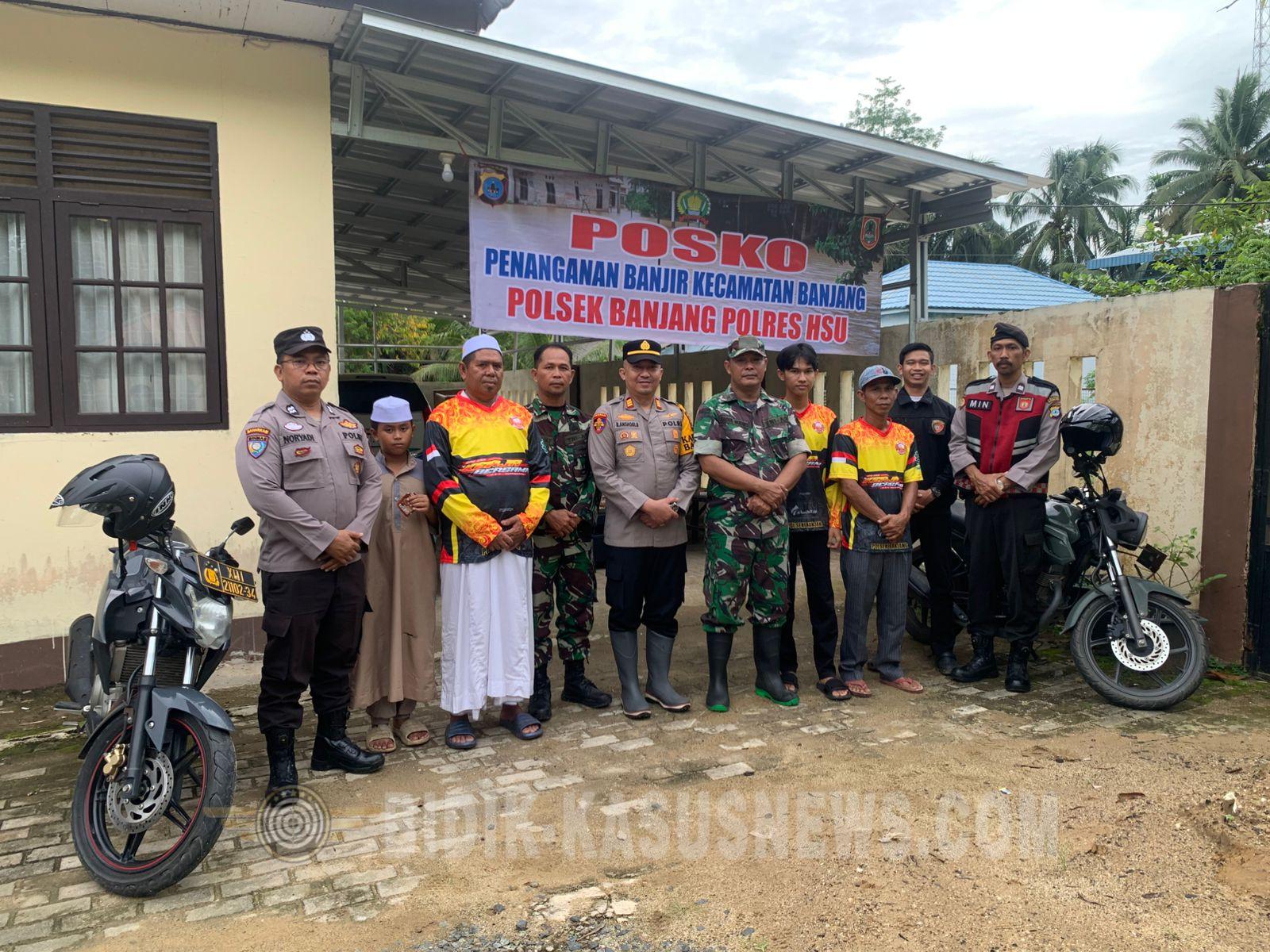 HSU | BIDIK-KASUSNEWS.COM –Mengantisipasi potensi banjir di wilayah Kecamatan Banjang, Polsek Banjang Polres Hulu Sungai Utara (HSU) mendirikan Posko Sementara Penanganan Banjir sebagai pusat koordinasi dan kesiapsiagaan bencana. Pendirian posko tersebut dilaksanakan di Mapolsek Banjang pada Sabtu (27/12/2025) sore sekitar pukul 16.30 WITA. Kegiatan ini dipimpin langsung oleh Kapolsek Banjang AKP Robby Ansharie Bahasuan, S.H., M.M., dan dihadiri oleh jajaran anggota Polsek Banjang, unsur TNI dari Koramil 07 Amuntai Tengah dan Banjang yang dipimpin Peltu Abdul Wahid, serta perwakilan relawan kebencanaan Kecamatan Banjang. Posko sementara ini disiapkan sebagai pusat pengendalian dan koordinasi penanganan banjir, dengan dukungan berbagai sarana dan prasarana pendukung. Fasilitas yang disiagakan meliputi kendaraan roda dua, pelampung darurat dari ban dalam, jas hujan, sepatu bot, tali-temali, hingga perlengkapan obat-obatan untuk kebutuhan darurat di lapangan. Kapolsek Banjang AKP Robby Ansharie Bahasuan menjelaskan bahwa pendirian posko bertujuan untuk menyatukan langkah seluruh unsur terkait dalam menghadapi potensi bencana banjir, sehingga penanganan dapat dilakukan secara cepat, terpadu, dan efektif. “Posko ini menjadi wadah koordinasi Polri, TNI, dan para relawan agar penanganan banjir di Kecamatan Banjang dapat berjalan optimal serta menghindari tumpang tindih tugas di lapangan,” ujarnya. Selain sebagai pusat koordinasi, posko juga difungsikan untuk pemantauan perkembangan situasi, pengelolaan bantuan, serta pelaksanaan respon cepat apabila terjadi kondisi darurat akibat banjir. Sinergi lintas sektor ini diharapkan mampu meningkatkan kesiapsiagaan serta memberikan rasa aman bagi masyarakat Kecamatan Banjang. Seluruh rangkaian kegiatan pendirian posko dilaporkan berjalan aman, tertib, dan kondusif. Dengan langkah antisipatif tersebut, Polsek Banjang bersama TNI dan relawan menegaskan komitmennya dalam memberikan perlindungan dan pelayanan terbaik kepada masyarakat, khususnya dalam menghadapi potensi bencana banjir di wilayah Kabupaten Hulu Sungai Utara. (Agus)