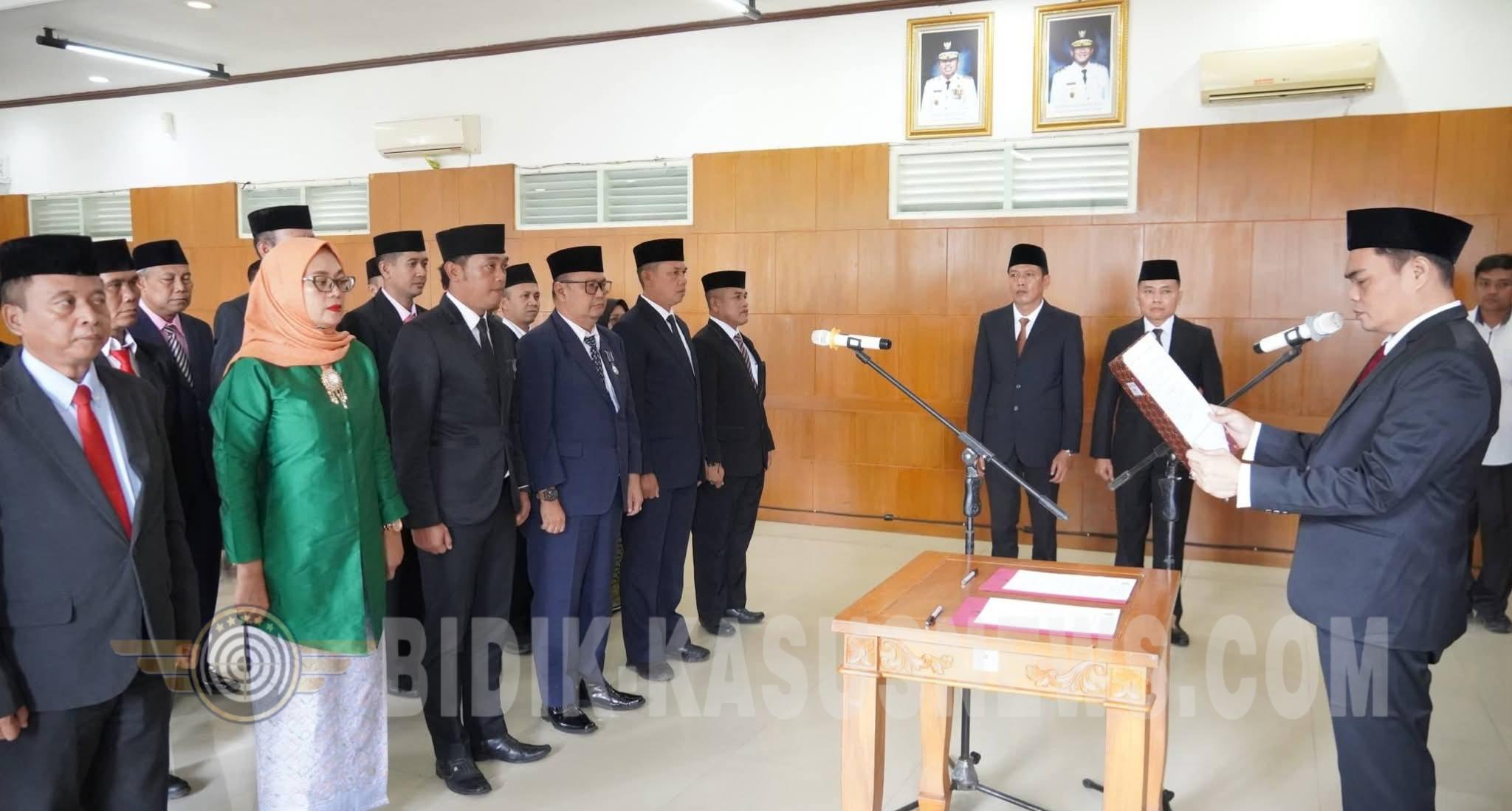 SUKABUMI-BIDIK-KASUSNEWS.COM – Sebanyak 21 camat di Kabupaten Sukabumi, Rabu (14/1/2026), dilantik serentak menjadi Pejabat Pembuat Akta Tanah Sementara (PPATS). Ke-21 camat dilantik Kepala Kantor Pertanahan Kabupaten Sukabumi Wendi Isnawan turut disaksikan langsung Sekda Kabupaten Sukabumi H. Ade Suryaman beserta sejumlah kepala perangkat daerah terkait. Mereka berasal dari Kecamatan Purabaya, Bojonggenteng, Cikembar, Caringin, Sukabumi, Kadudampit, Kalapanunggal, Sagaranten. Ikut dalam barisan yang dilantik camat Cidolog, Pabuaran, Simpenan, Bantargadung, Gegerbitung, Kalibunder, Waluran, Cireunghas, Cisolok, Warungkiara, Parungkuda, Kabandungan, dan Cibitung. Sekda Kabupaten Sukabumi H. Ade Suryaman mengatakan, camat memiliki tugas baru pasca dilantik sebagai PPATS. Berkaitan hal tersebut, sekda berpesan agar memberikan layanan prima dan profesional. ”Laksanakan tugas pembuatan akta tanah dengan jujur, teliti, cepat, dan transparan,” ujarnya. Dia berharap mereka yang dilantik bersinergi dengan BPN agar setiap peralihan hak atas tanah sesuai aturan yang berlaku. Tak hanya itu saja, jaga pula integritas sebagai aparatur pemerintah. ”Camat sebagai PPATS harus patuh pada kode etik dan aturan yang berlaku. PPATS harus menjadi solusi bagi permasalahan agraria,” ucapnya. Sementara itu, Kepala Kantor Pertanahan Kabupaten Sukabumi Wendi Isnawan mengatakan, PPATS ini bekerja di lingkup kecamatan. Hal itu berbeda dengan PPAT yang ruang kerjanya mencakup seluruh Kabupaten Sukabumi. ”Meskipun luang lingkupnya kecamatan, namun tetap PPATS merupakan mitra Kantor Pertanahan Kabupaten Sukabumi untuk melayani masyarakat,” ungkapnya. Bahkan PPATS pun berperan penting dalam memberikan kepastian hukum pertanahan. Termasuk berperan dalam mendukung pembangunan di Kabupaten Sukabumi. ”PPATS ini merupakan amanah mulia yang diberikan untuk melayani masyarakat di bidang pertanahan.Namun perlu diingat, terdapat kode etik yang harus dipatuhi setelah menjadi PPATS,” bebernya Ia meminta PPATS tersebut dapat membantu Kantor Pertanahan Kabupaten Sukabumi dalam mendukung program strategis nasional, PTSL, redistribusi tanah, hingga sertipikasi tempat ibadah. ”Bantu kami pula dalam menyosialisasikan kepada masyarakat terkait sertipikat yang berbasis elektronik. Mari kita bangun Sukabumi menjadi lebih maju dan modern,” tandasnya. (Dicky)